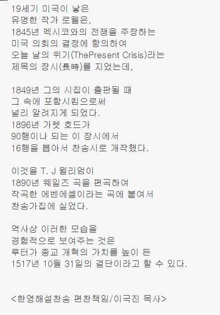 | *주의 진리 위해 십자가 군기(There's a Royal Banner)/D.W. Whittle (0) | 2019.03.03 |