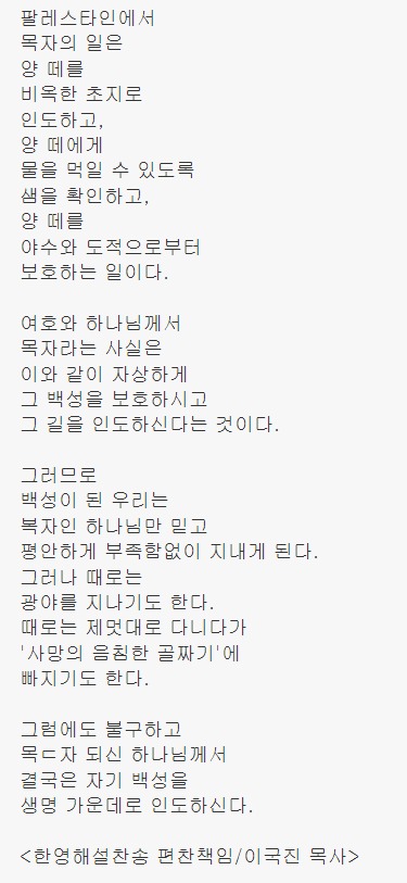 주는 나를 기르시는 목자요