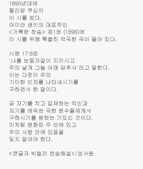 눈동자같이 보호하여 주시며