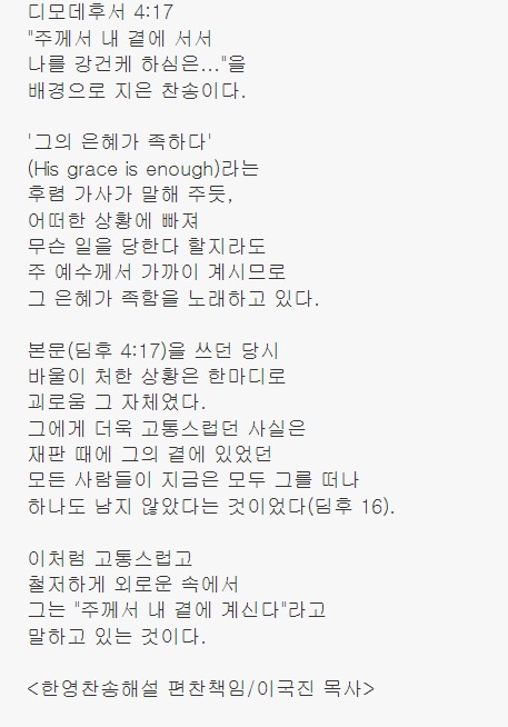 주 나의 곁에 오사 용기를 주시네