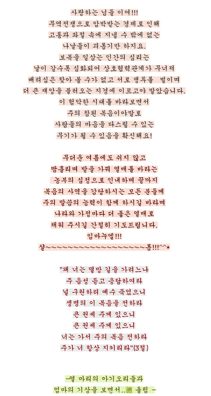 축복이 임하시길 간절히 기도드립니다.