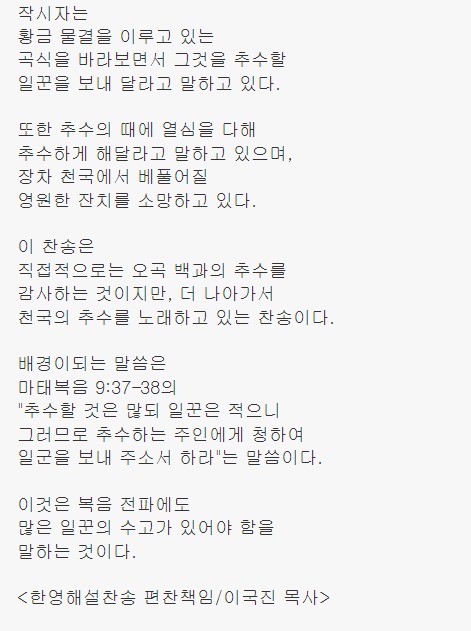 | *논밭에 오곡백과(Sing to the Lord of Harvest)/J. S. B. Monsell (0) | 2019.11.17 |