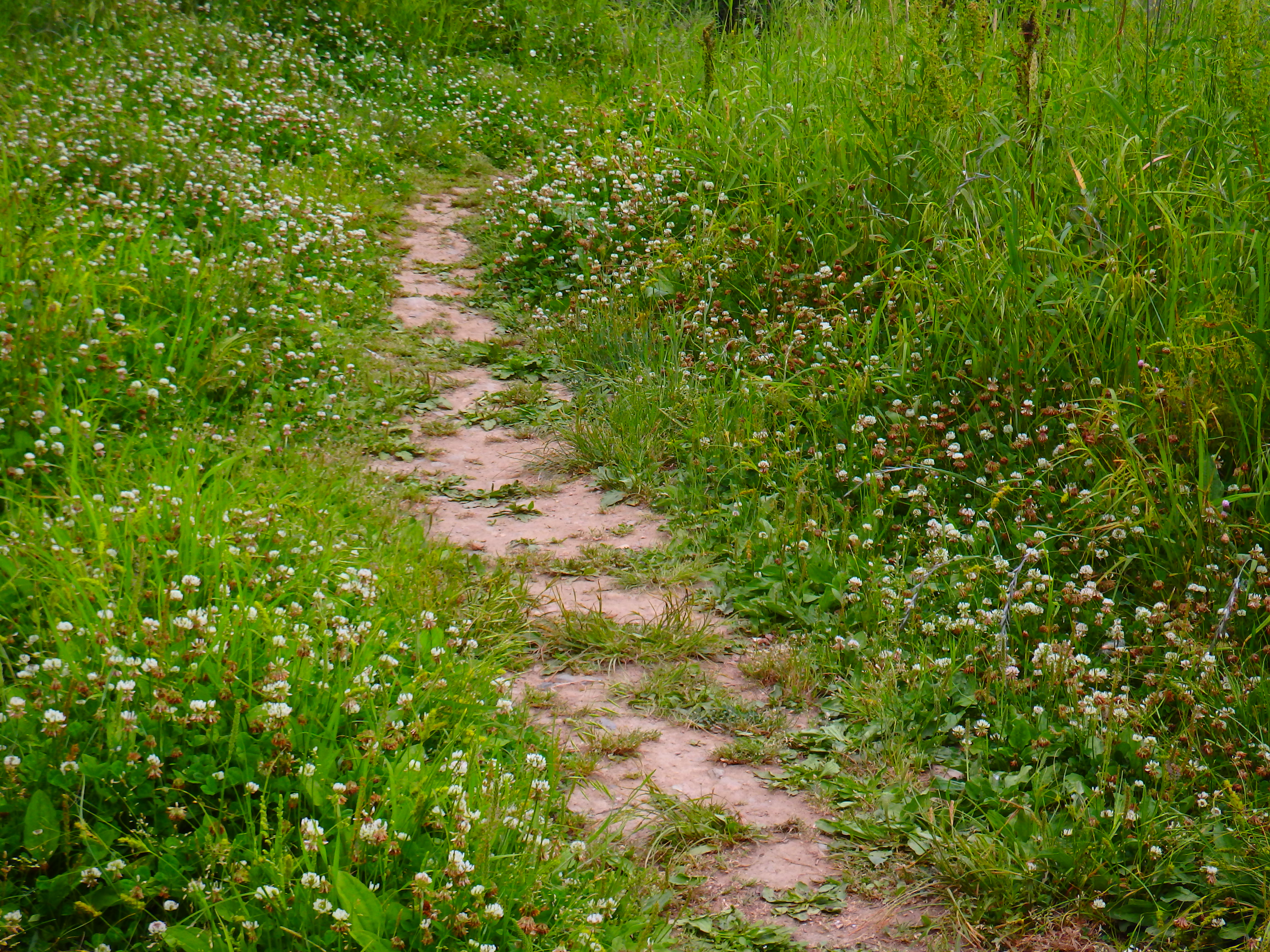 토끼풀인 클로버꽃들이 피어 있는 오솔길을 걸으며