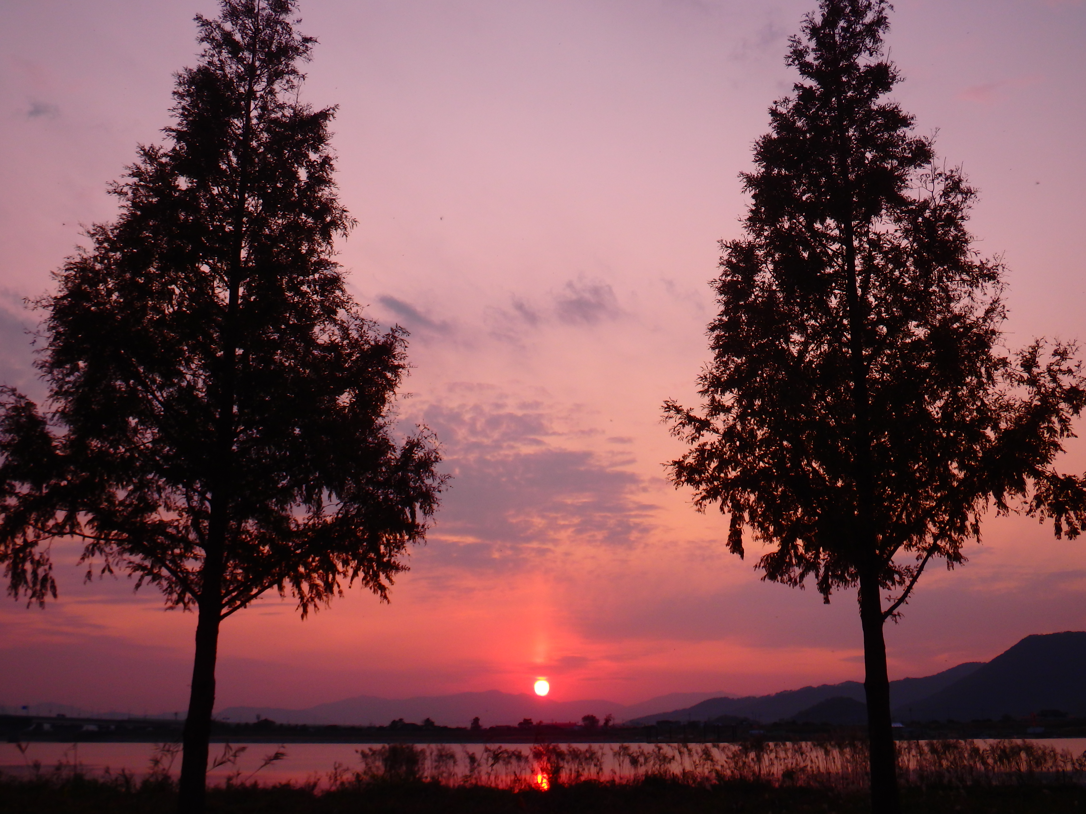 출렁이는 강물을 배경으로 석양을 담았다.