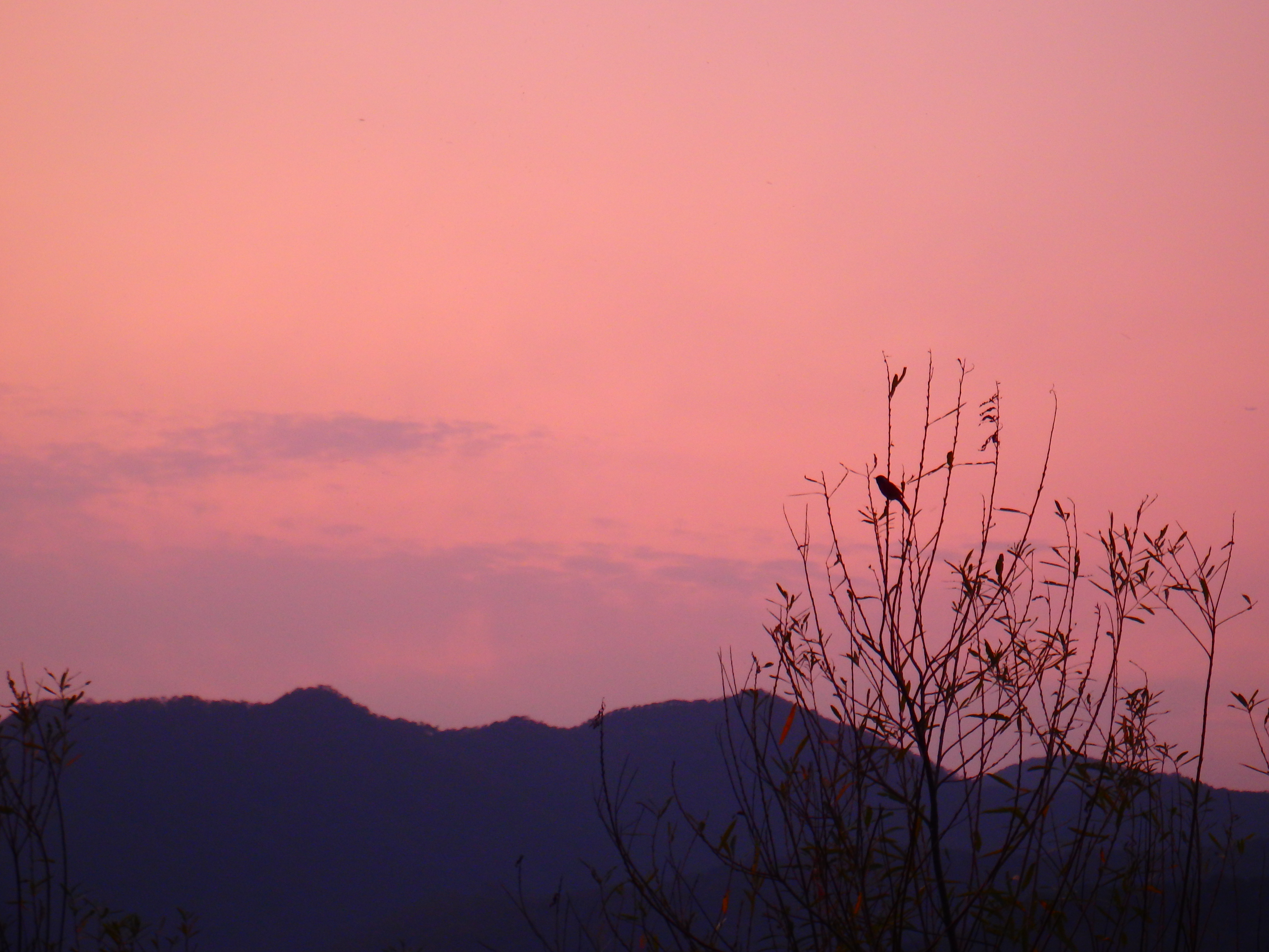 버들가지에 앉아 노을빛을 바라보며