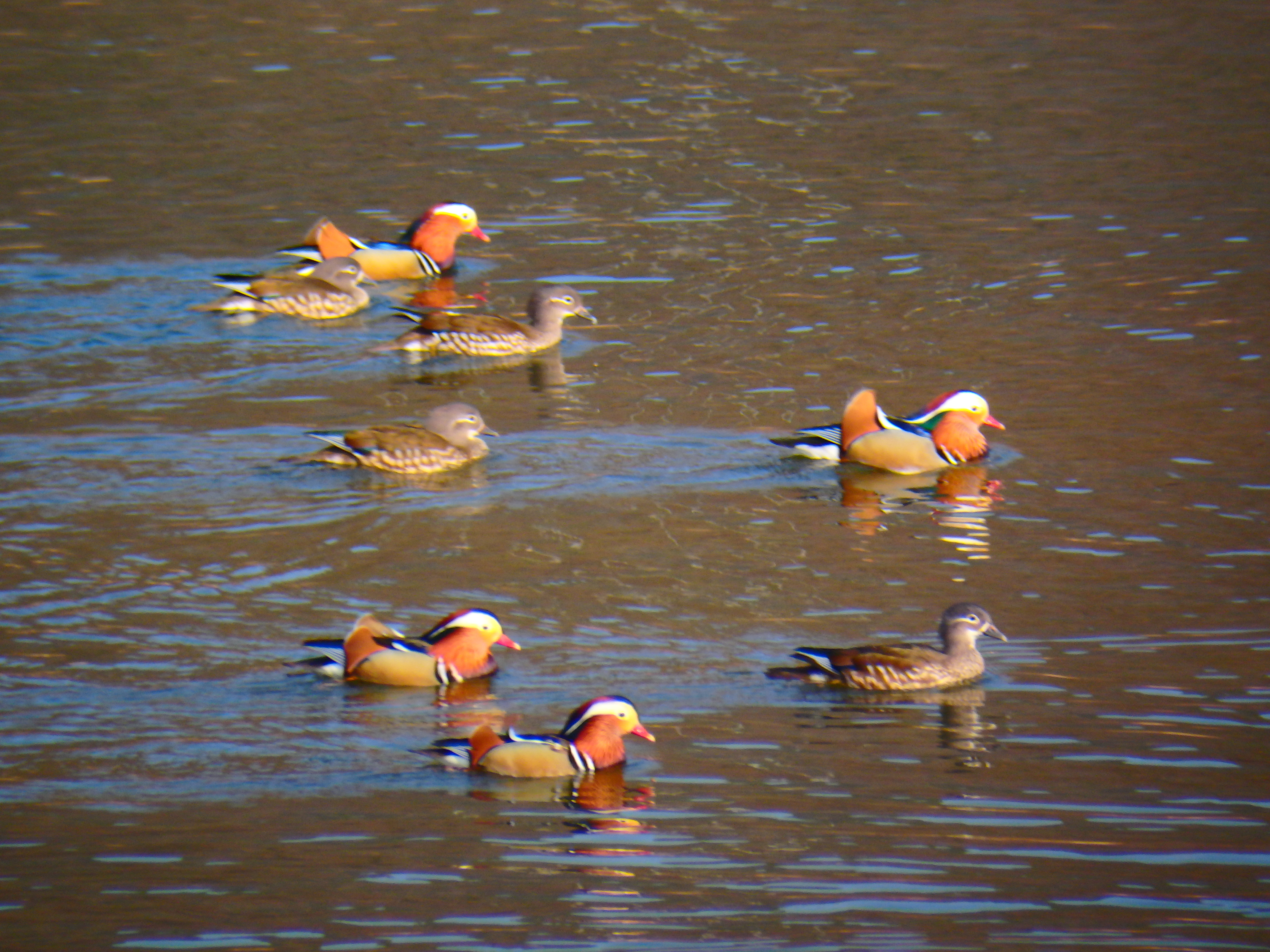 서로 짝을 맞춰 날개로 물보라를 치고 있었어요.
