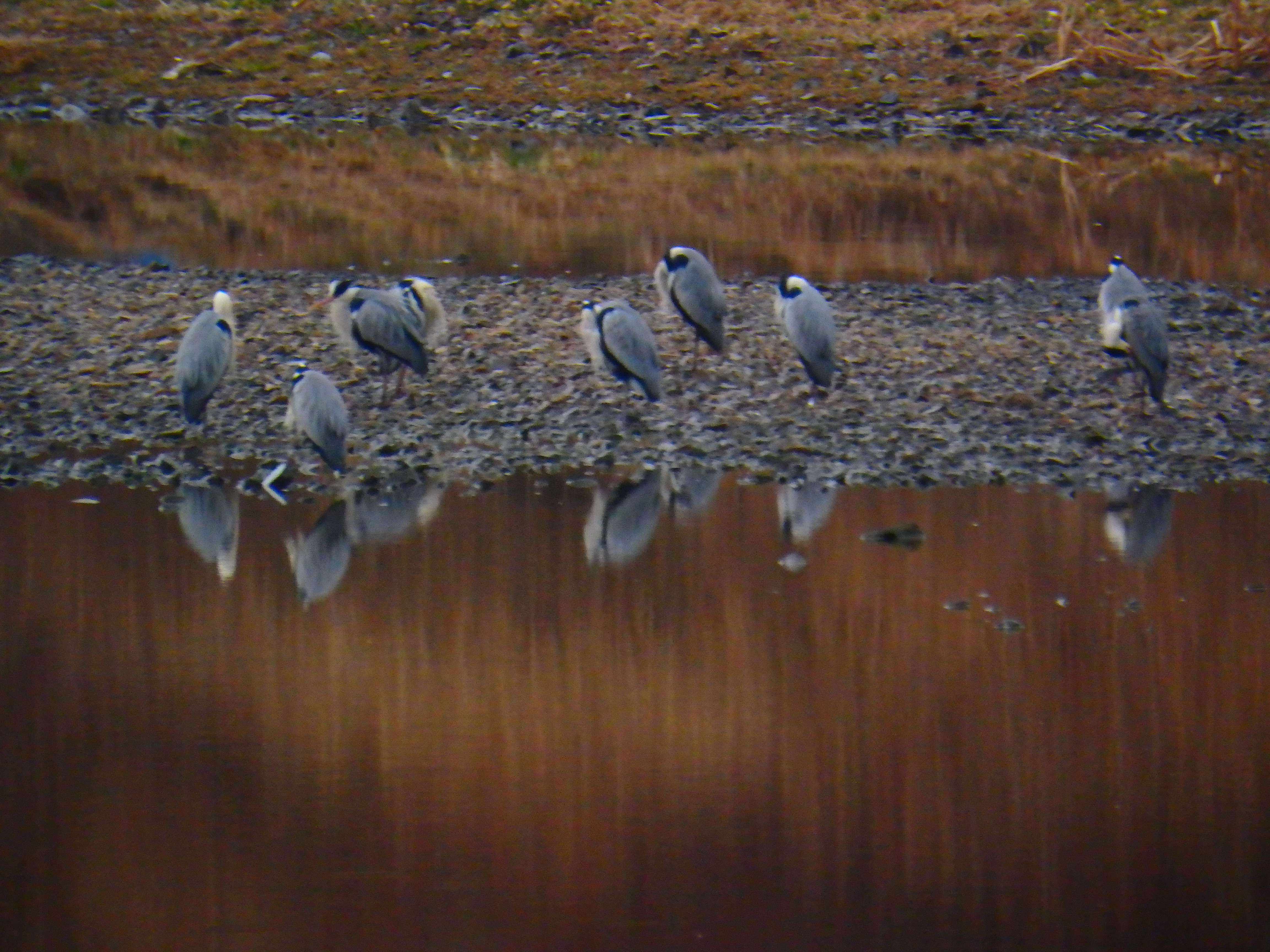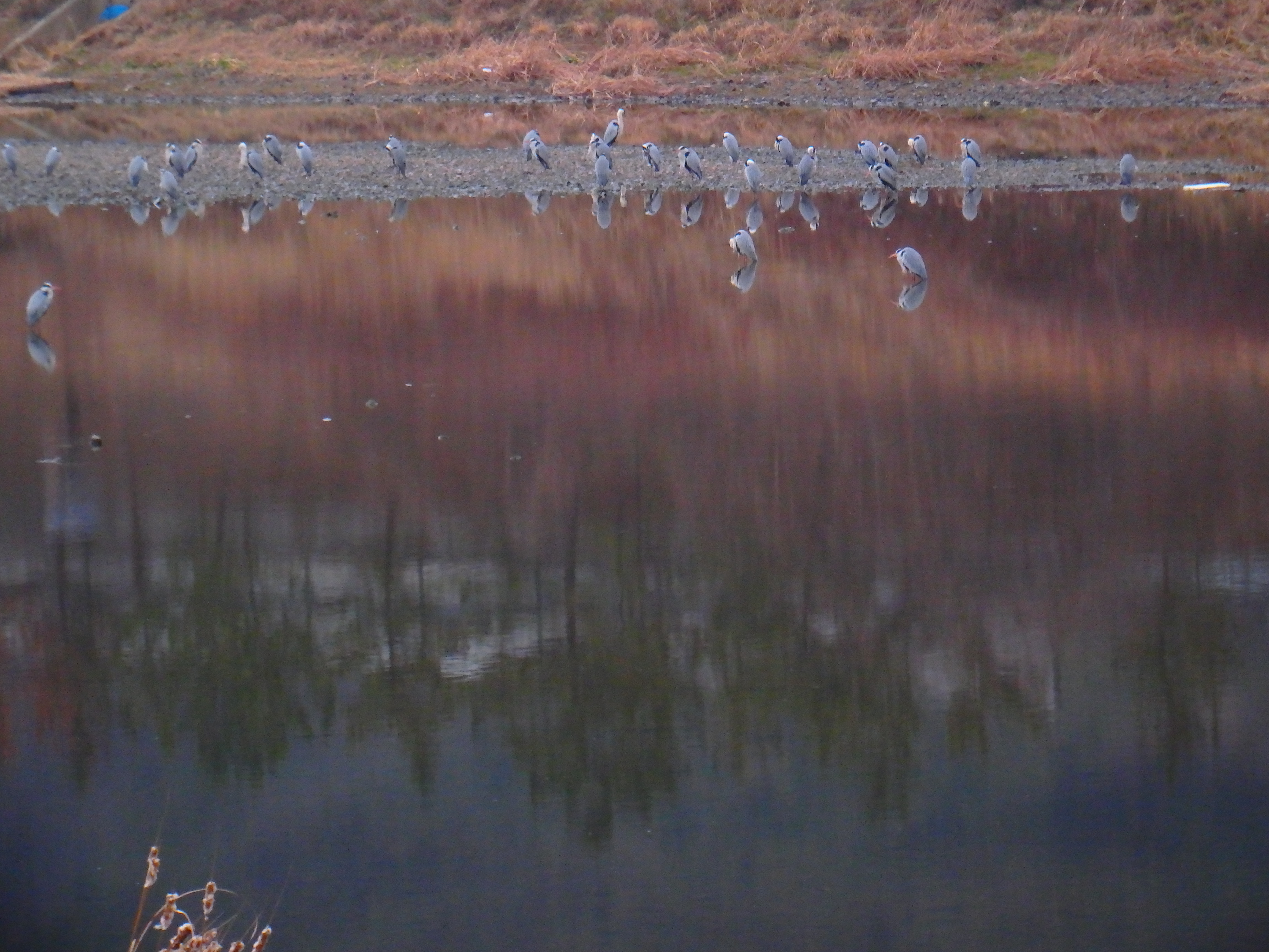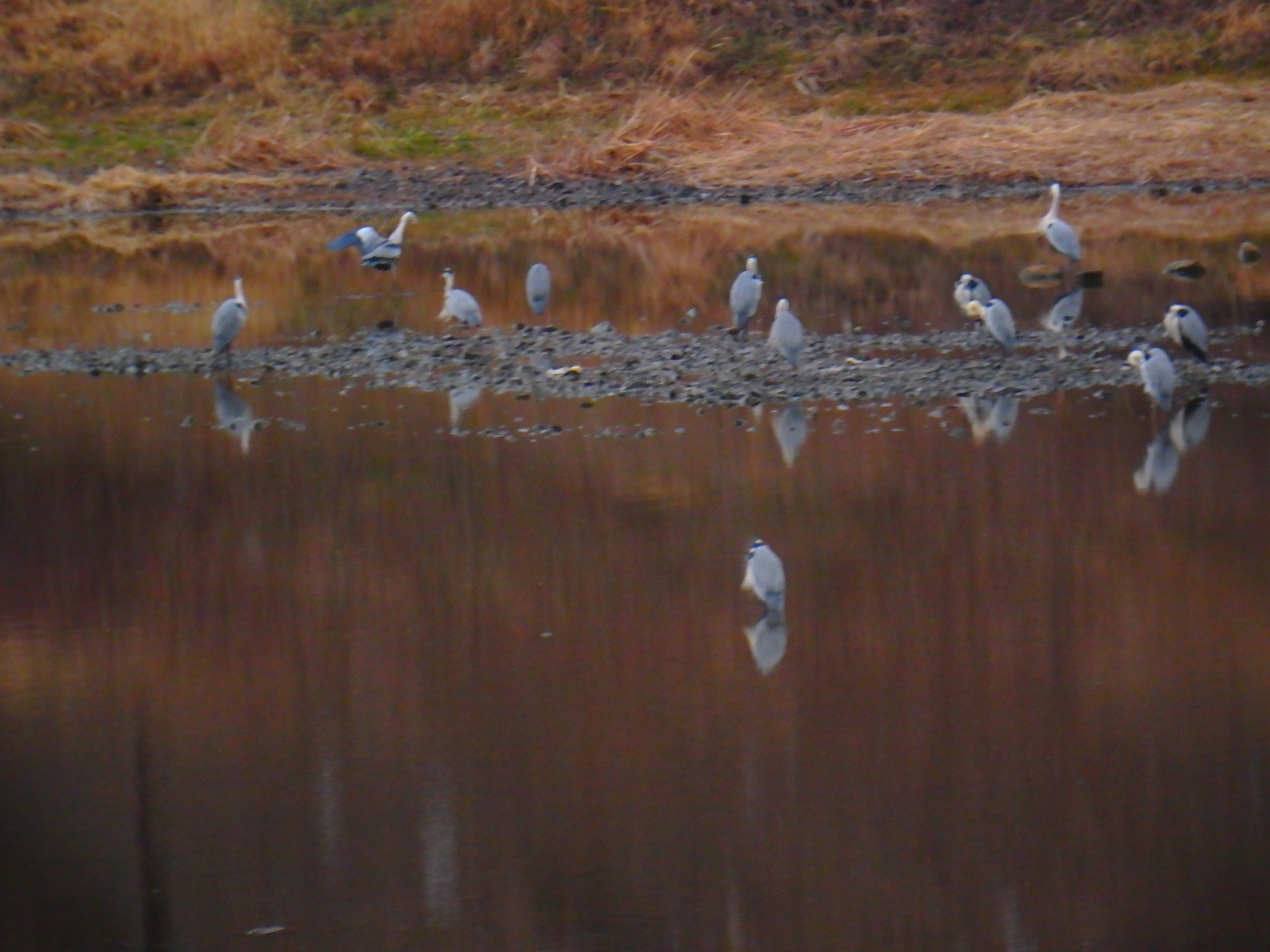 어디서 왔는지 왜가리들이 강변에 모여