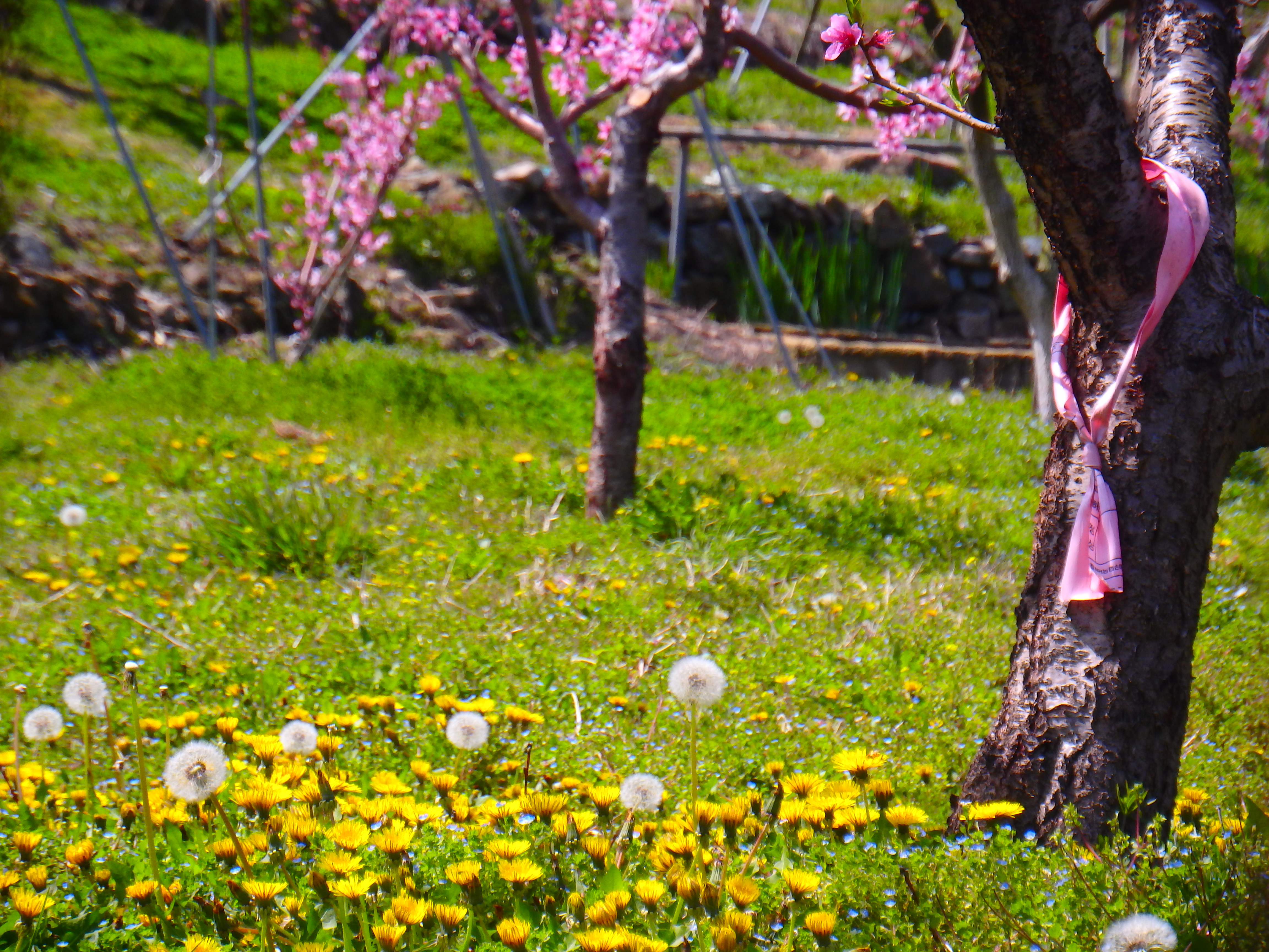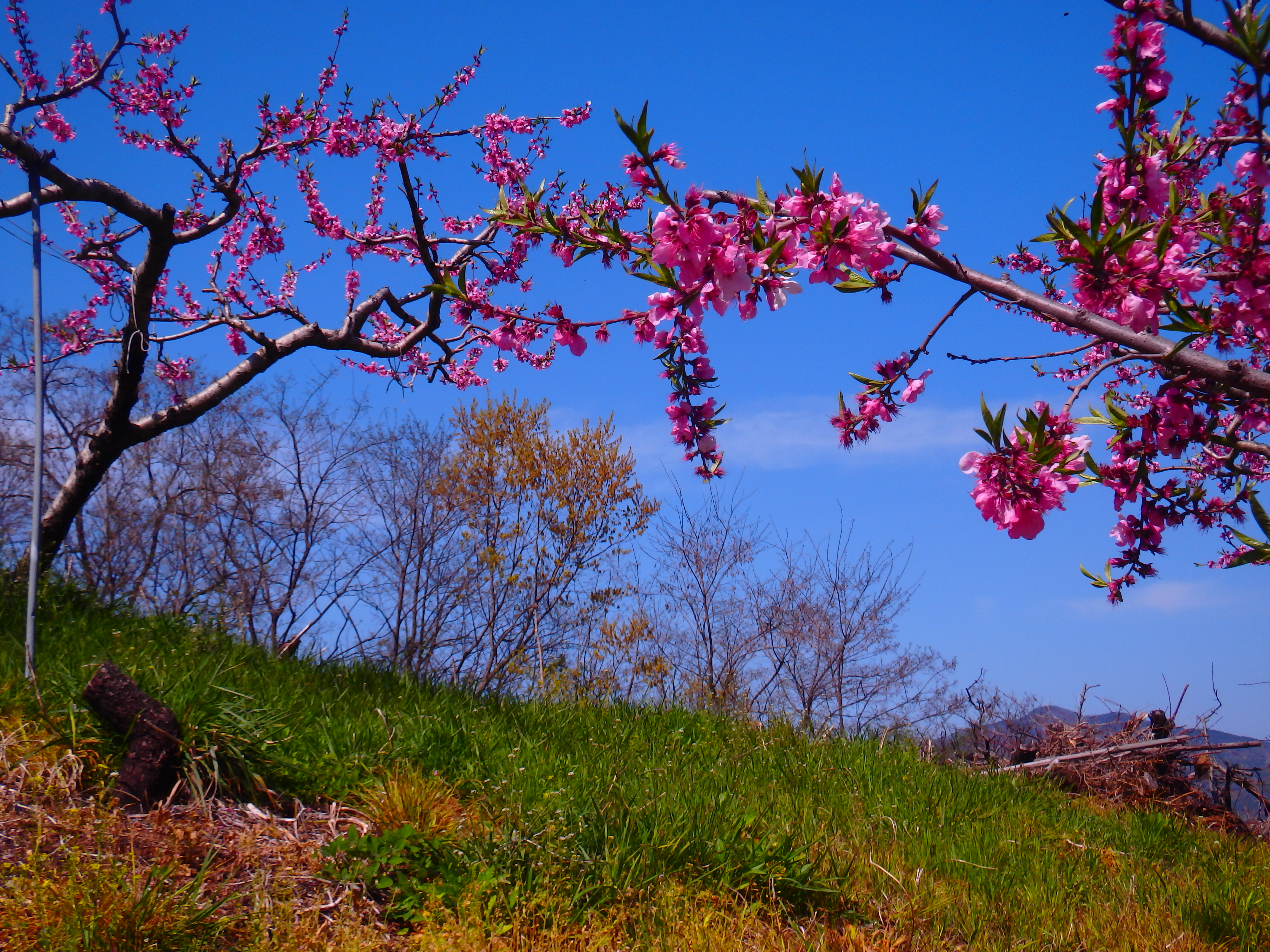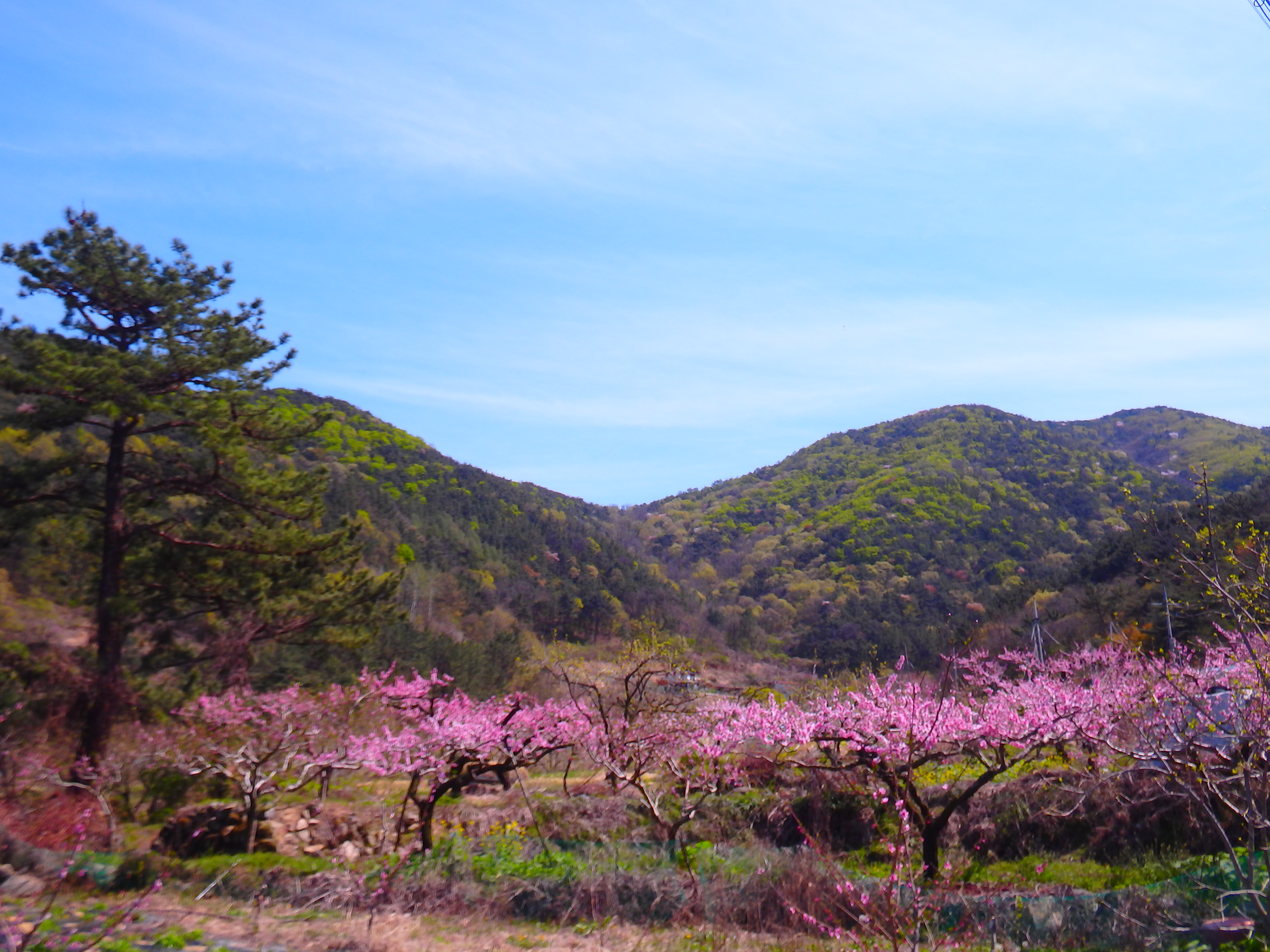 길옆의 언덕배기엔 복사꽃이 만발하여