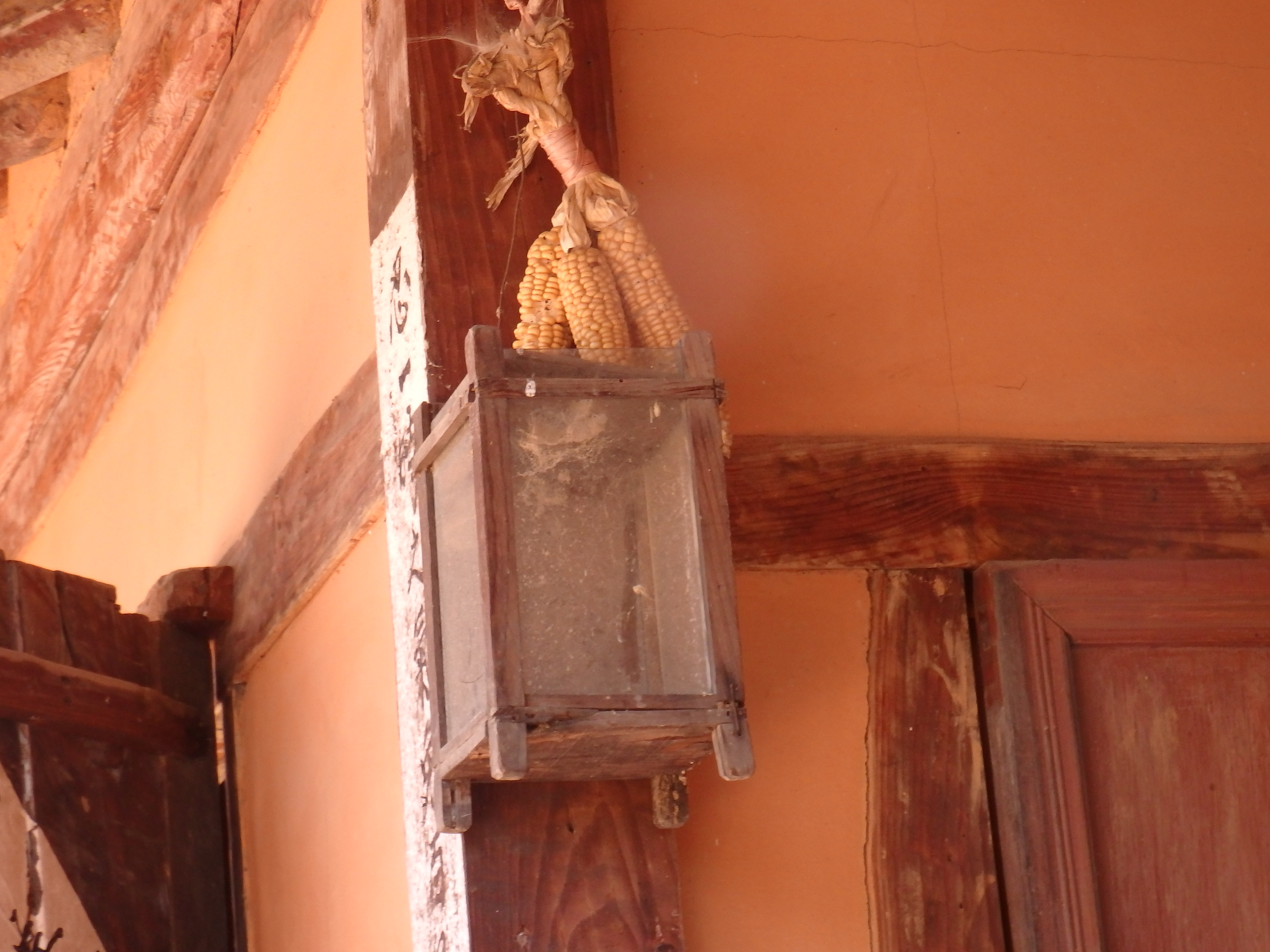 마루기둥에 걸린 유리로 된 사각통은