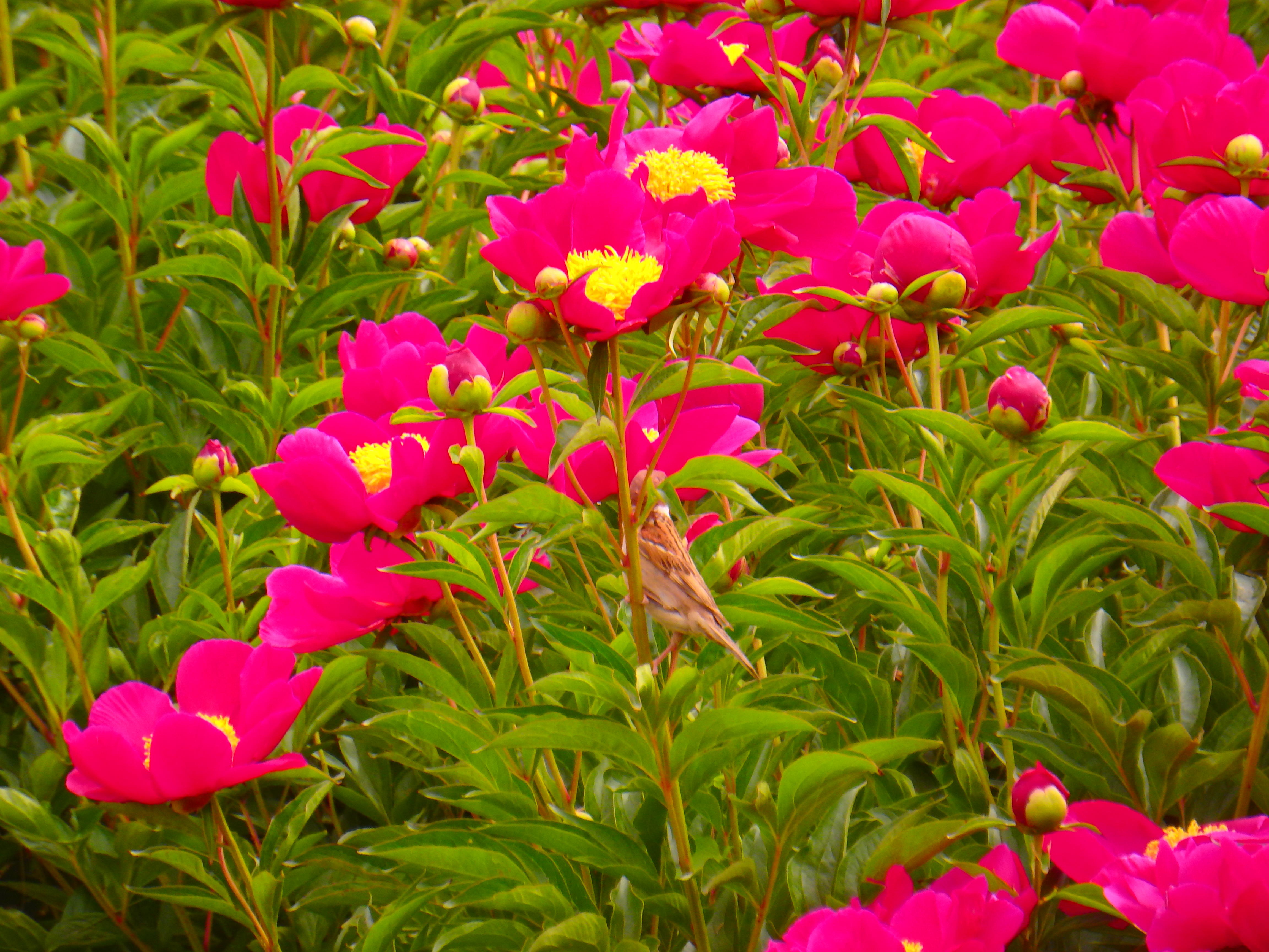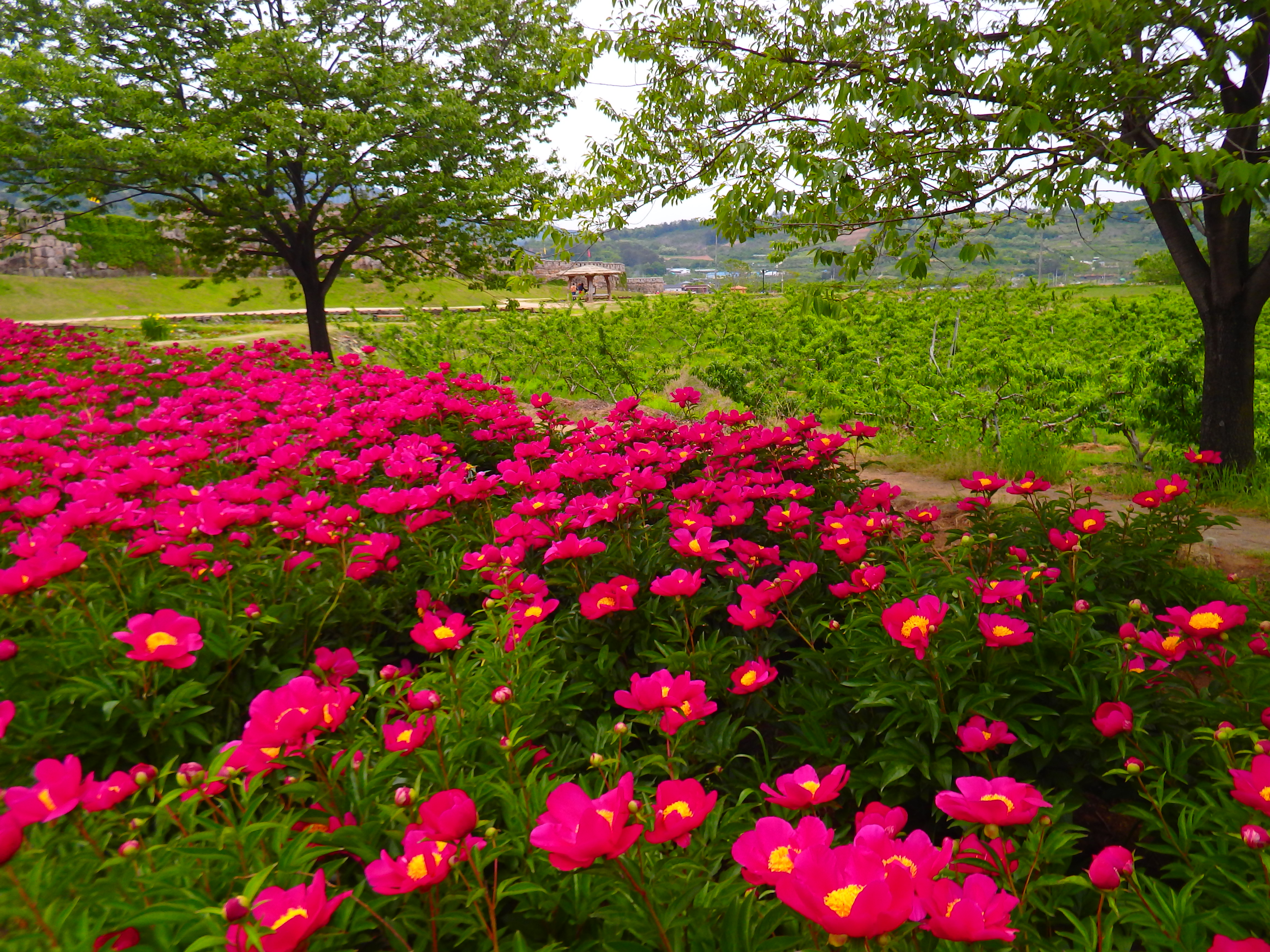 군락을 지어 붉게 물든 작약꽃 무리들도