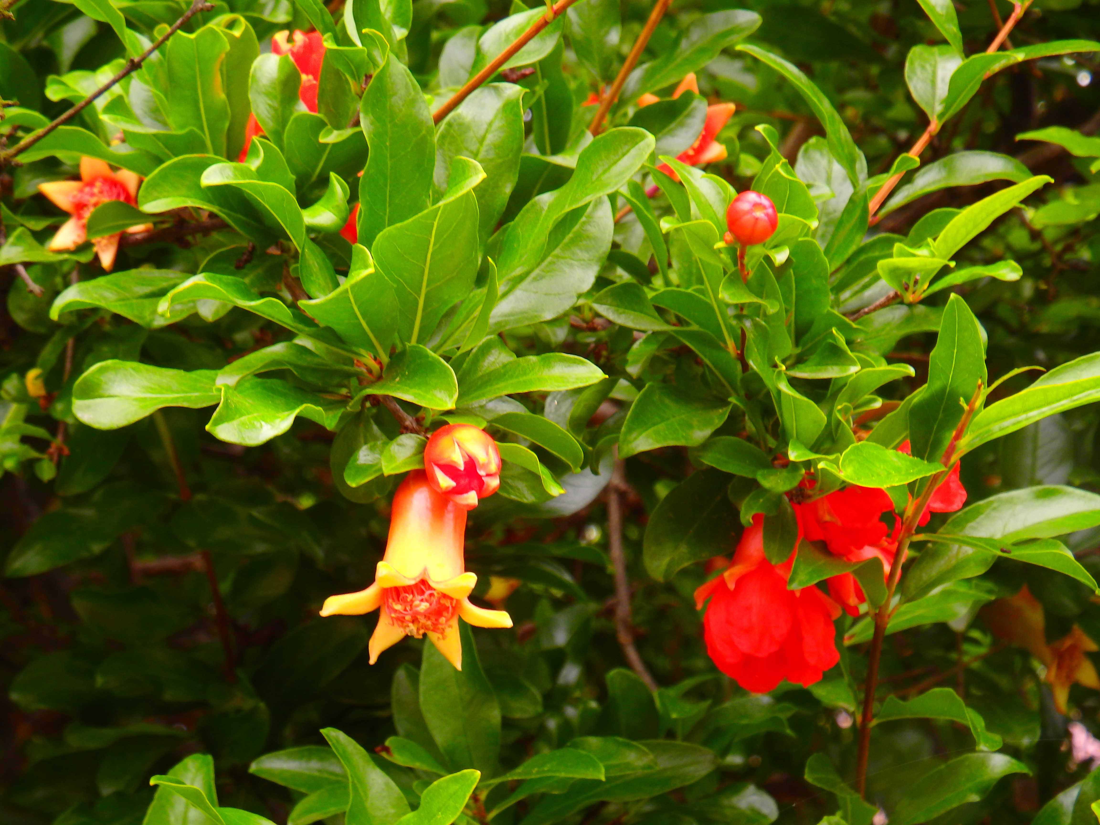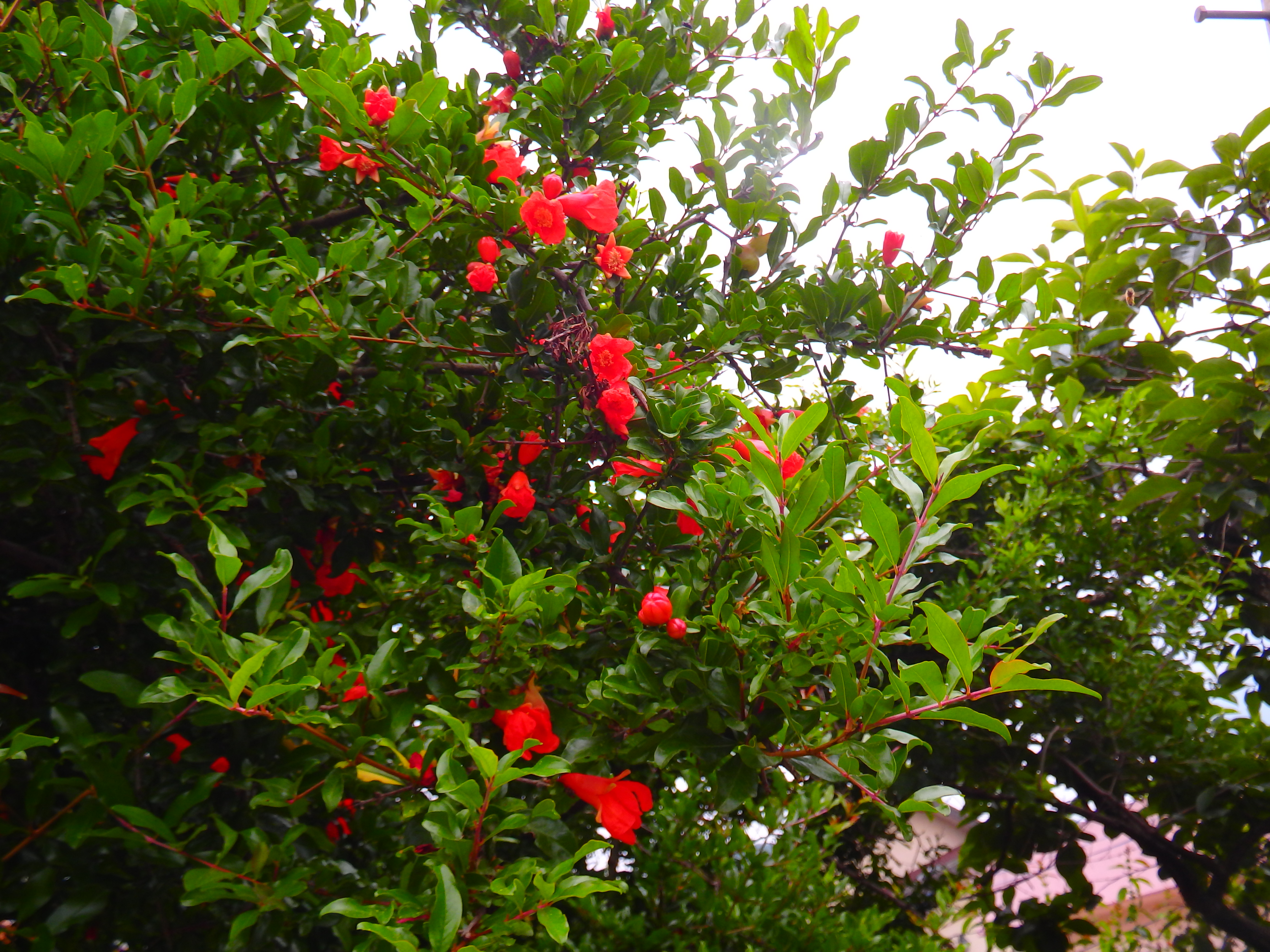 길가에 심겨진 석류나무의 가지마다
