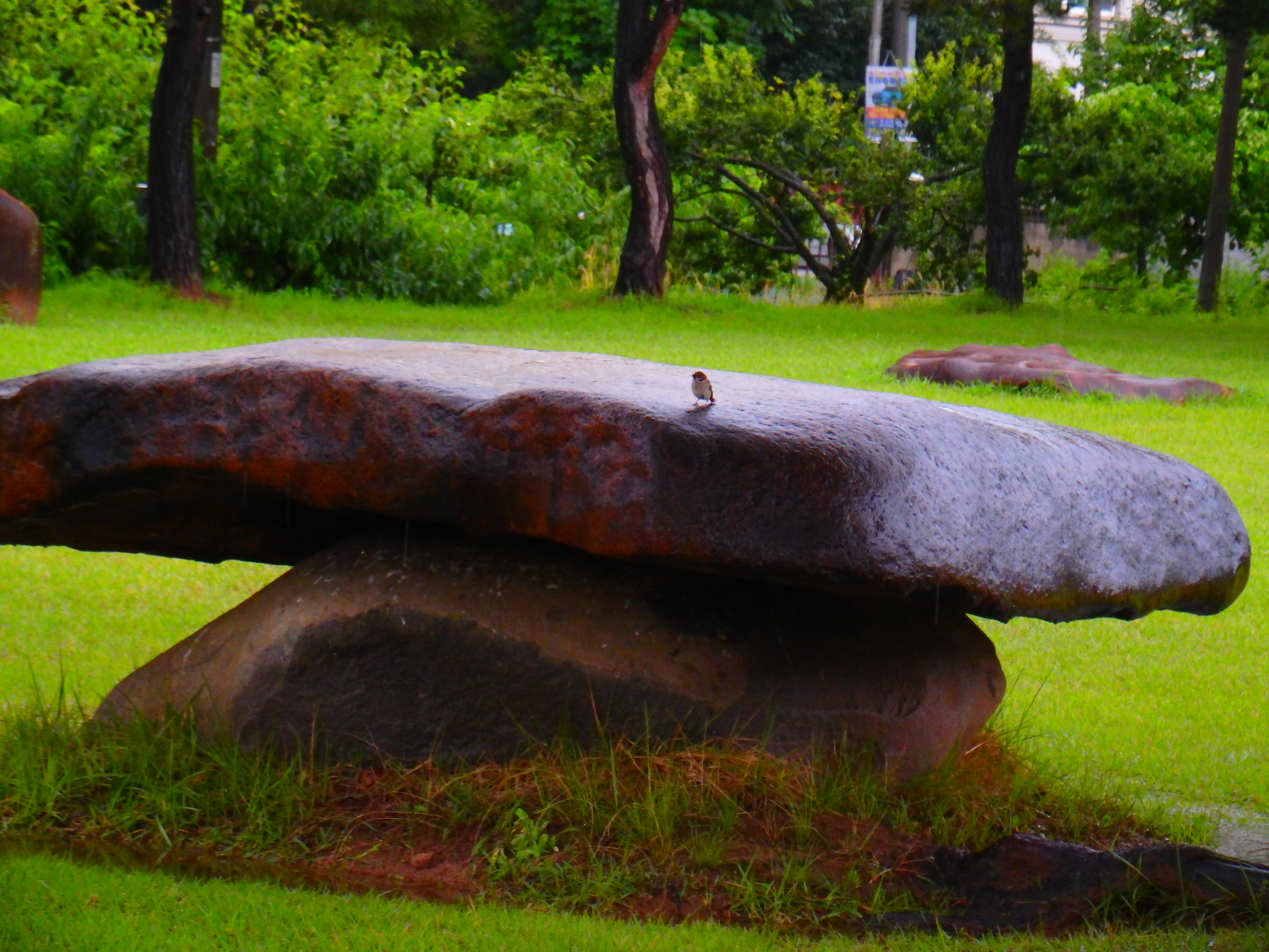 참새 한 마리는 고인돌같은 너럭바위에 앉아