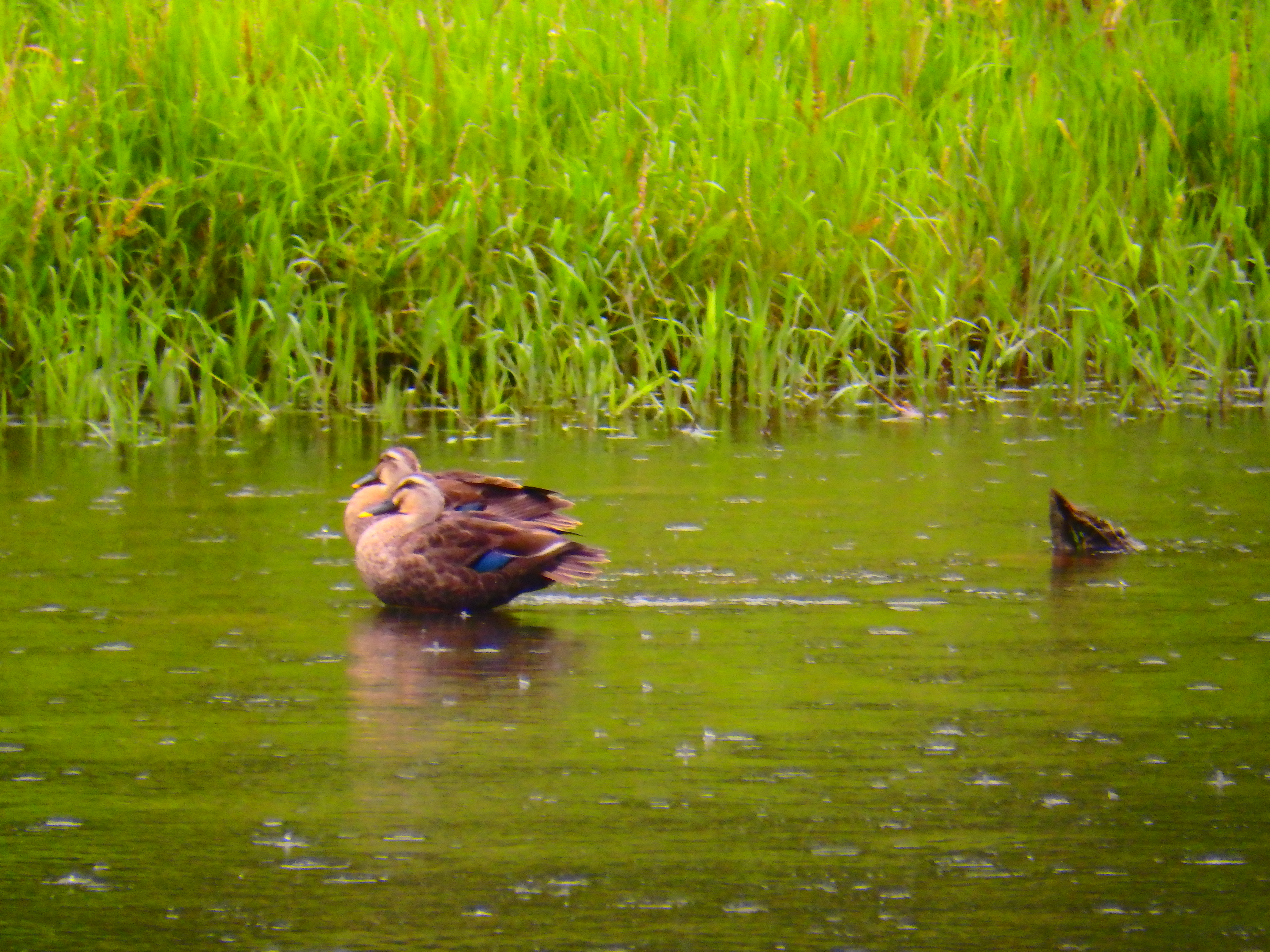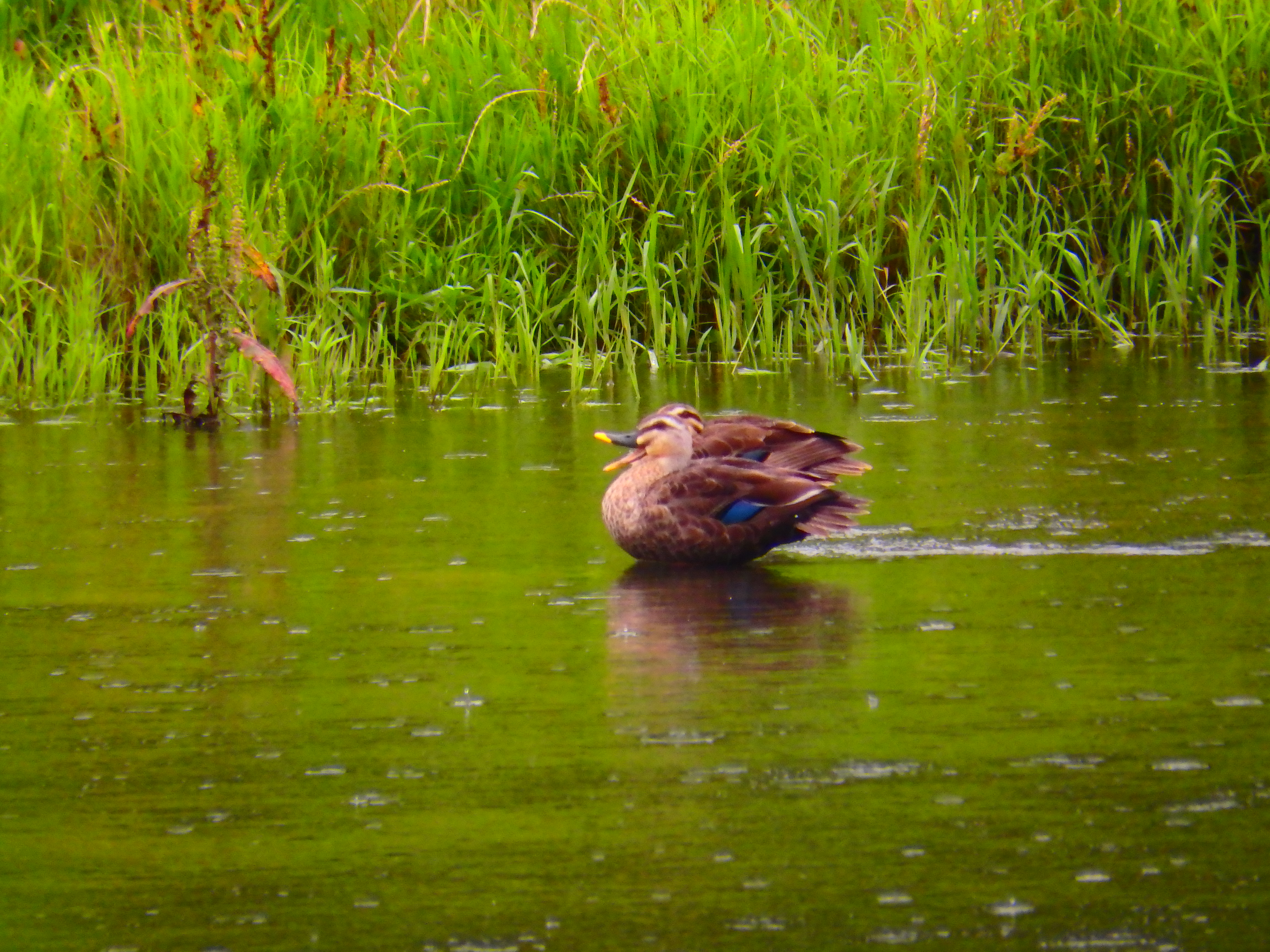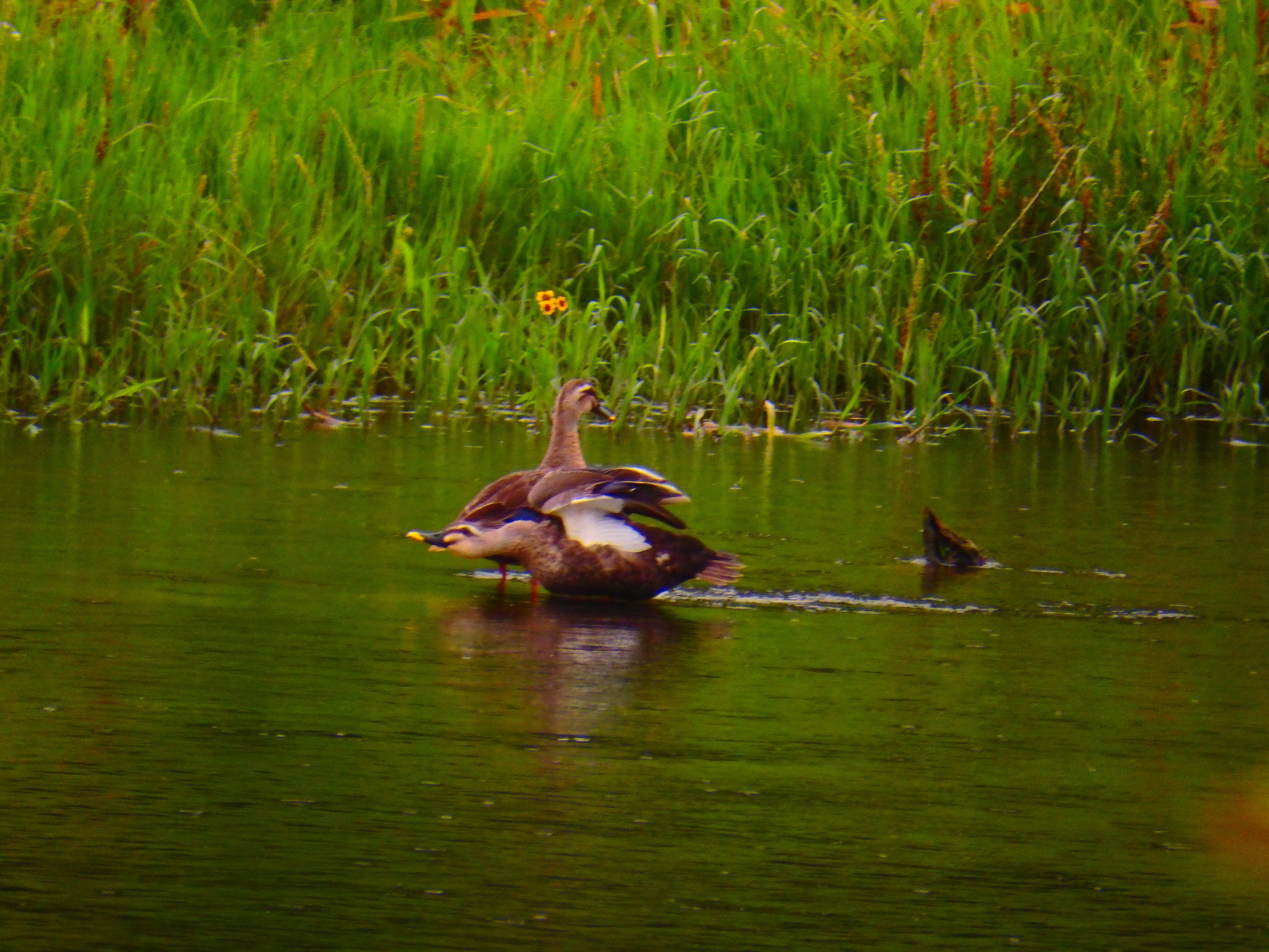 강물 위에 오리 부부가