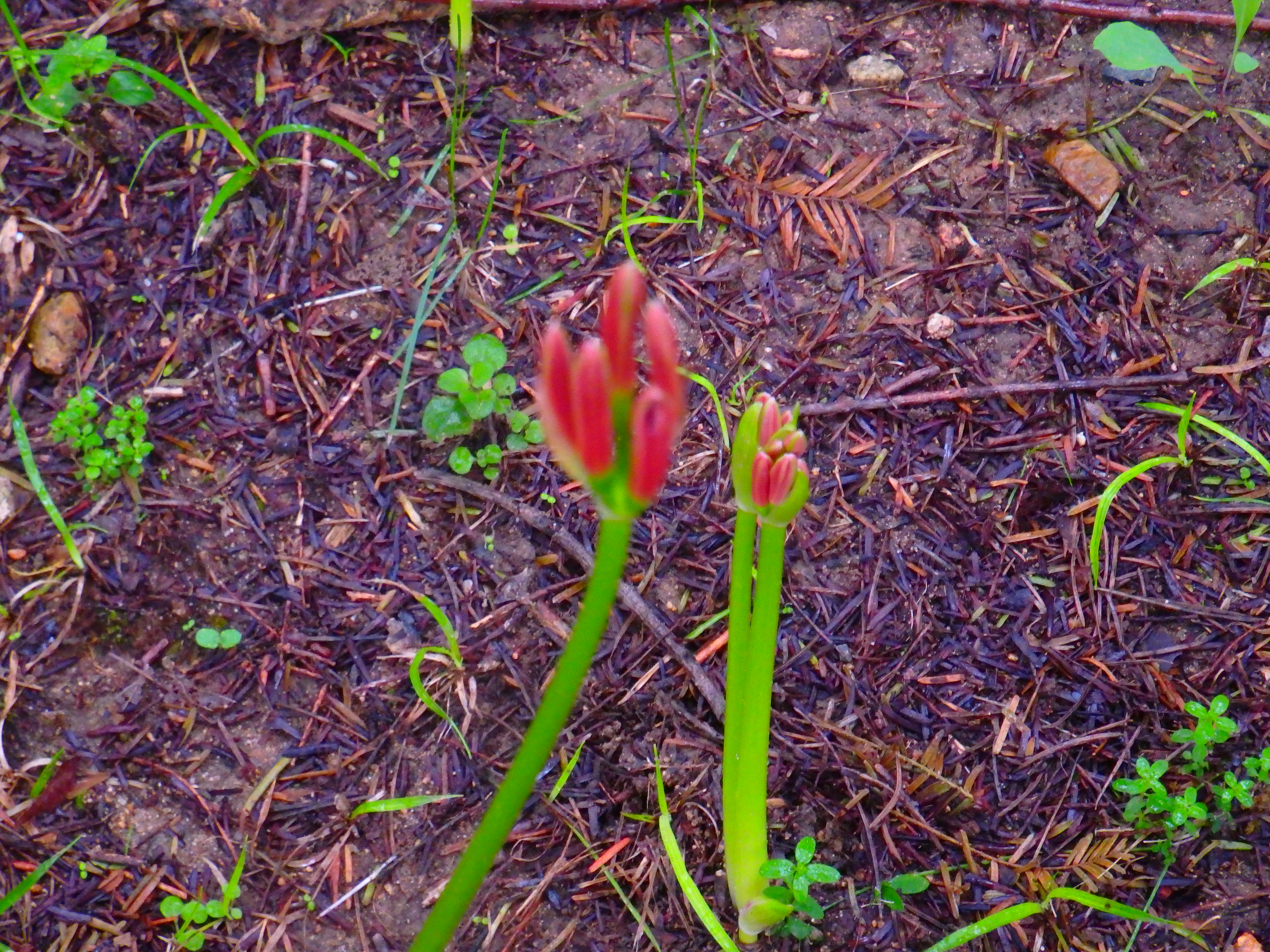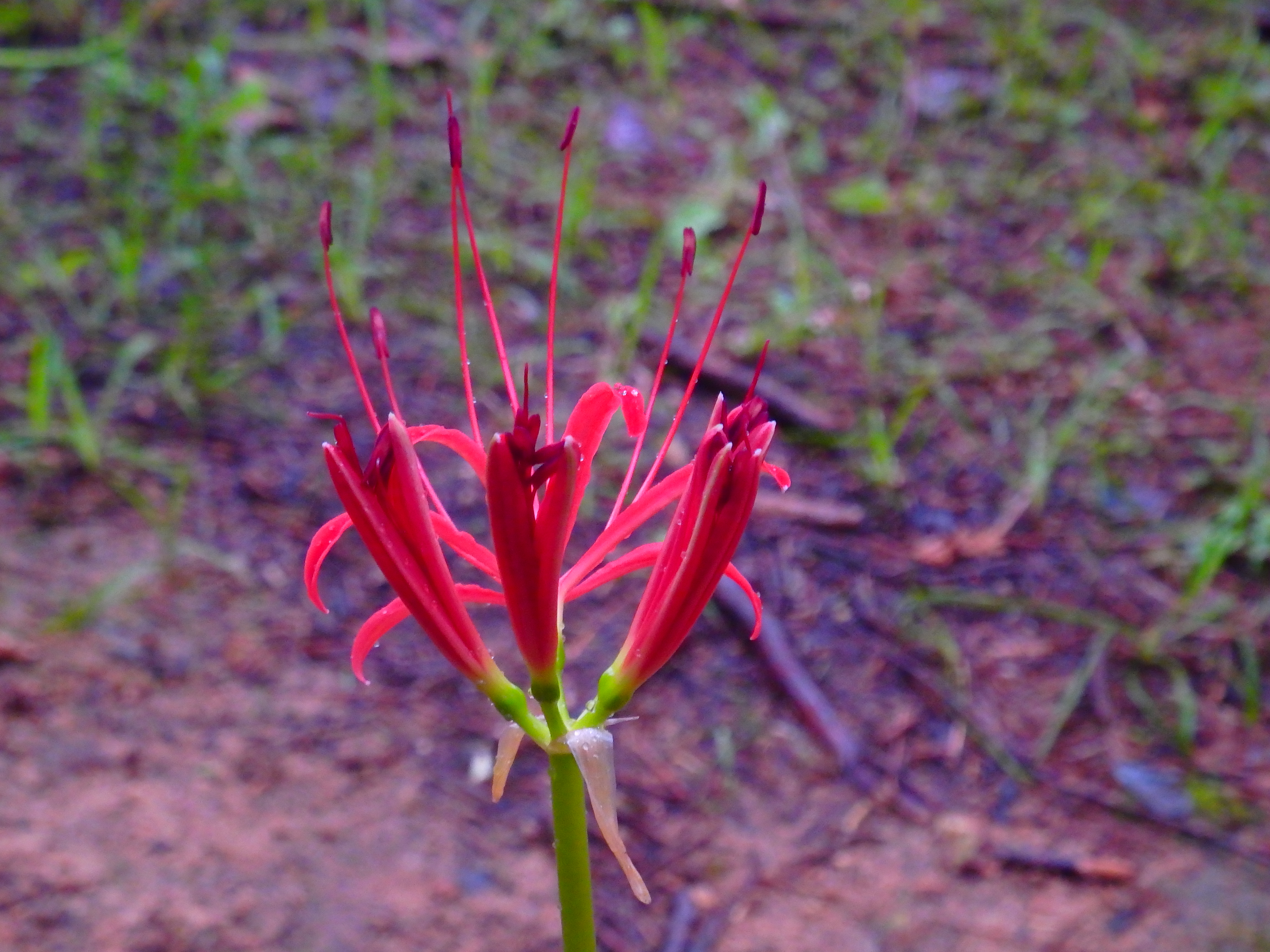 붉은 꽃무릇이 길고 긴 가냘픈 줄기