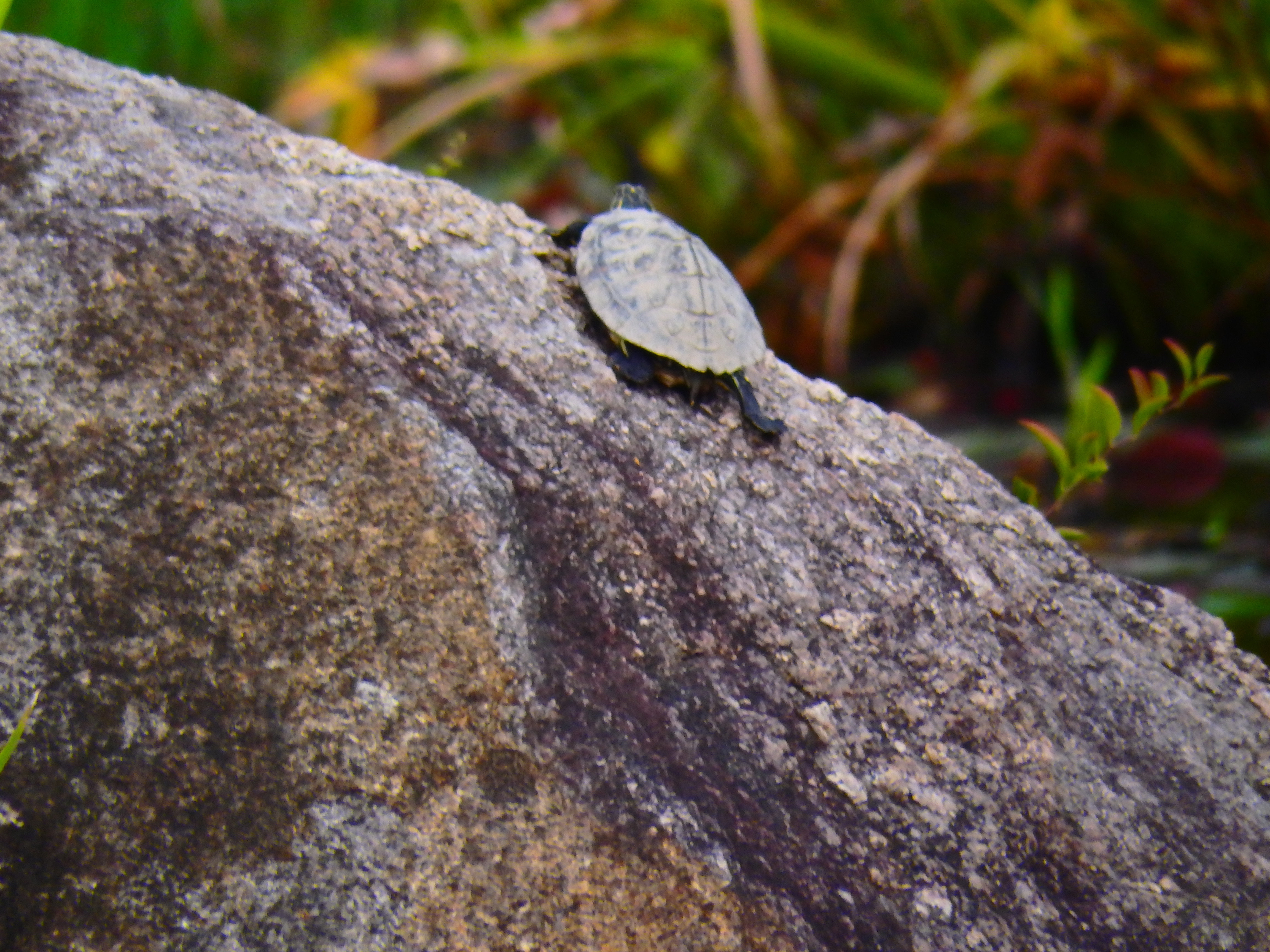 가파른 바위에는 아기 거북이가 홀로
