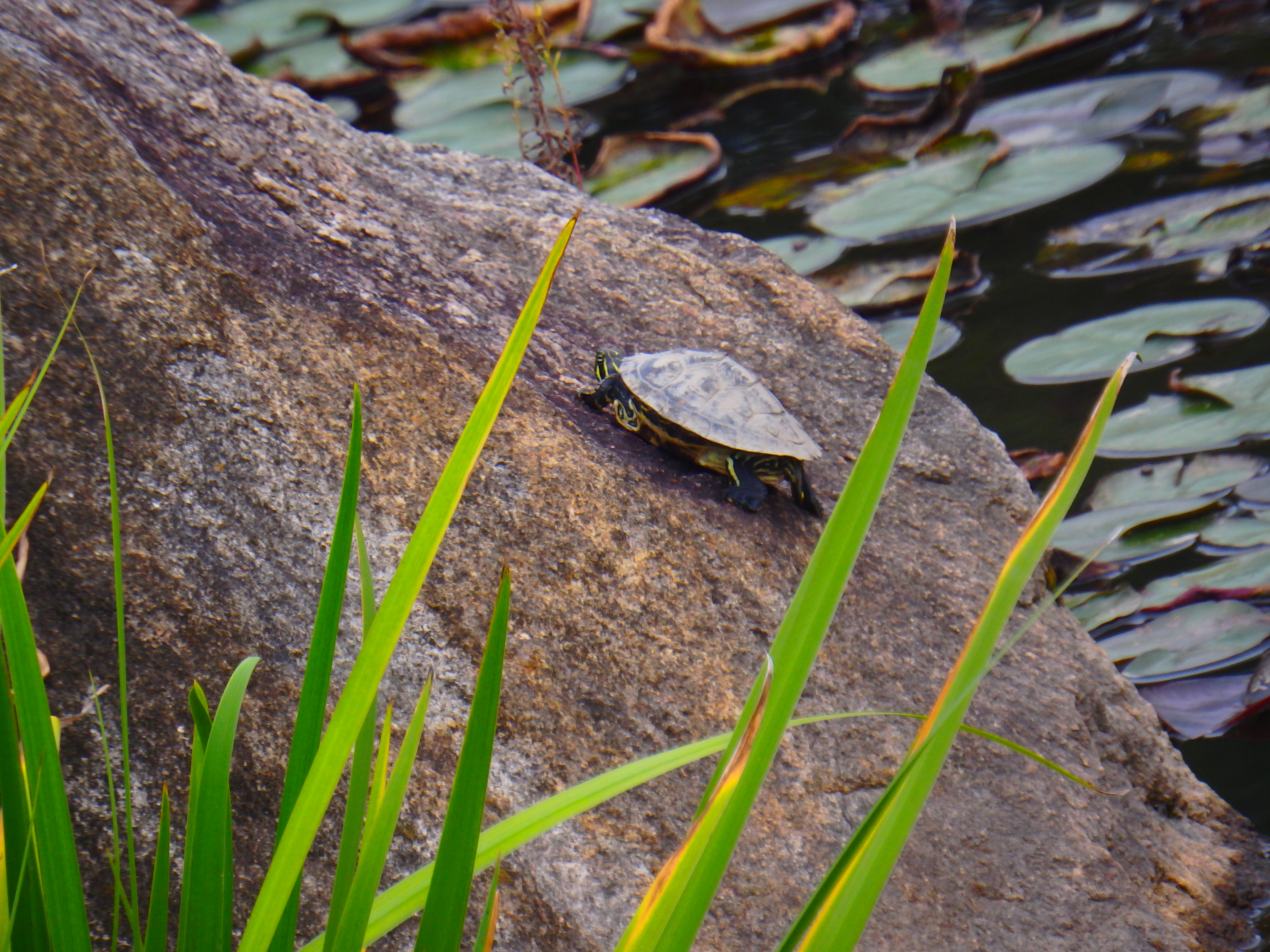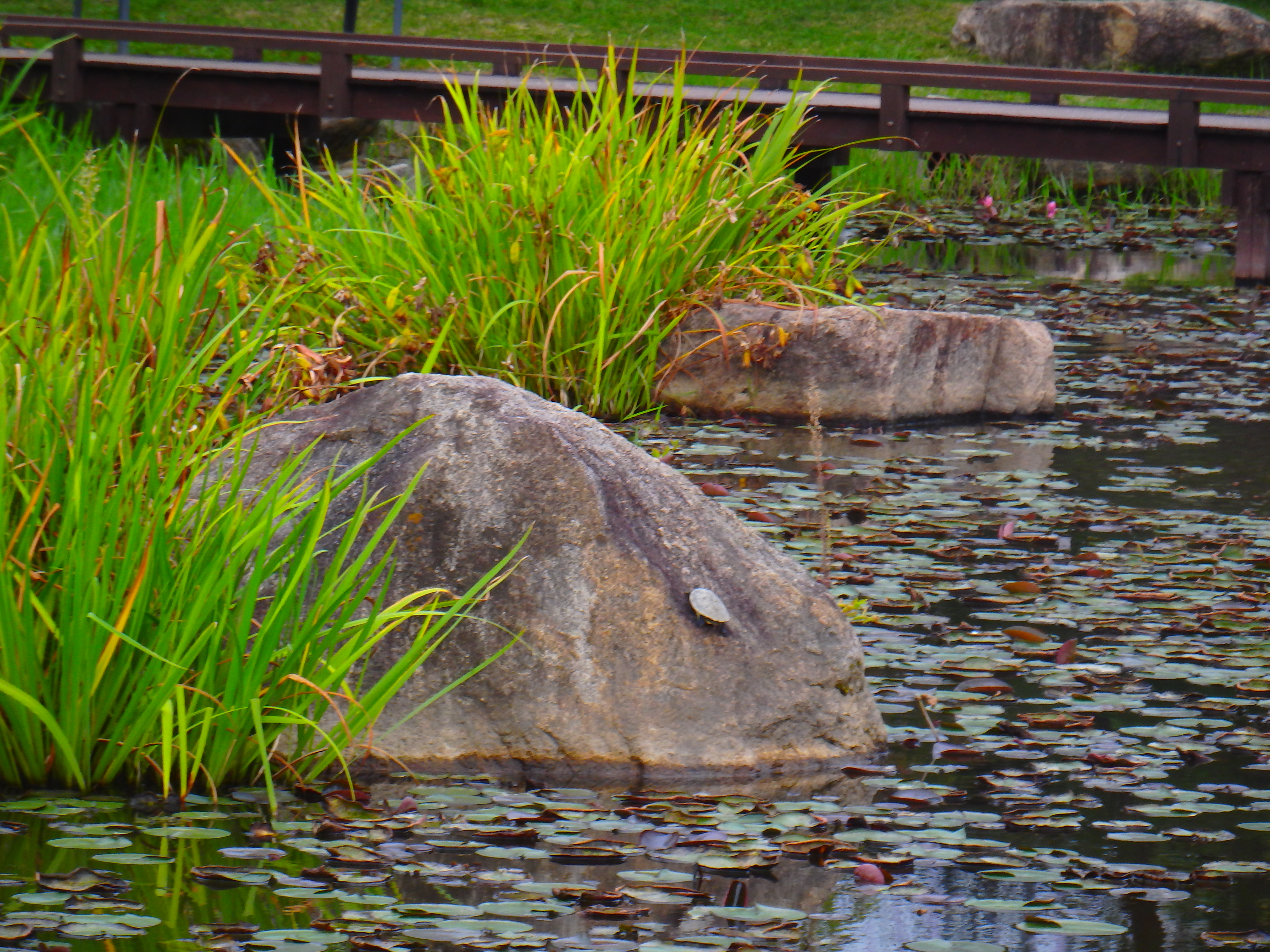 여름과 같이 땡볕이 내리쬐는 정오의 연못은