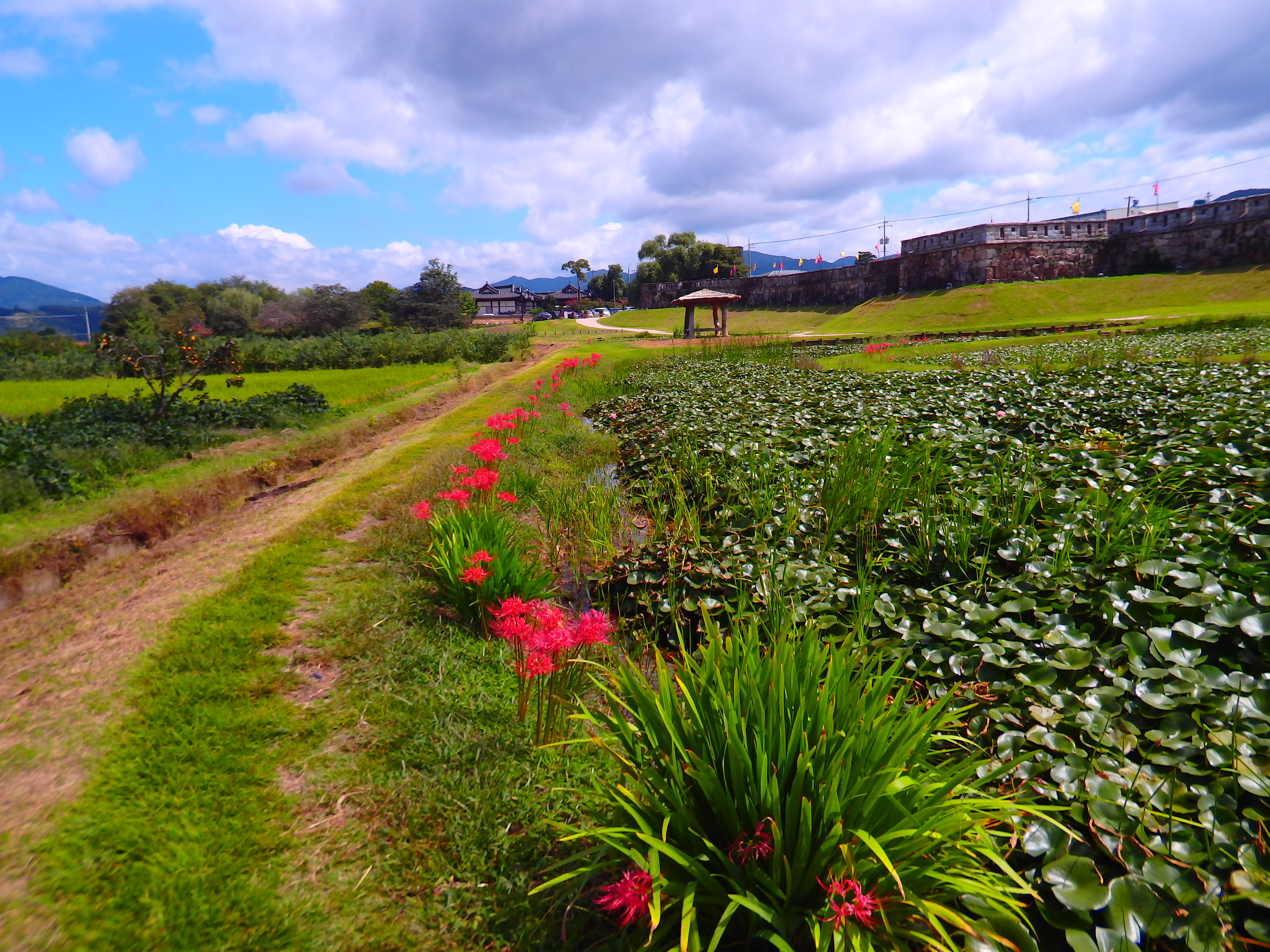 구름들은 연못에 핀 가시연꽃들과 속삭이며