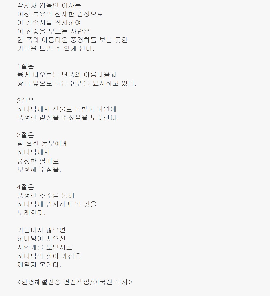 | *저 밭에 농부 나가(We Plow the Fields, and Scatter)/M. Claudius (0) | 2021.11.21 |