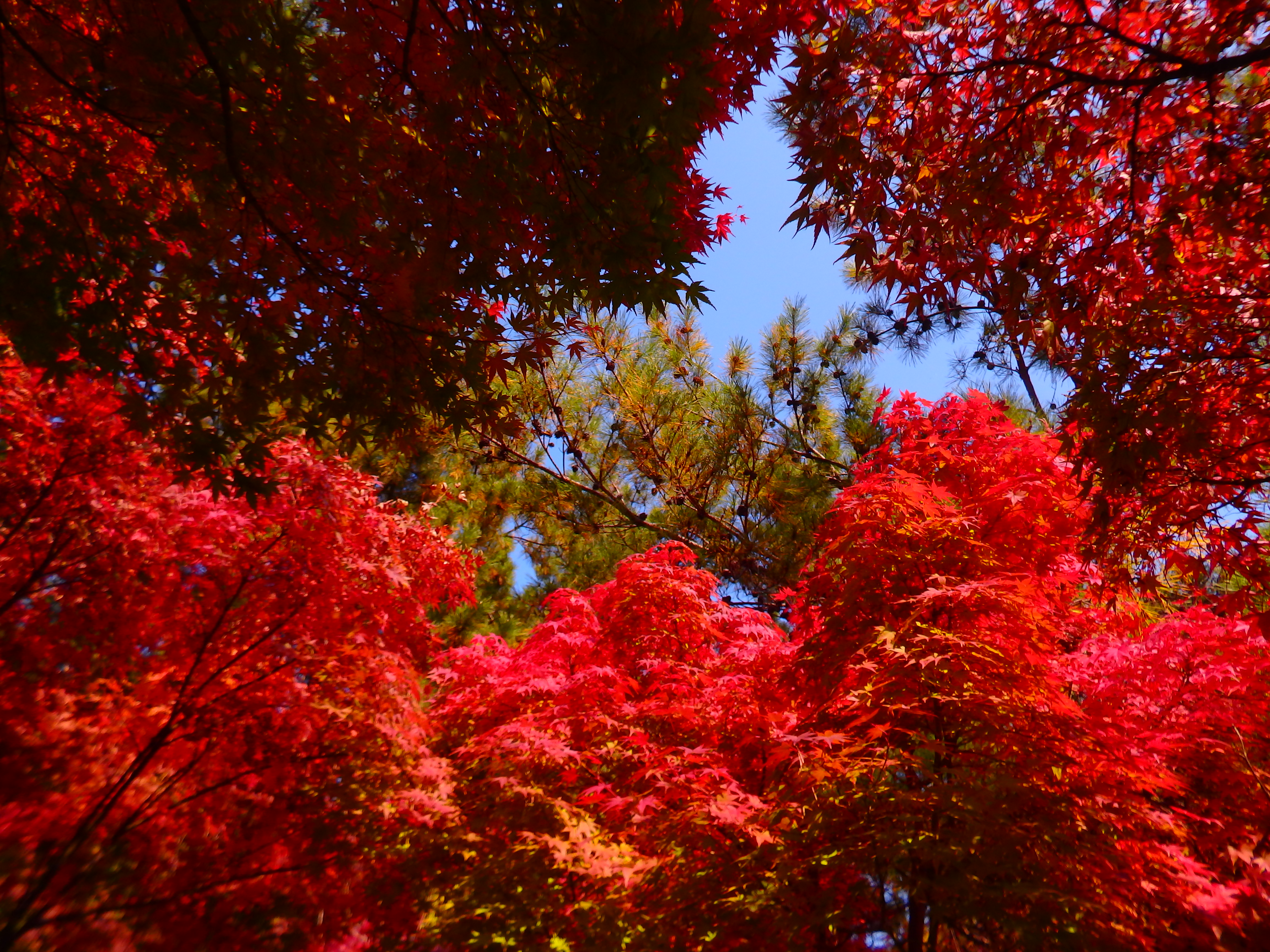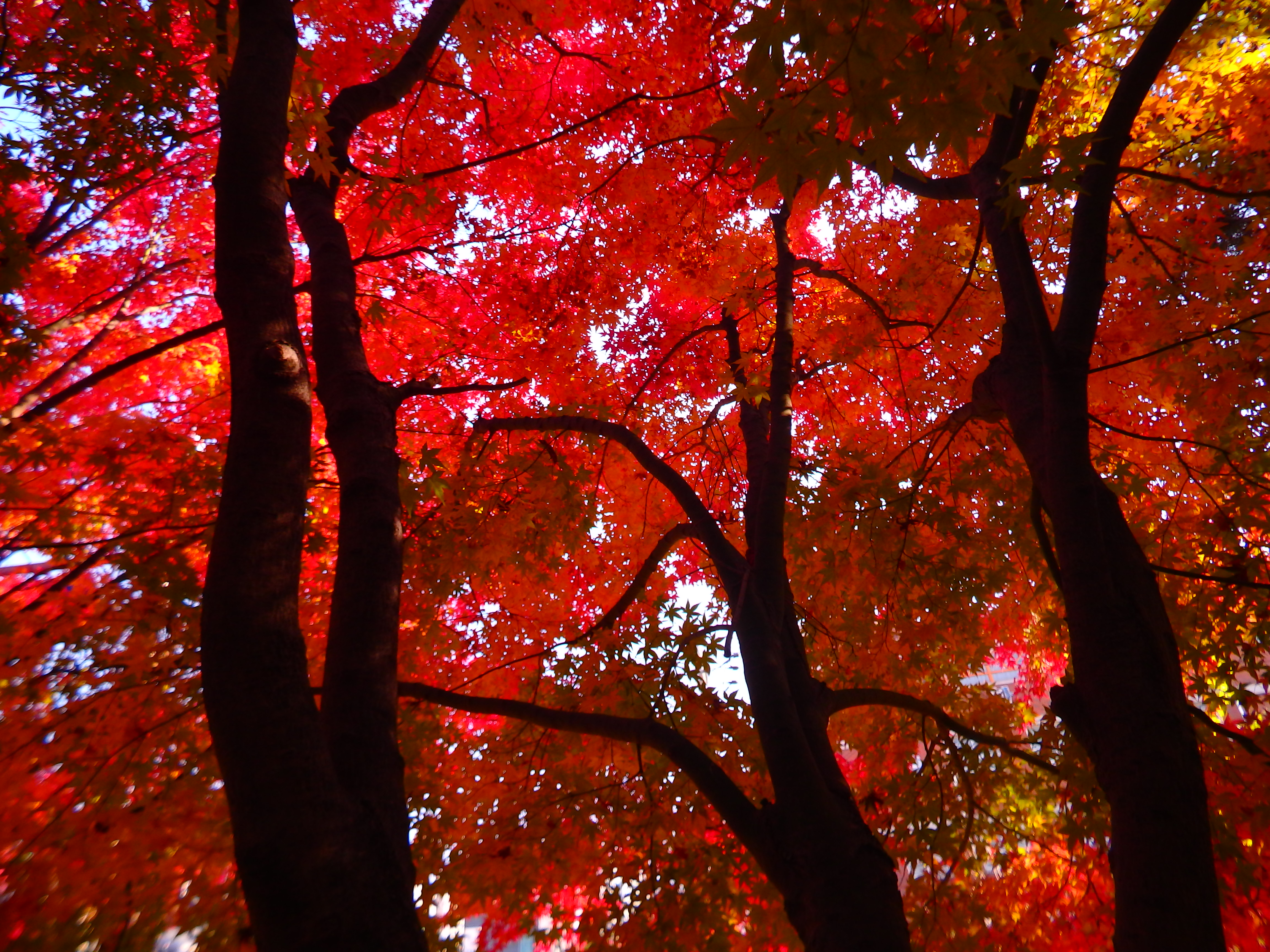 늦게 물들은 단풍잎들이 서로 손을 잡고