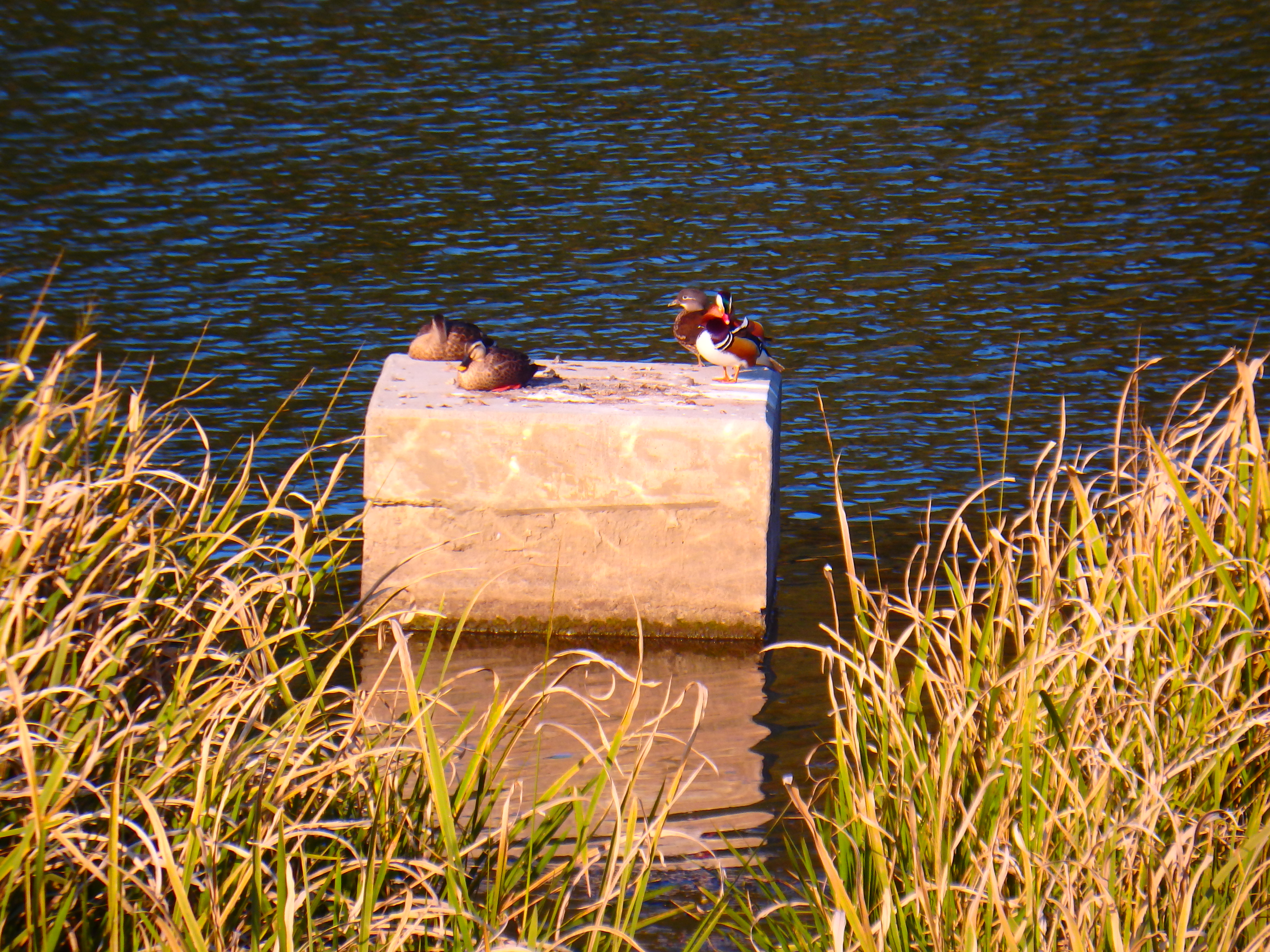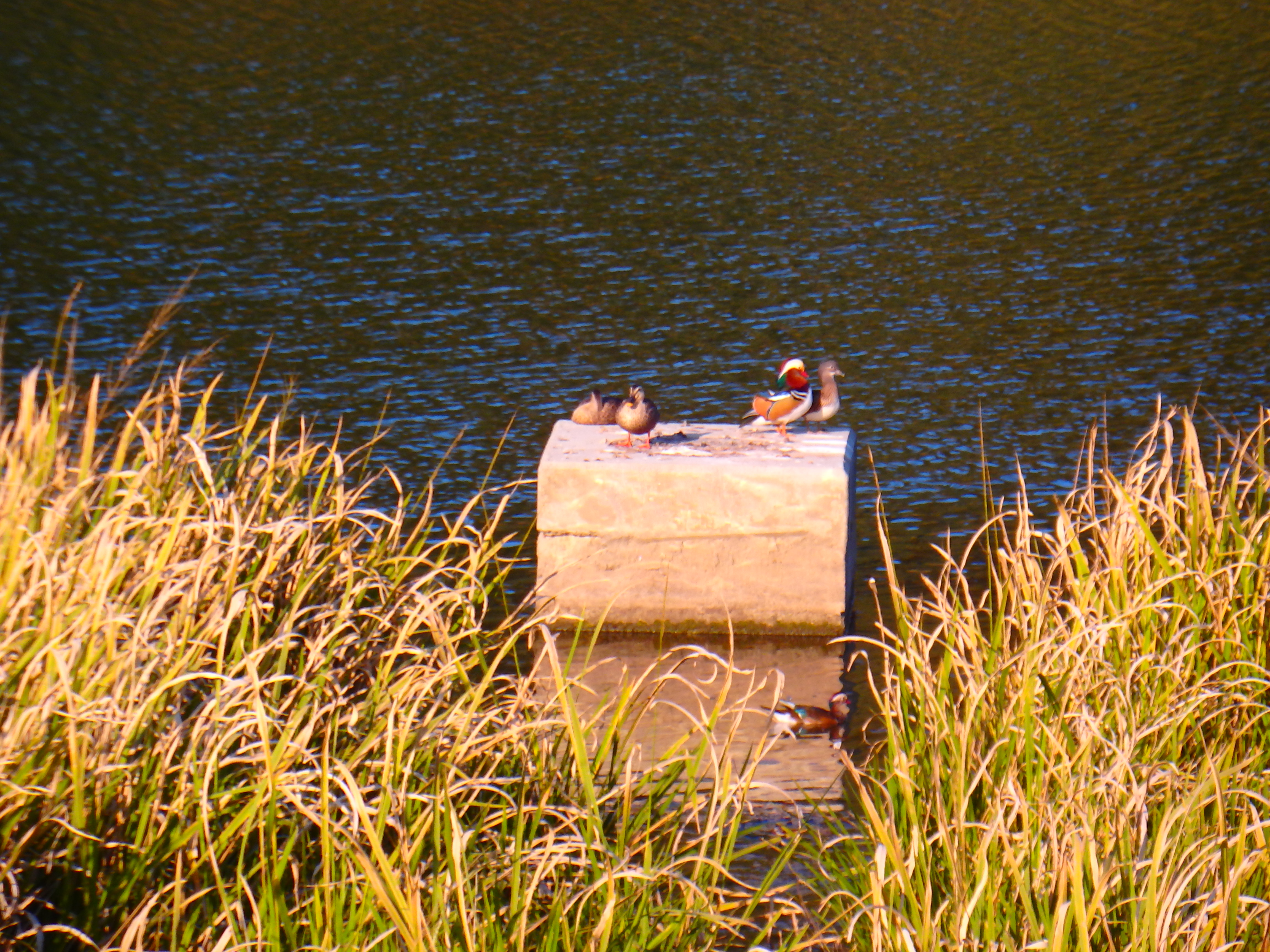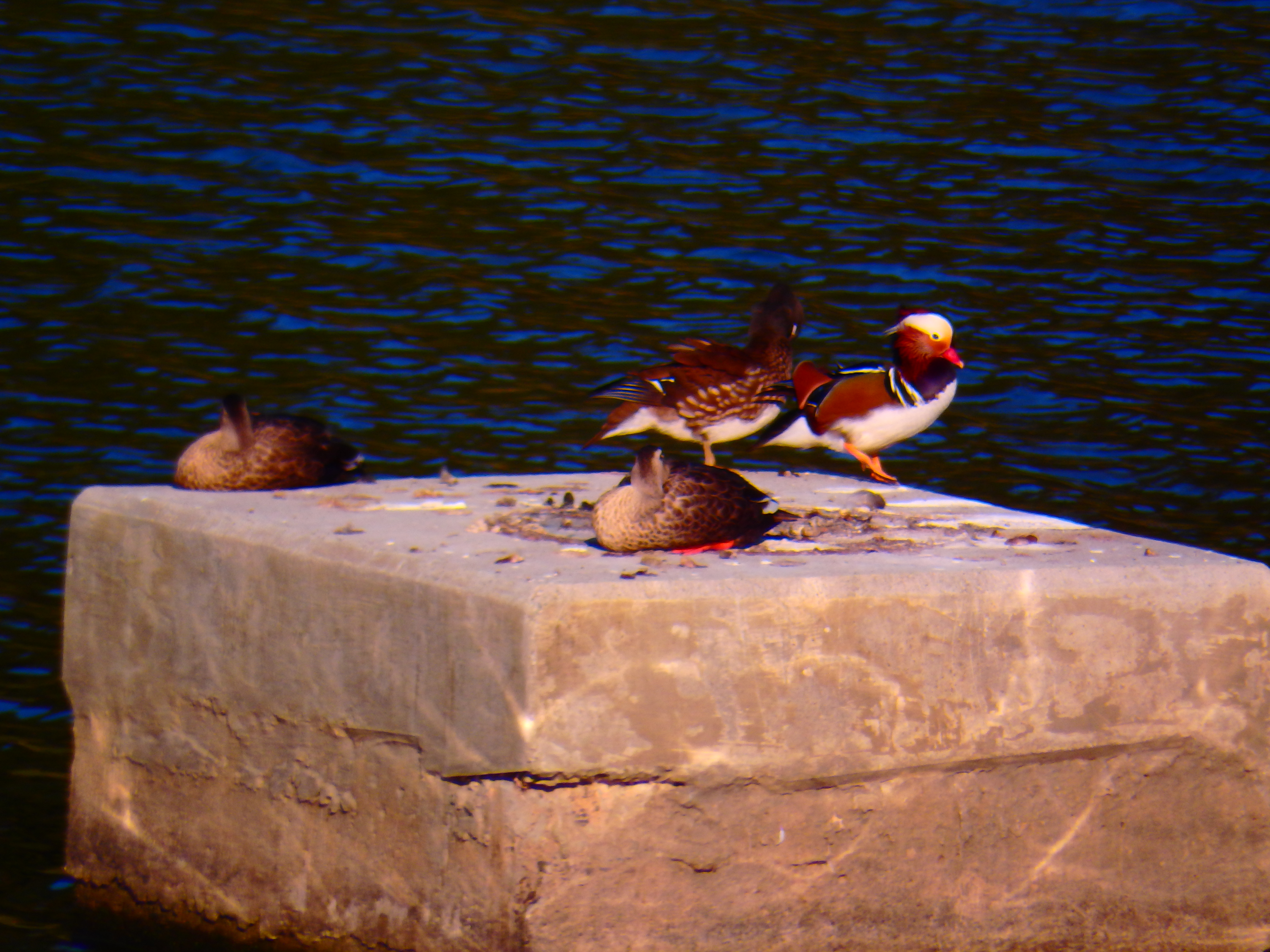 원앙새 한 쌍도 찾아와 힘차게 자맥질하였다.