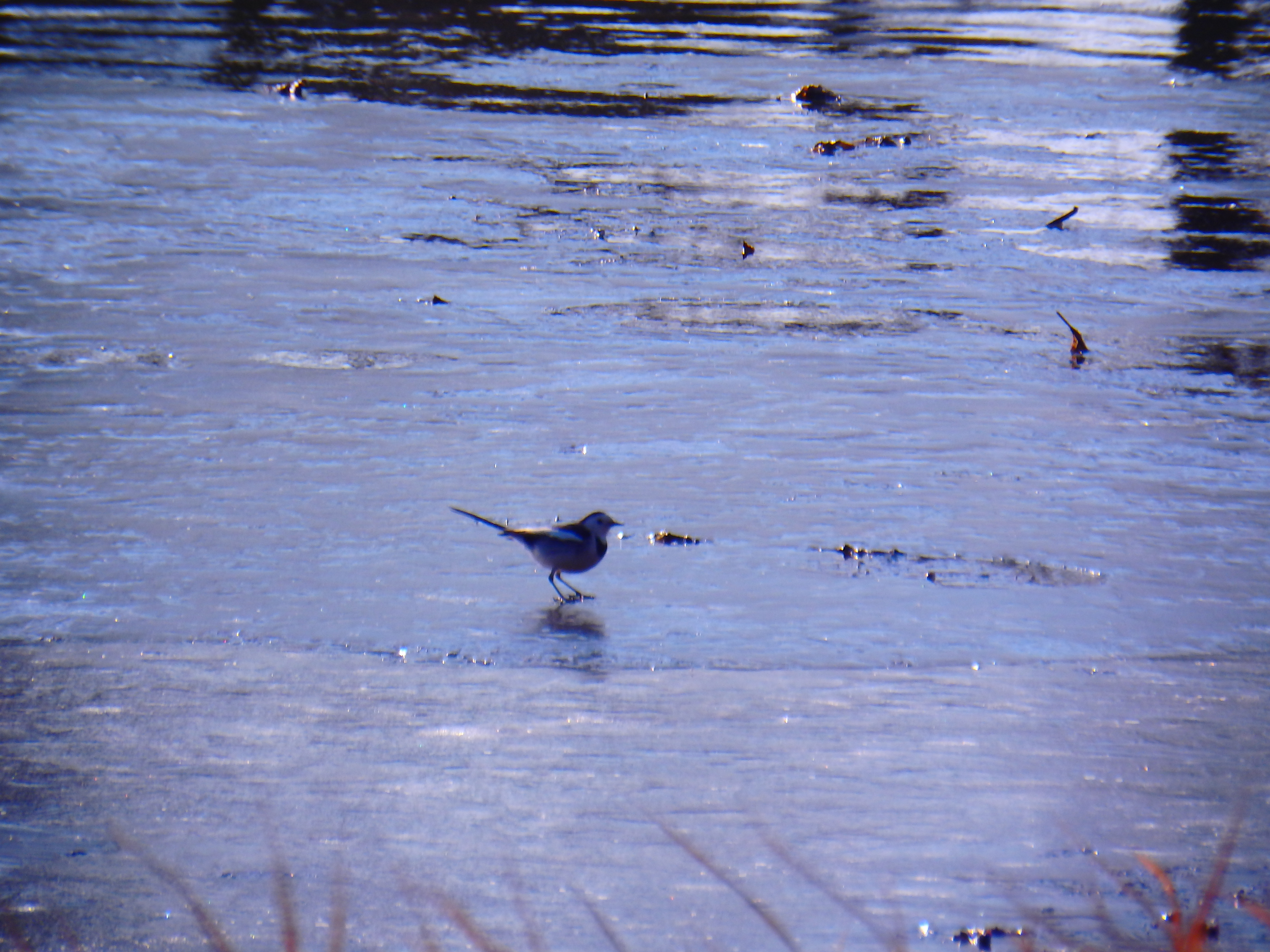 할미새 한 마리가 가느다란 다리로