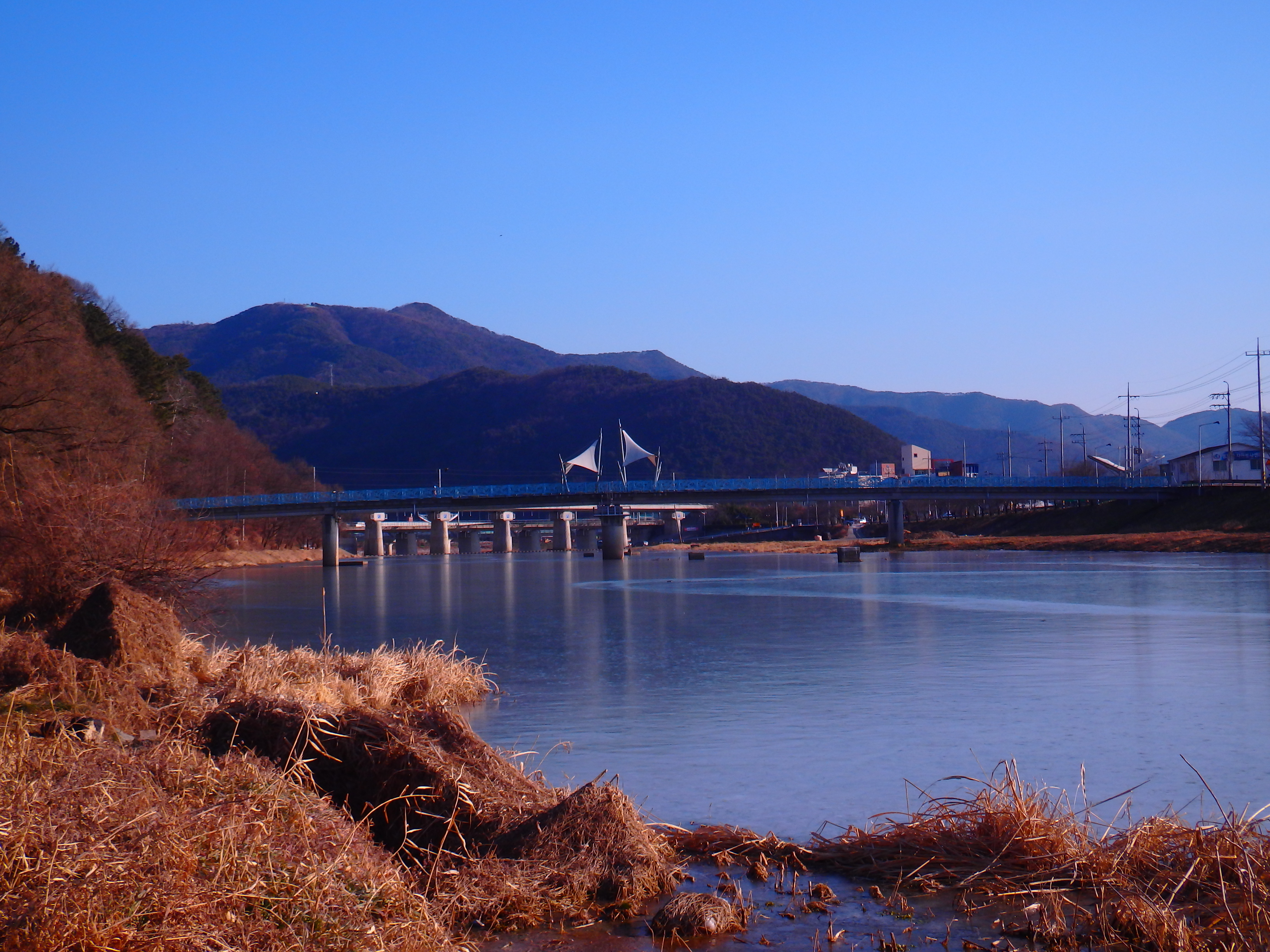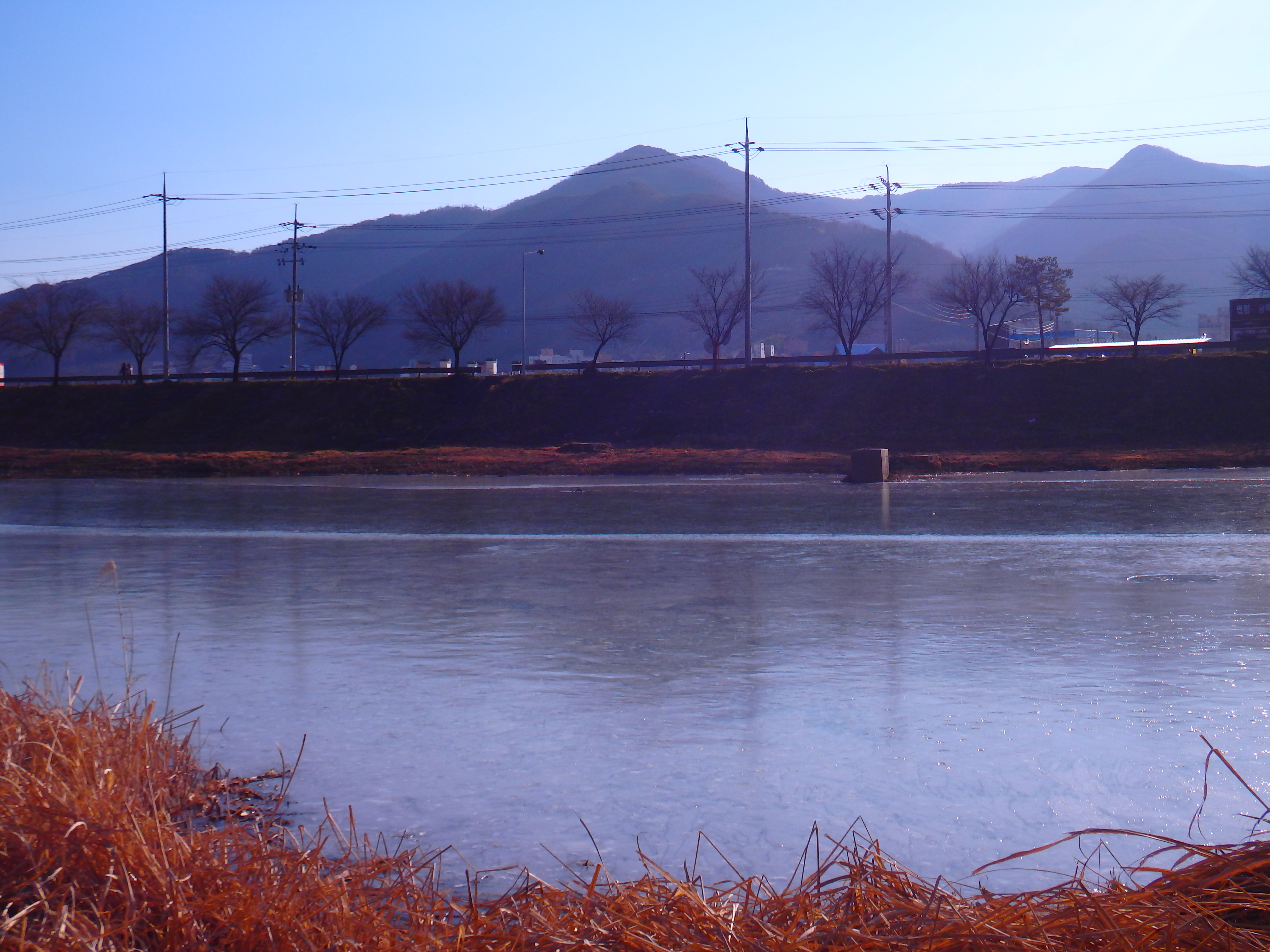 매서운 한파에 강물이 얼었다.