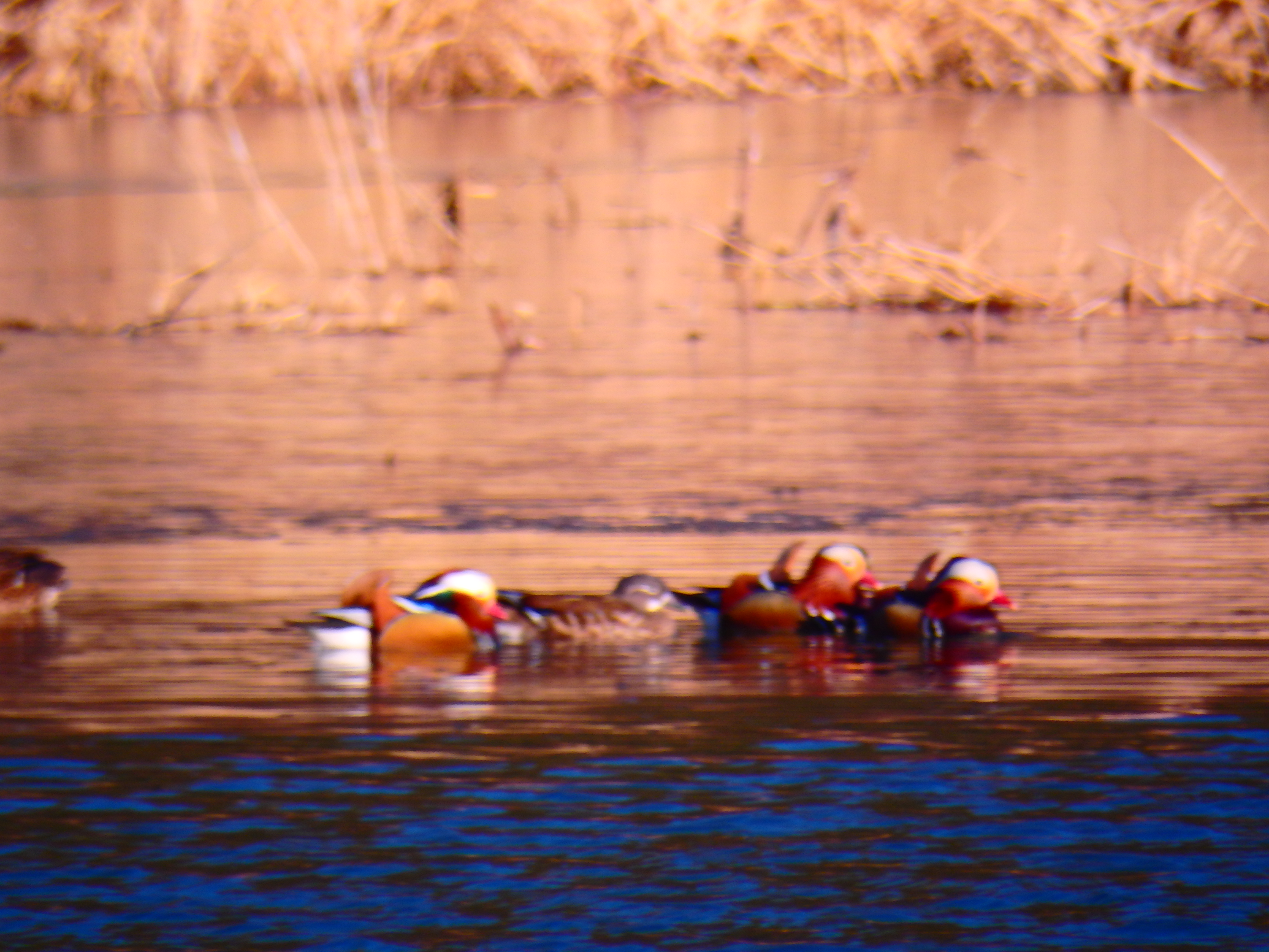 원앙이들이 차가운 물길을 헤치며