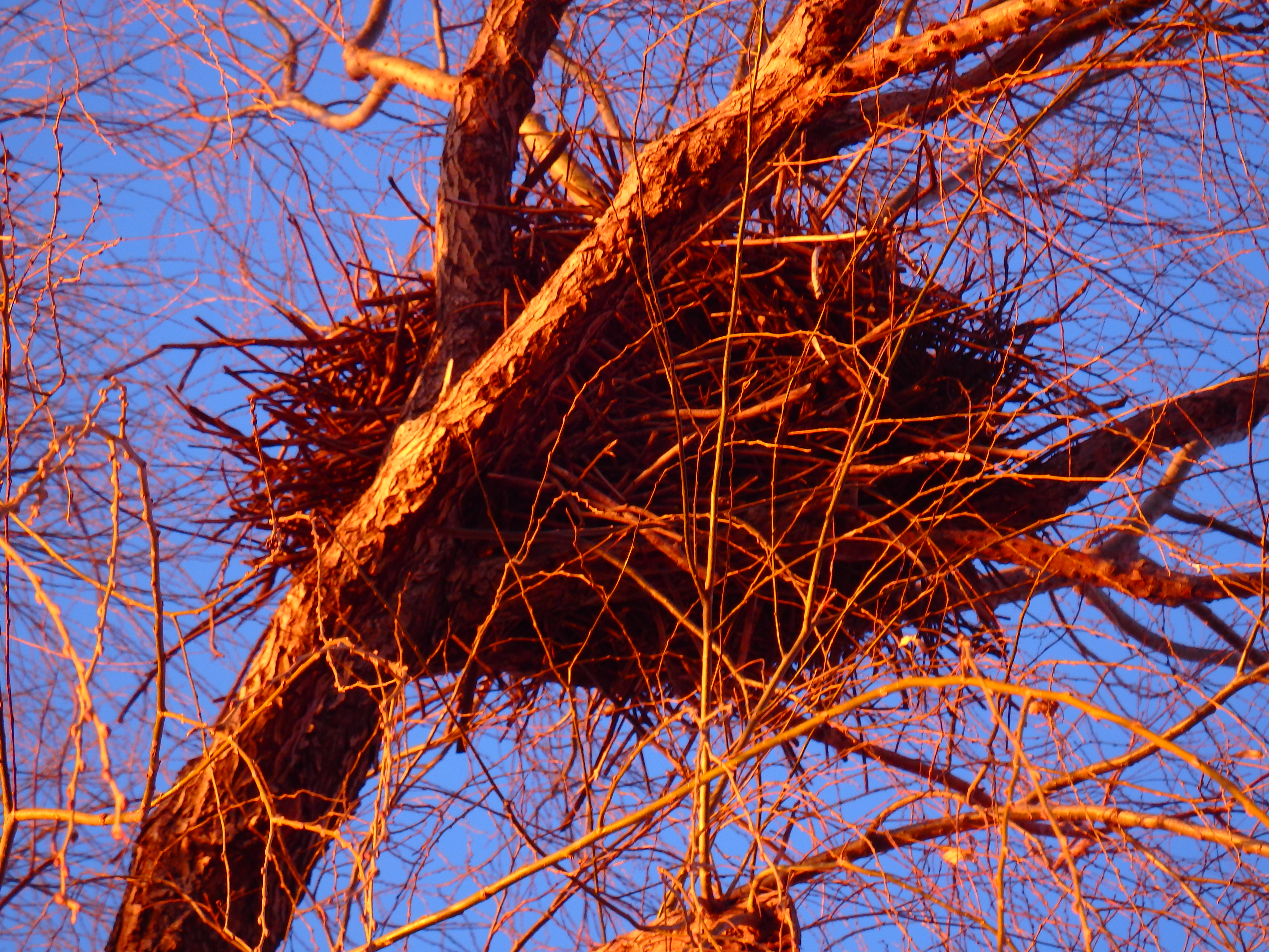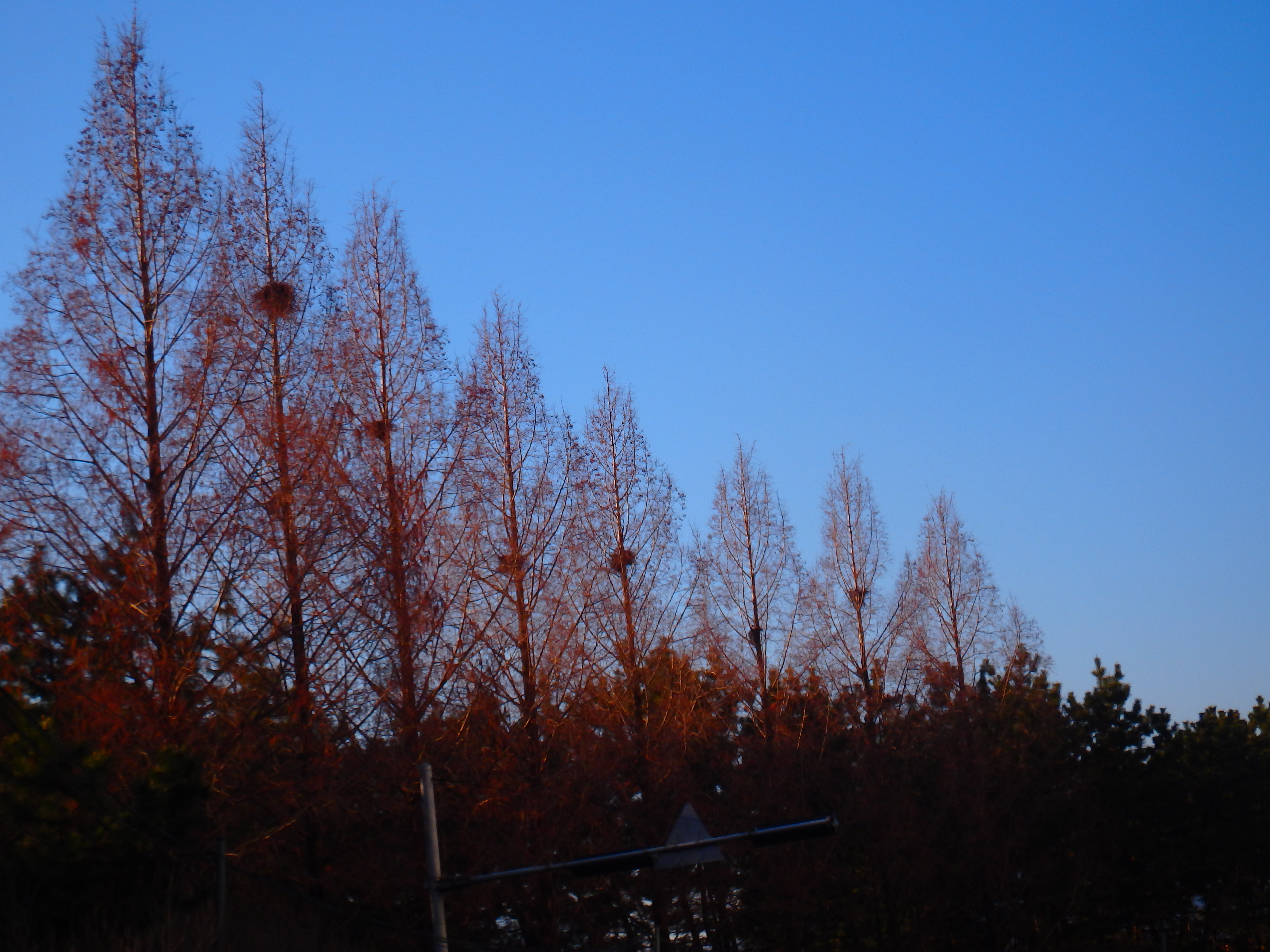까치들의 둥지가 나란히 지어져 있었다.