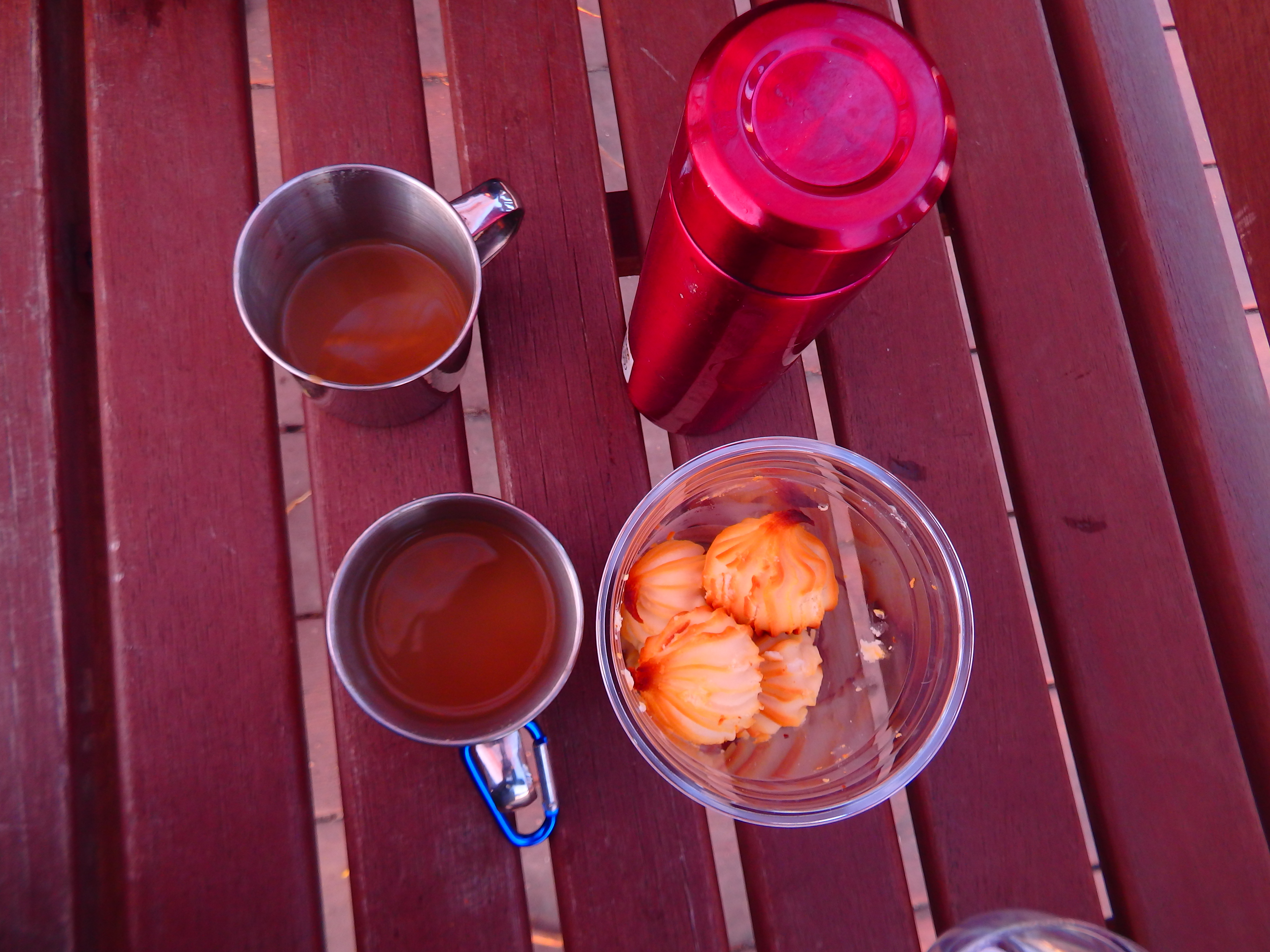 보온병을 꺼내어 따끈한 커피를 나누며