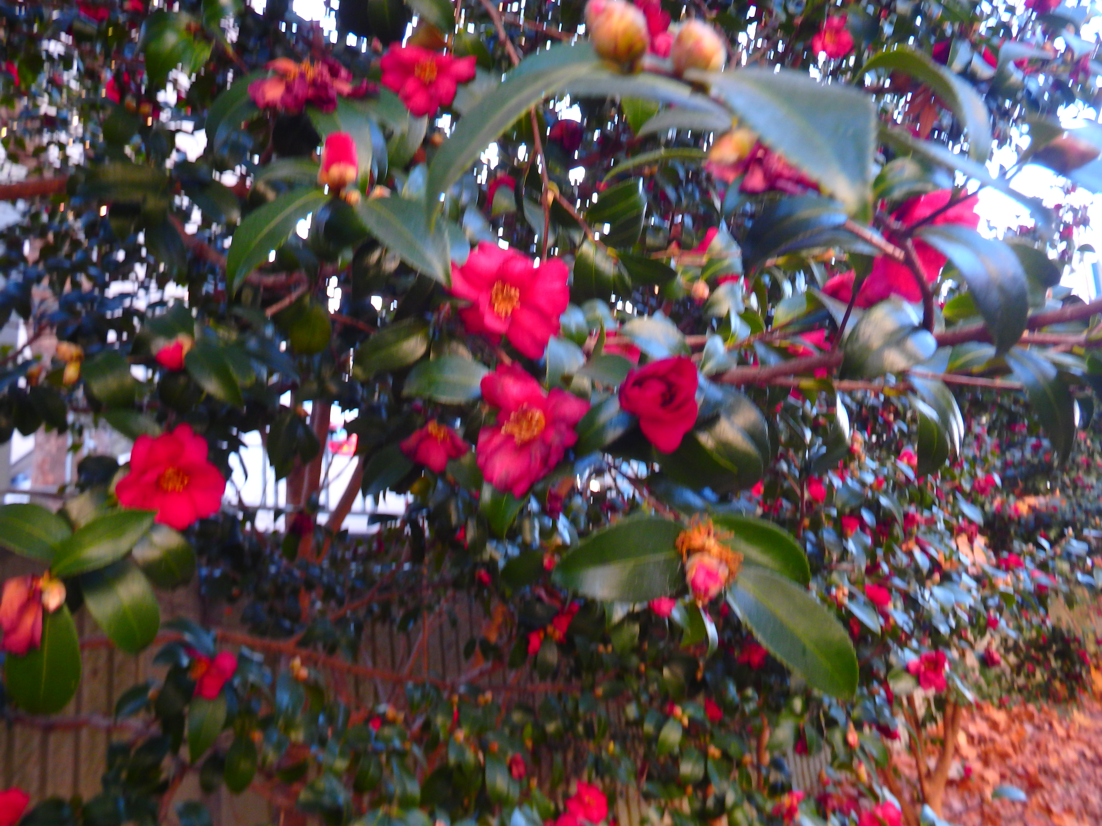 길가에 붉게 핀 동백꽃들도 추위를 견디며