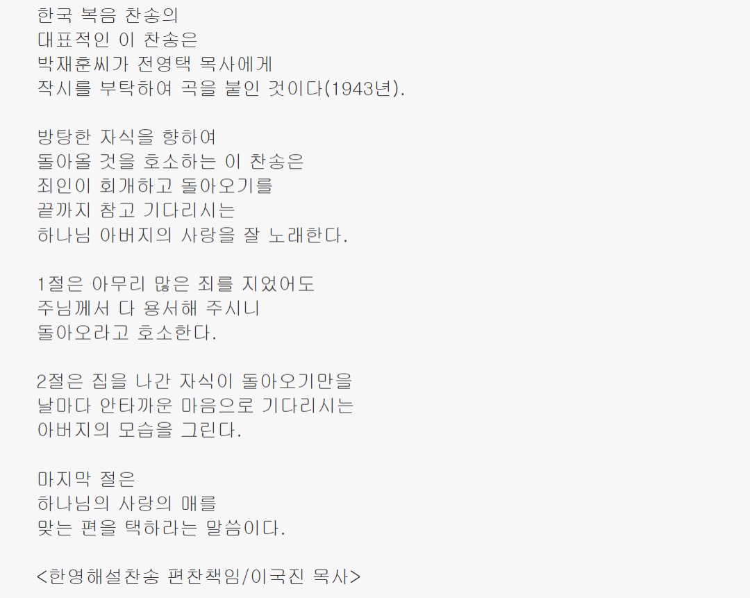 탕자와 같이 하나님 품을 떠난 자들을