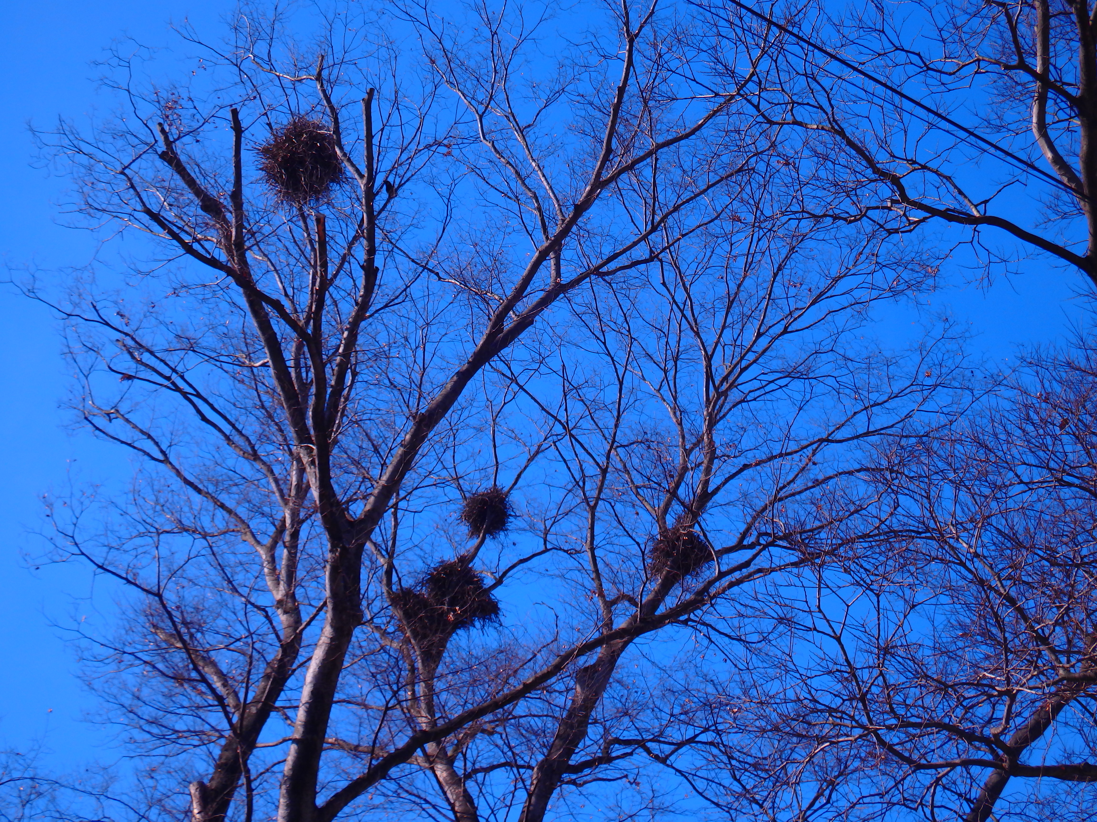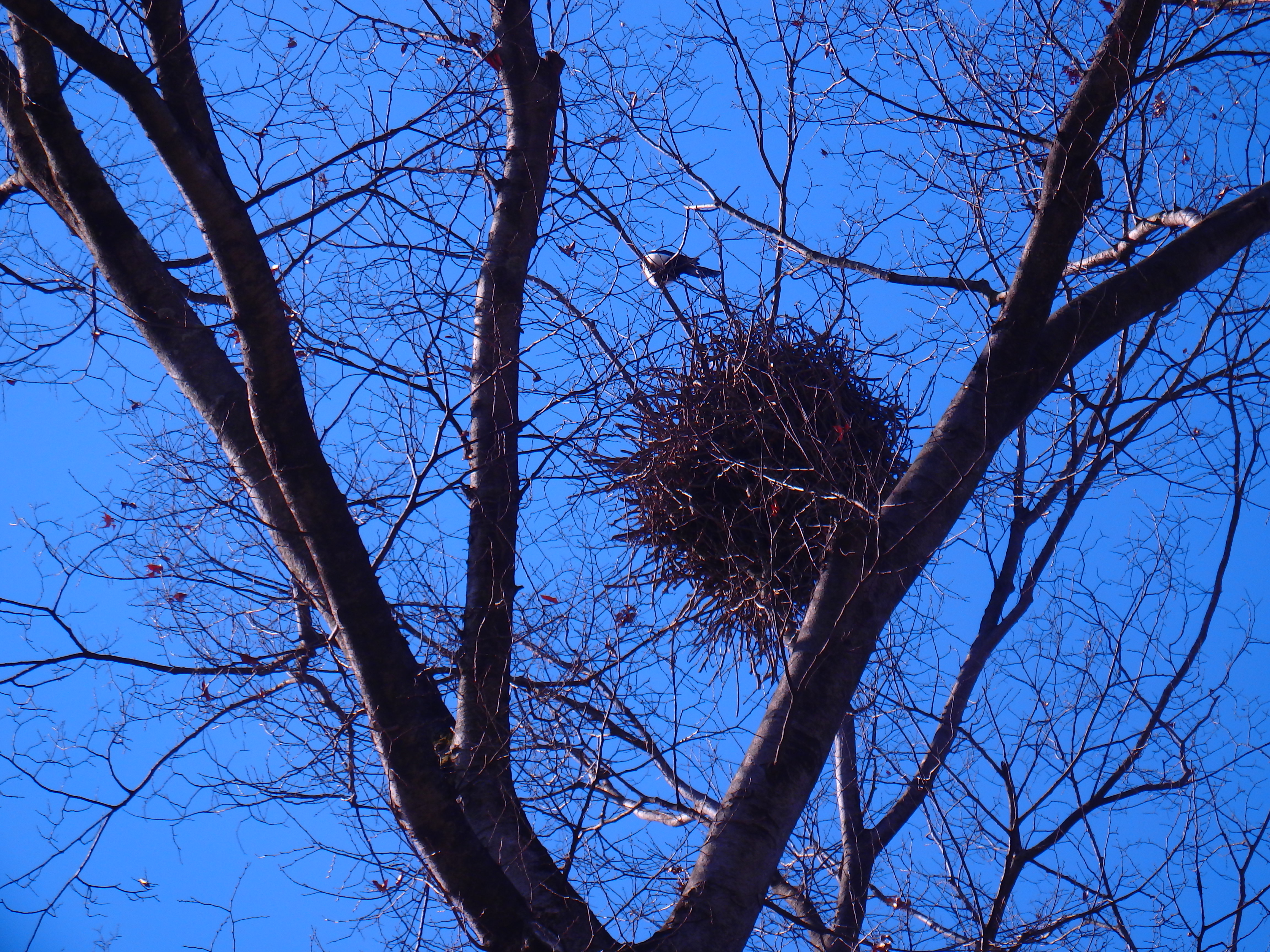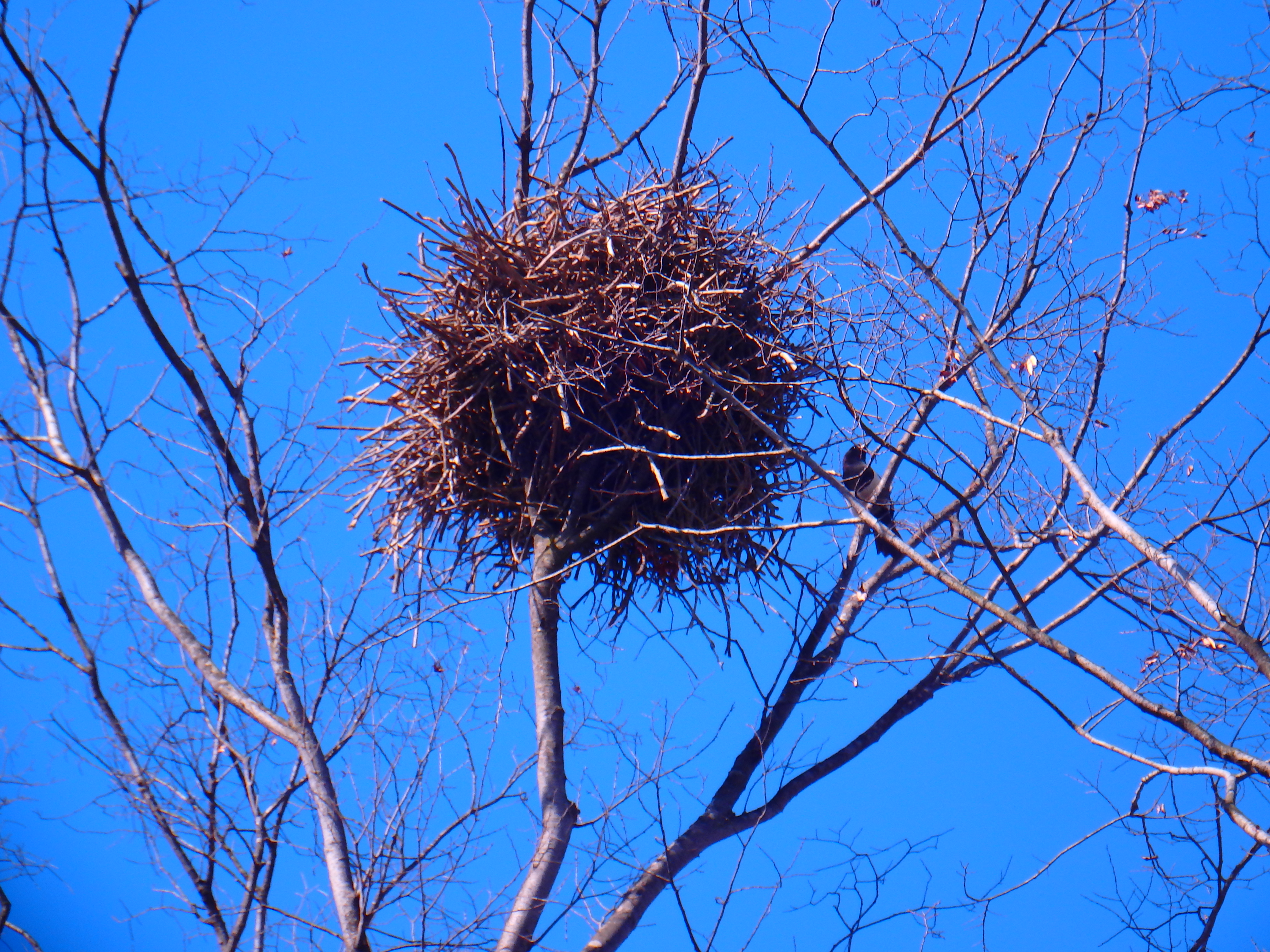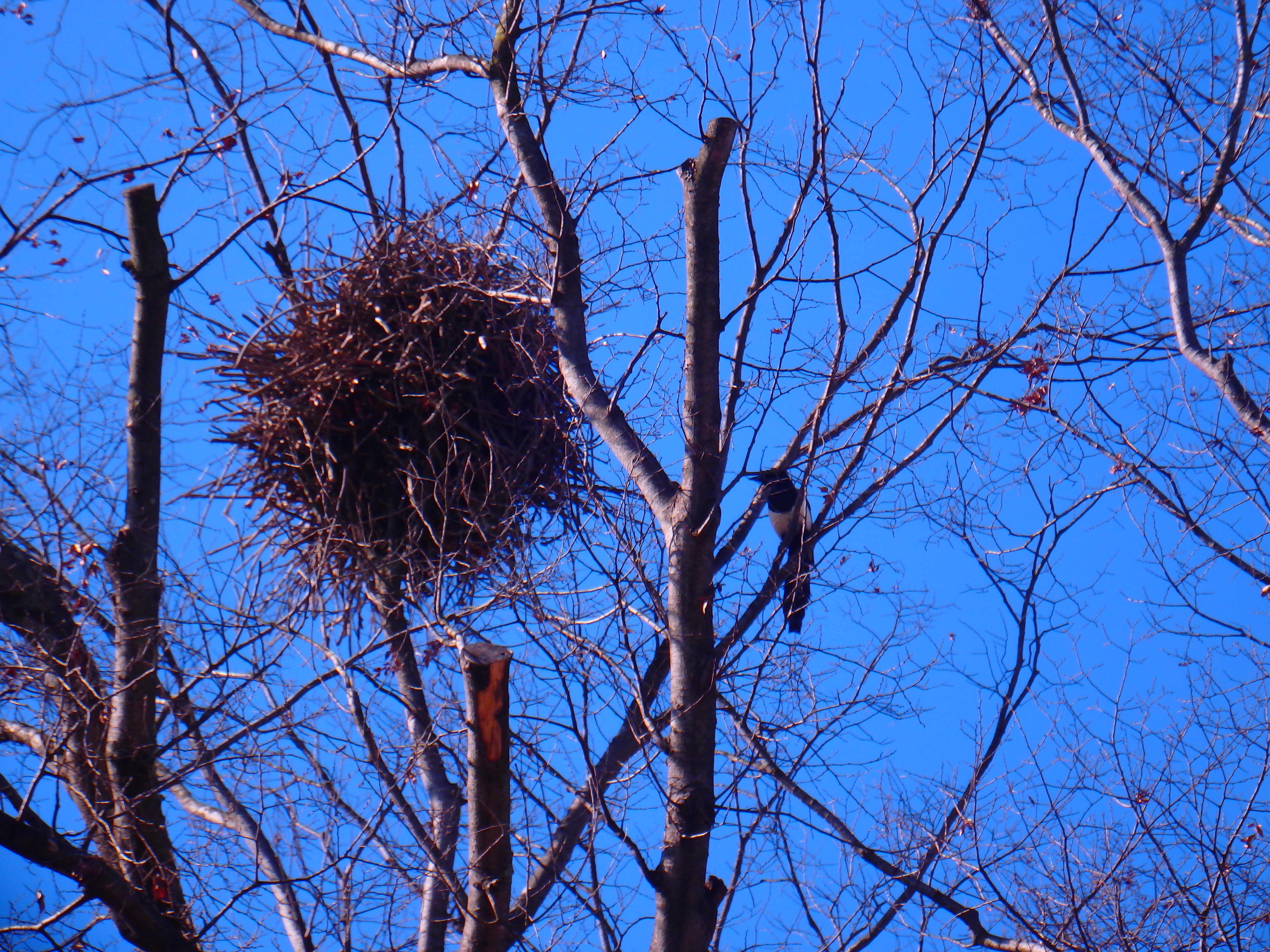 - 느티나무에 둥지를 만든 까치가 울며