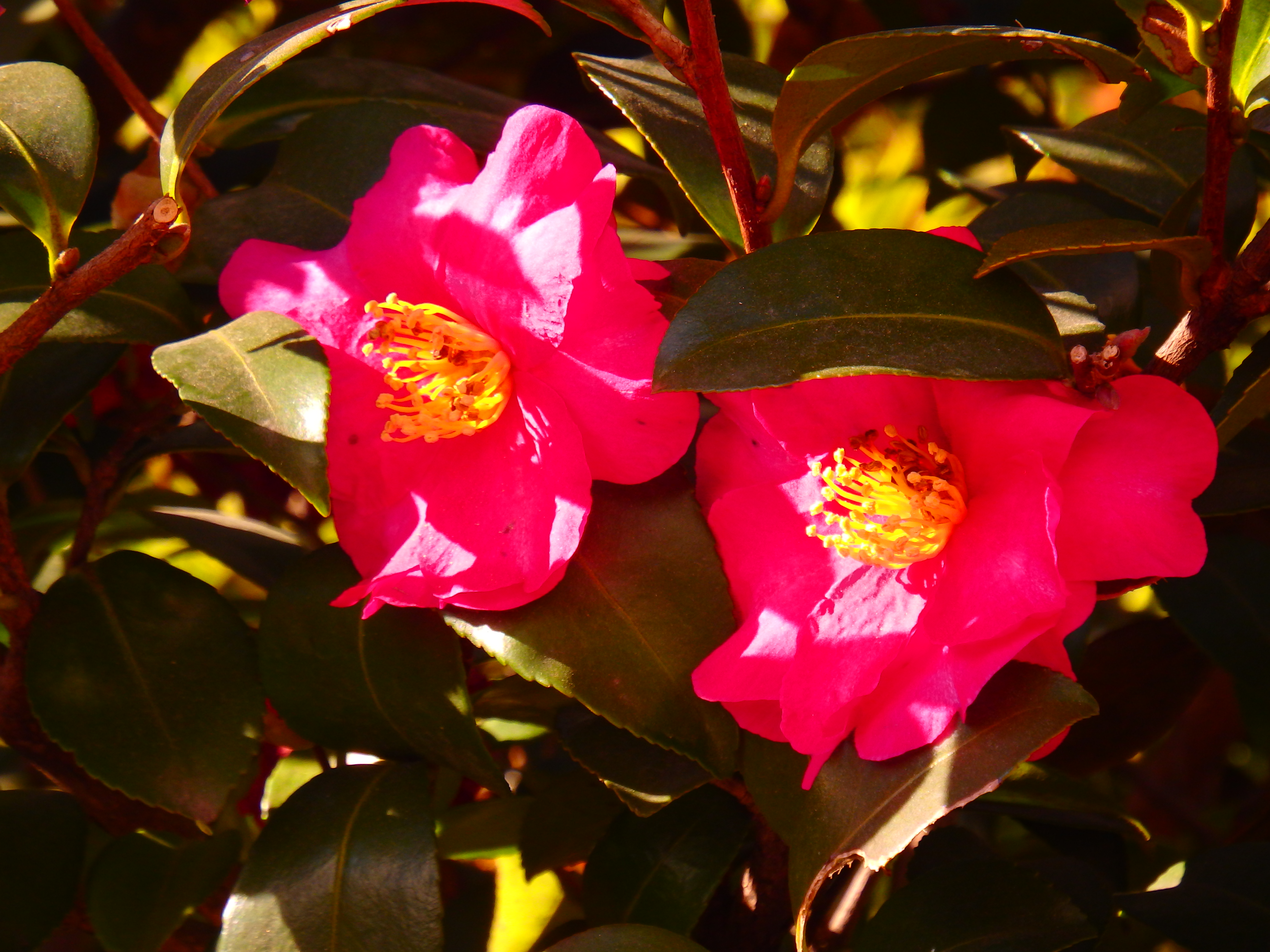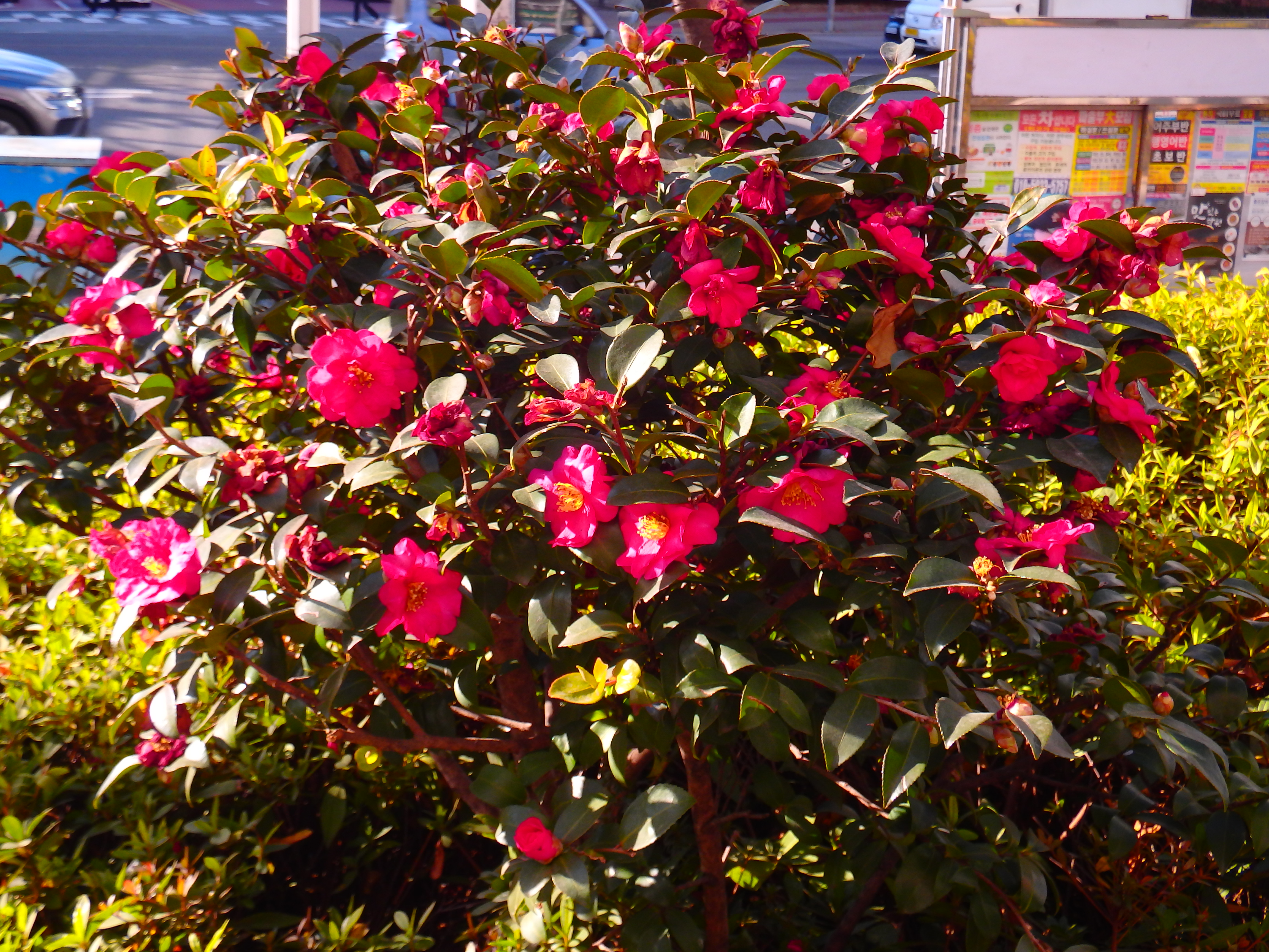 길가의 붉은 동백꽃들도 얼굴을 마주하며