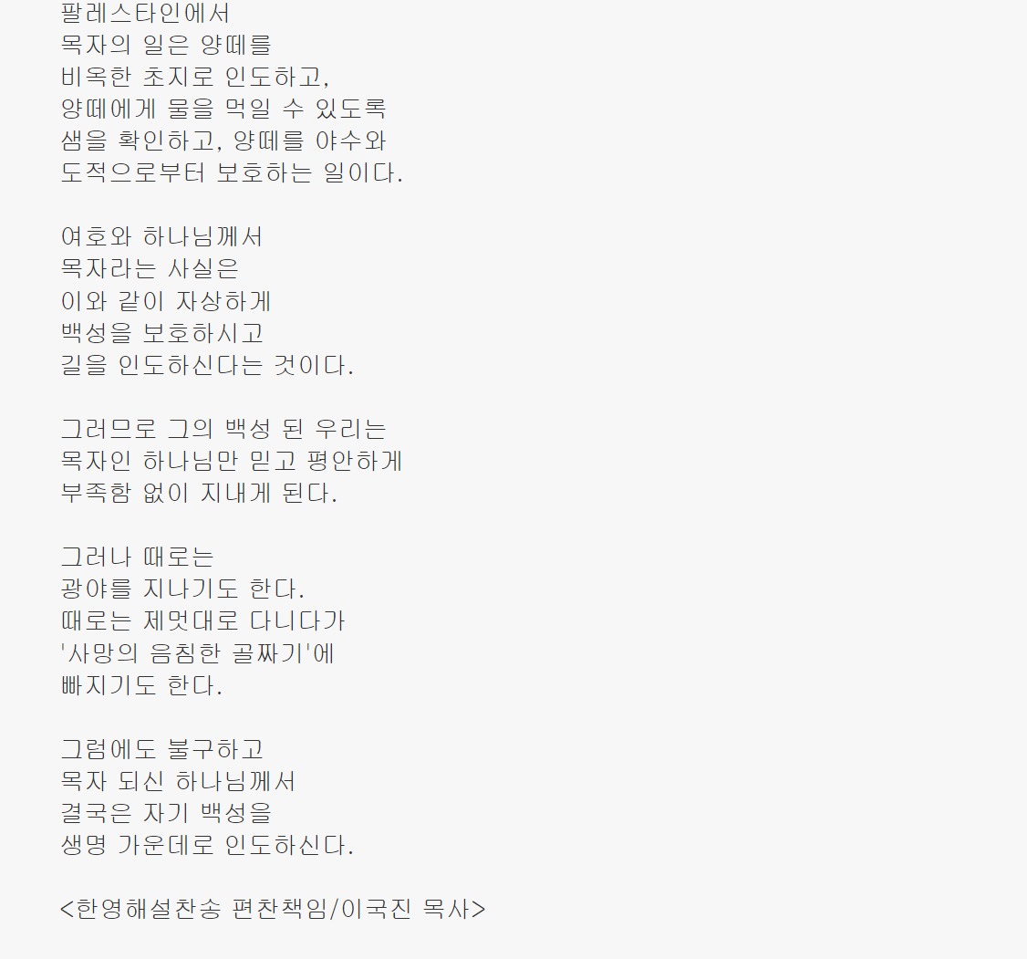 주는 나를 기르시는 목자요