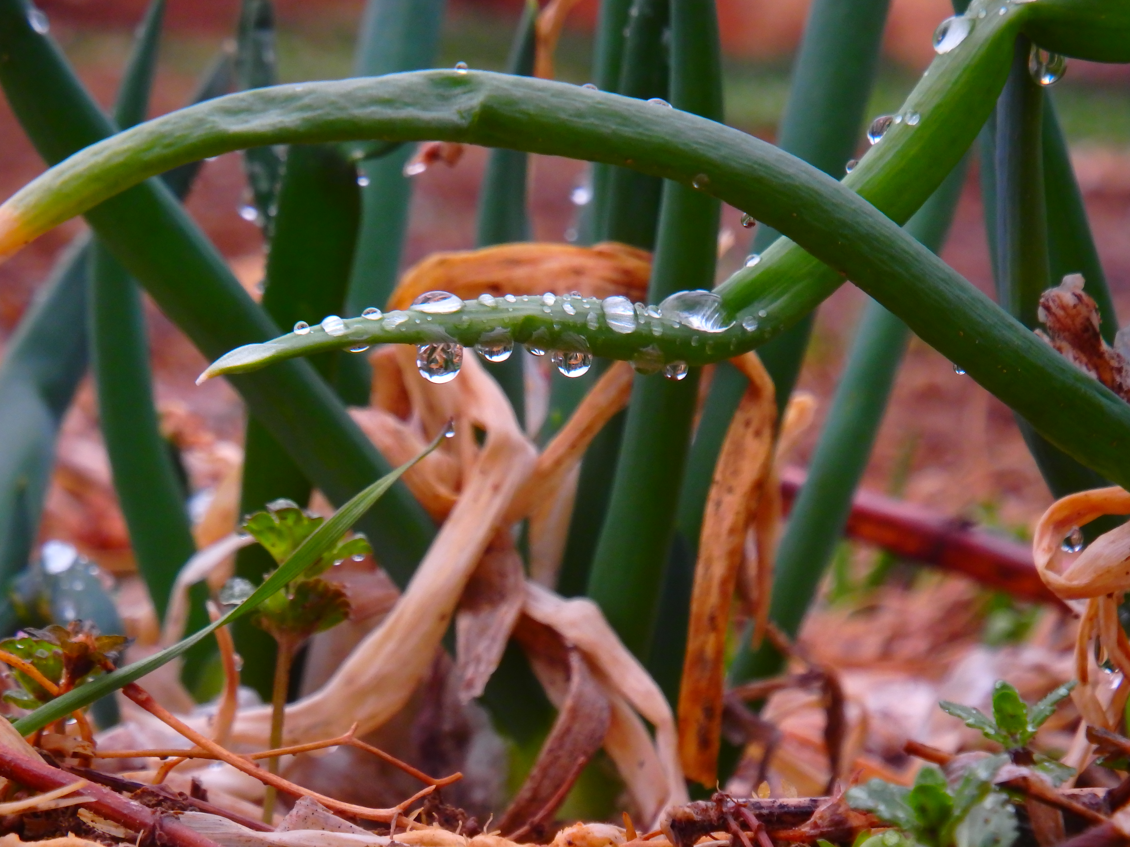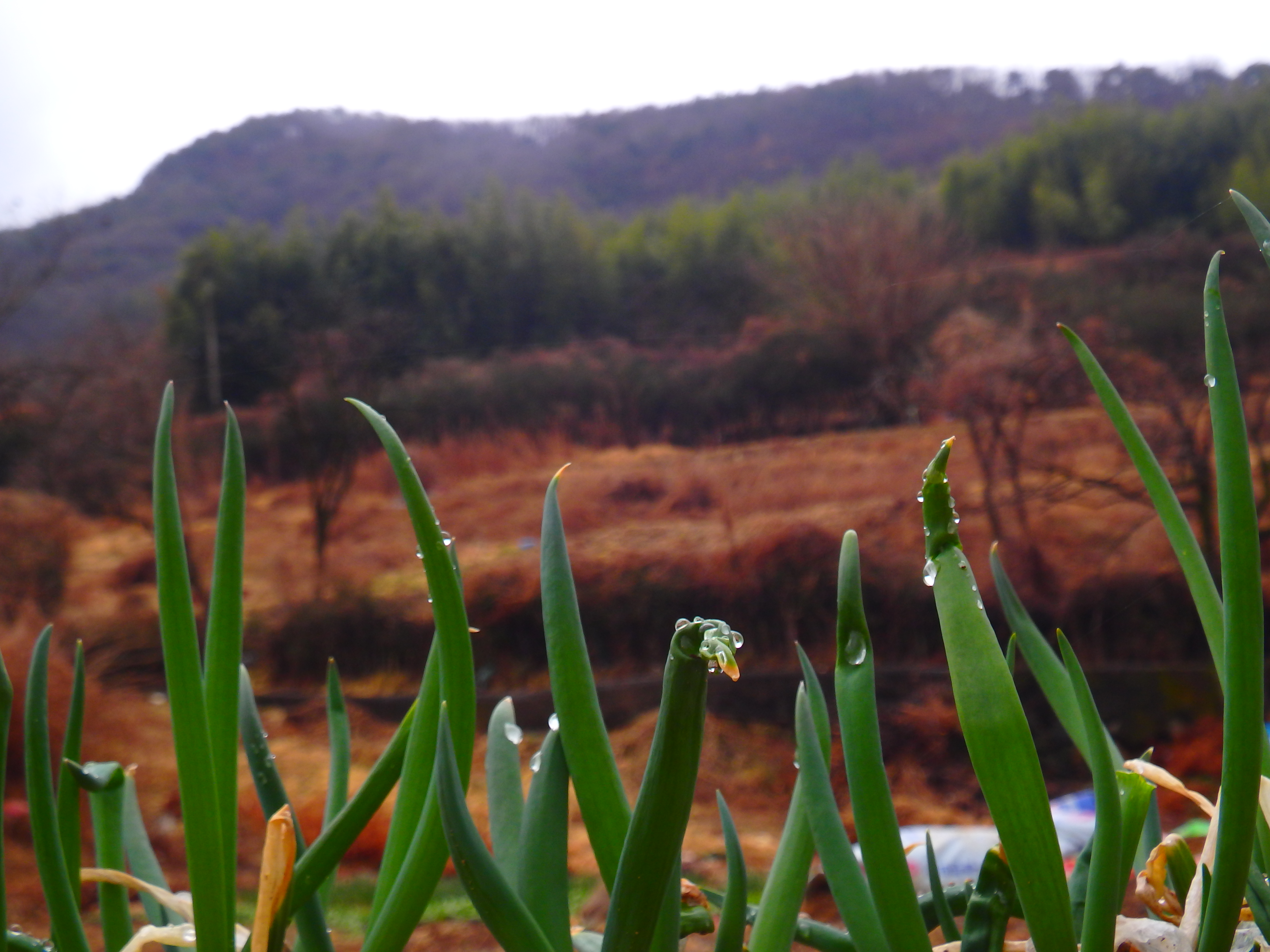 시금치와 겨울초, 파와 마늘 모종이