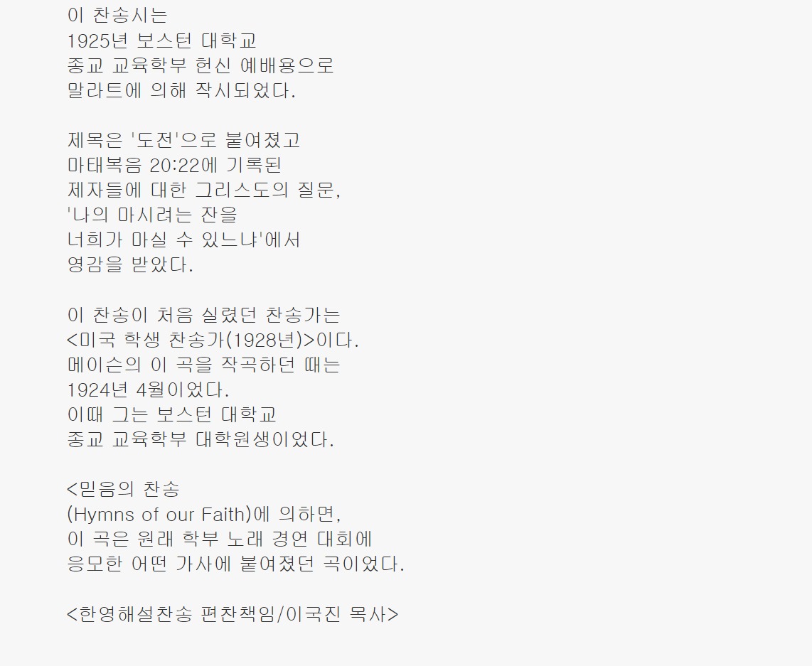 | *너 근심 걱정 말아라(Be not Dismayed Whate'er Betide)/C. D. Martin (0) | 2022.04.03 |