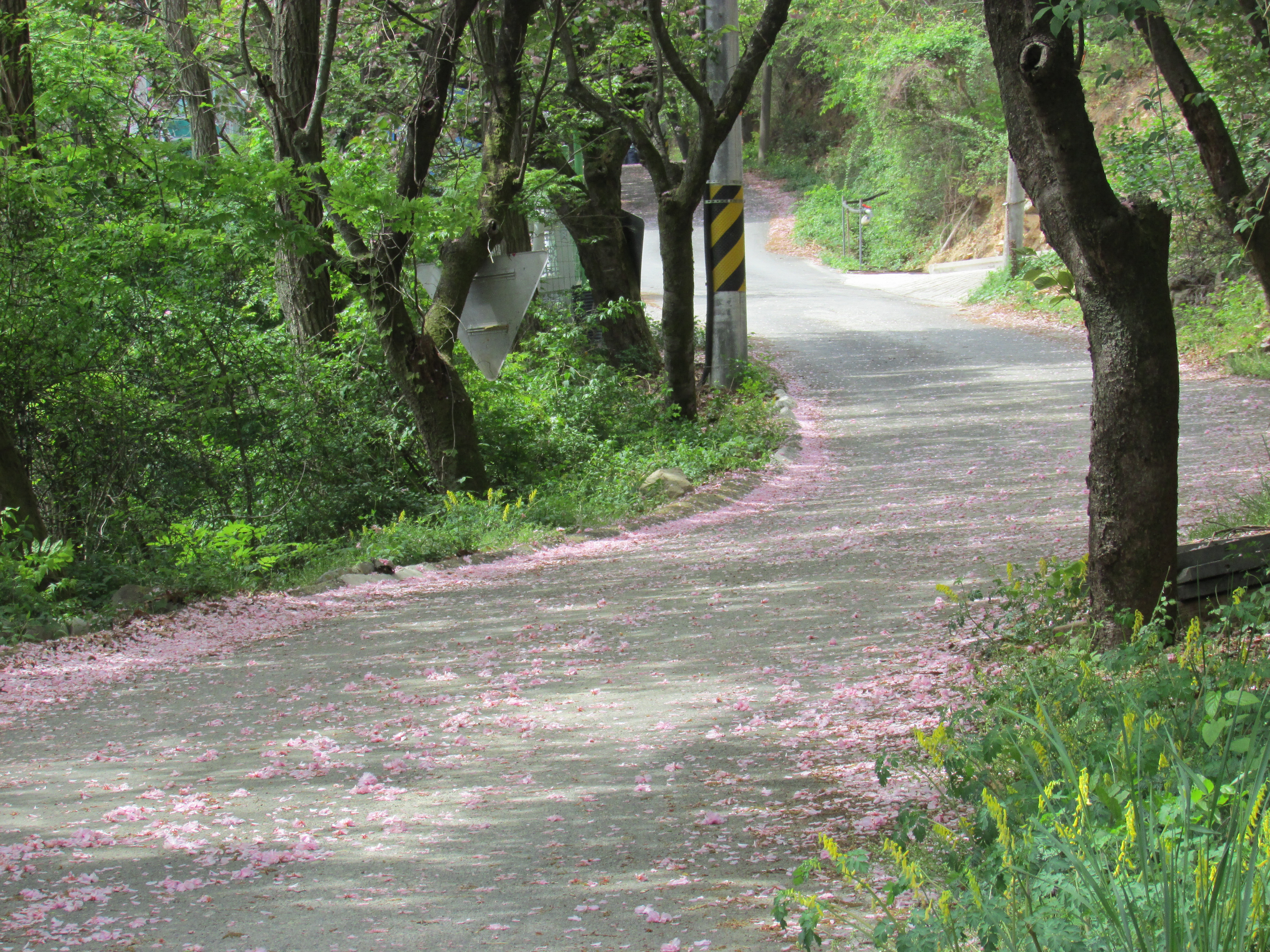 꽃들은 거의 다 떨어져 꽃길을 만들었고,