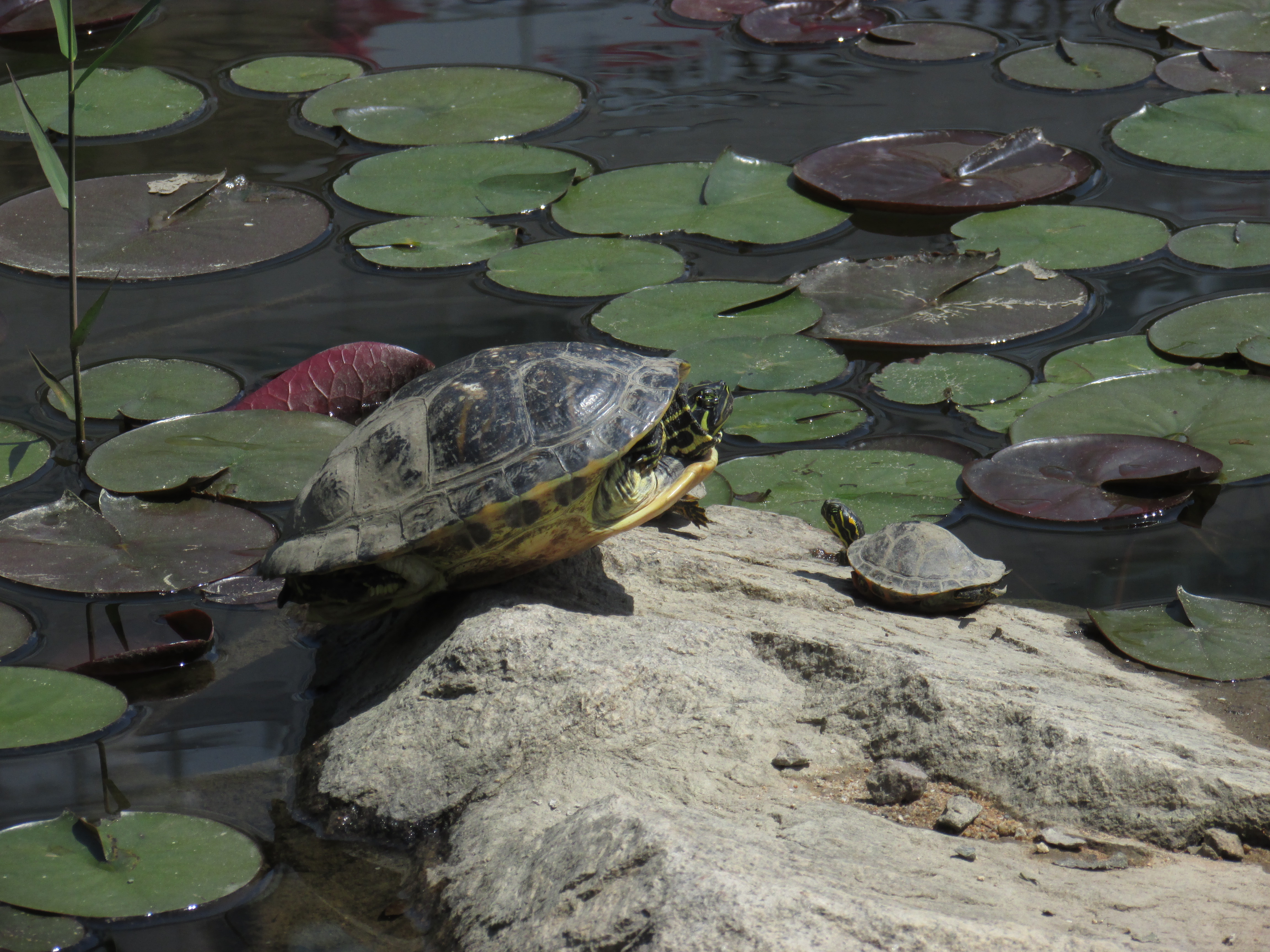 일찌감치 바위에 나와 앉은 엄마 거북이와