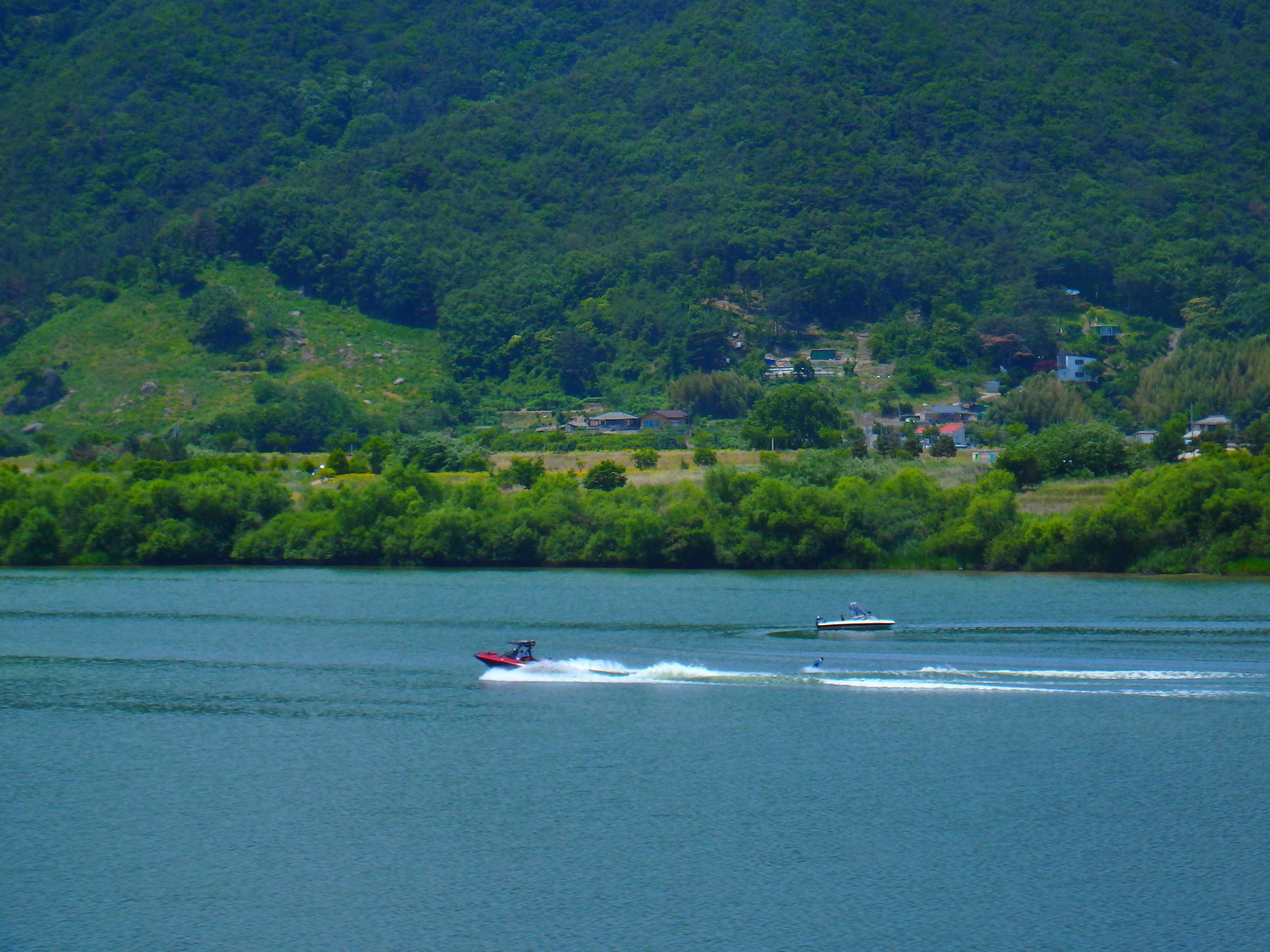 신나게 물결을 가르며 수상보트를