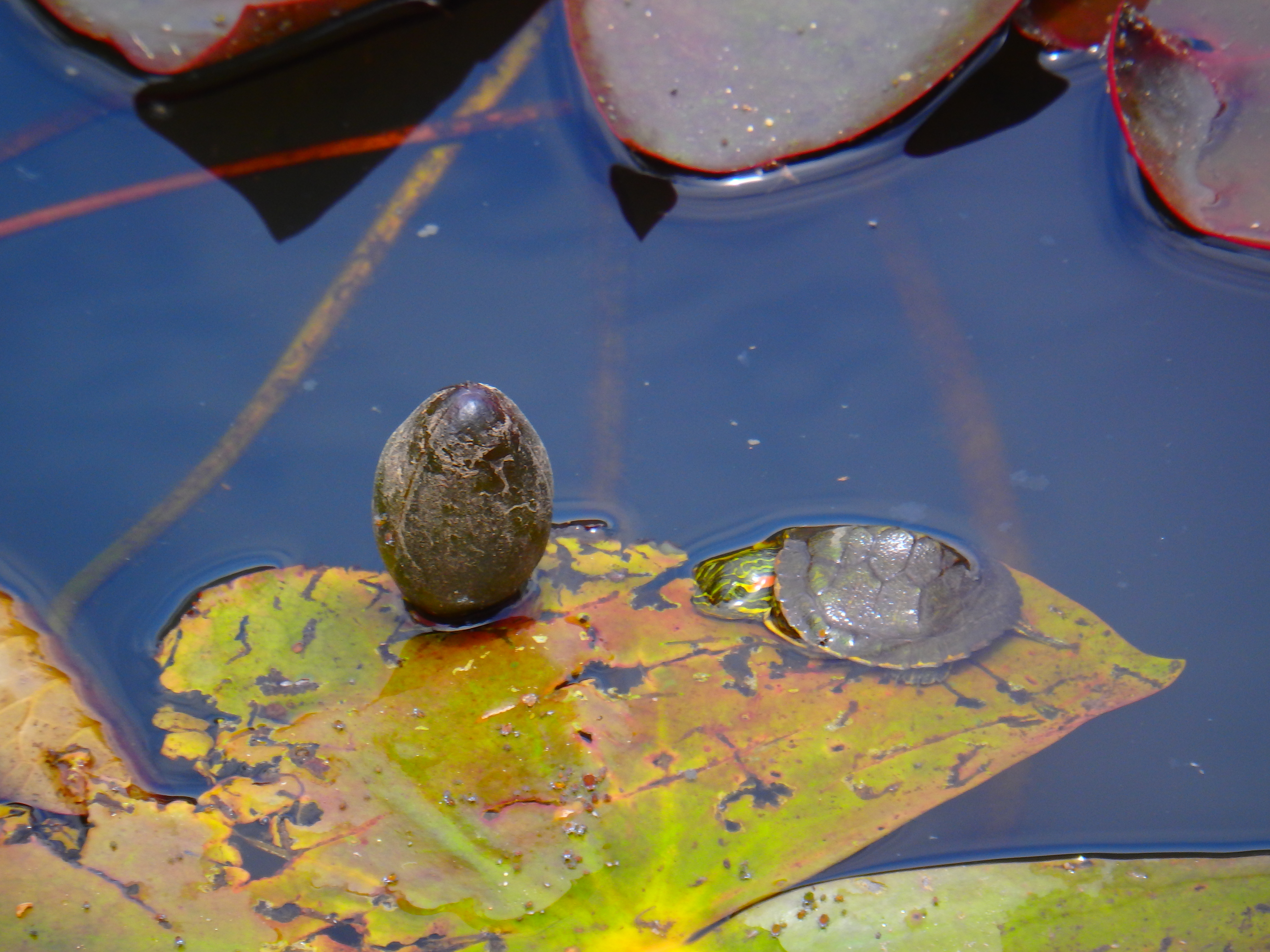 뜻밖에 손바닥만한 아기 거북이를 발견했다.