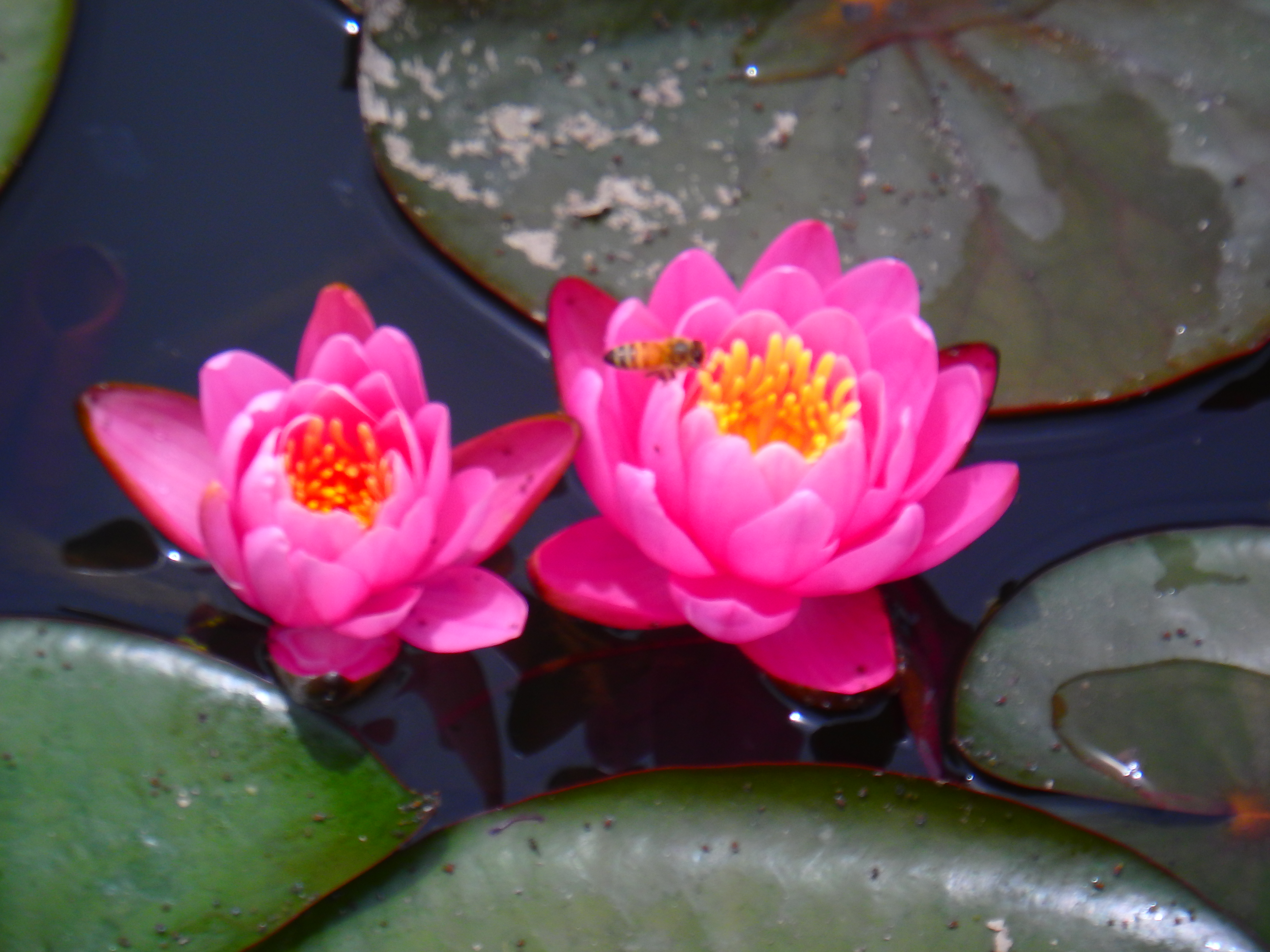 옆에 아직 피지 않은 수련 봉오리 쪽으로