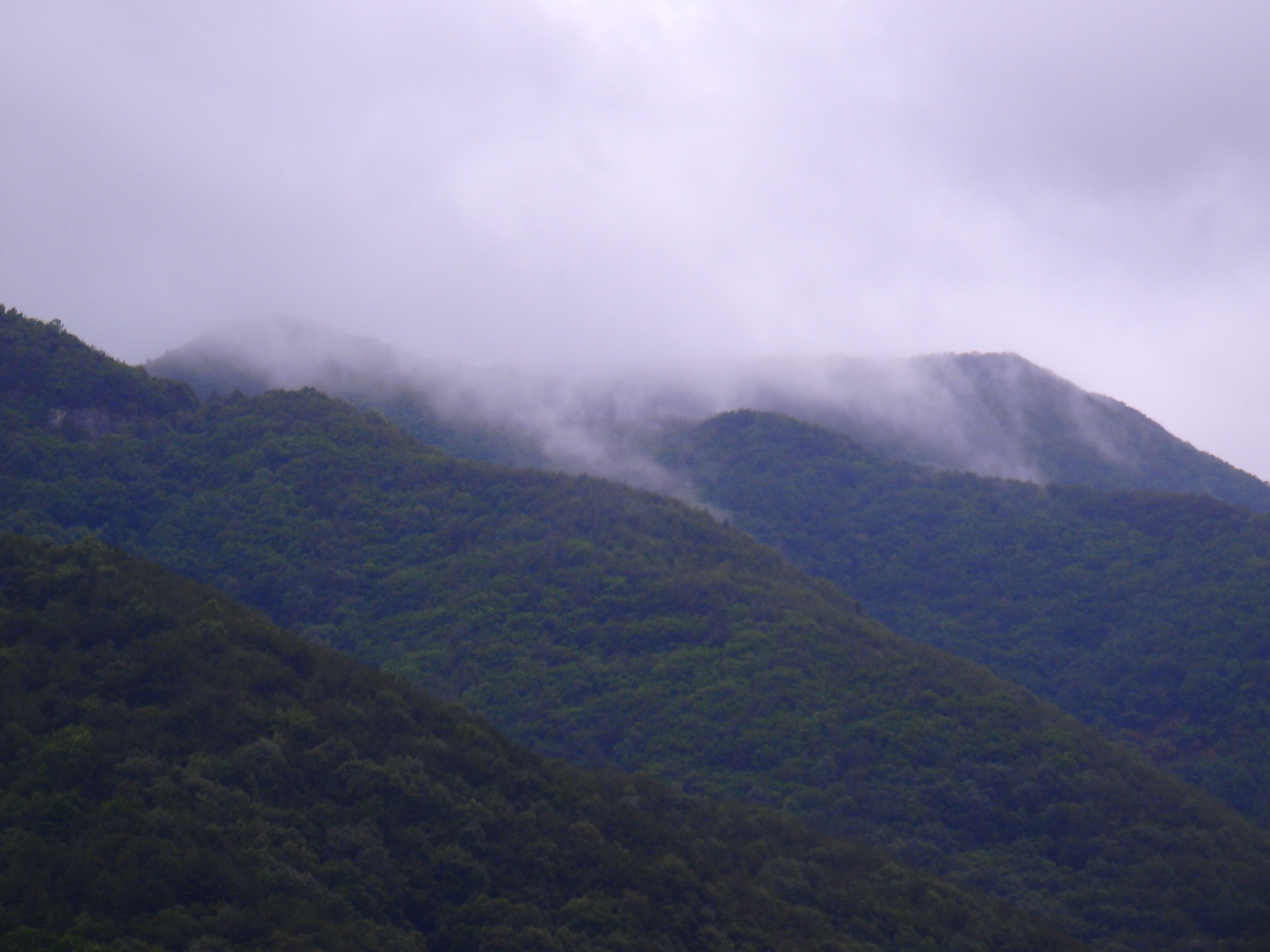 산 위의 검은 구름이 걷히지 않아