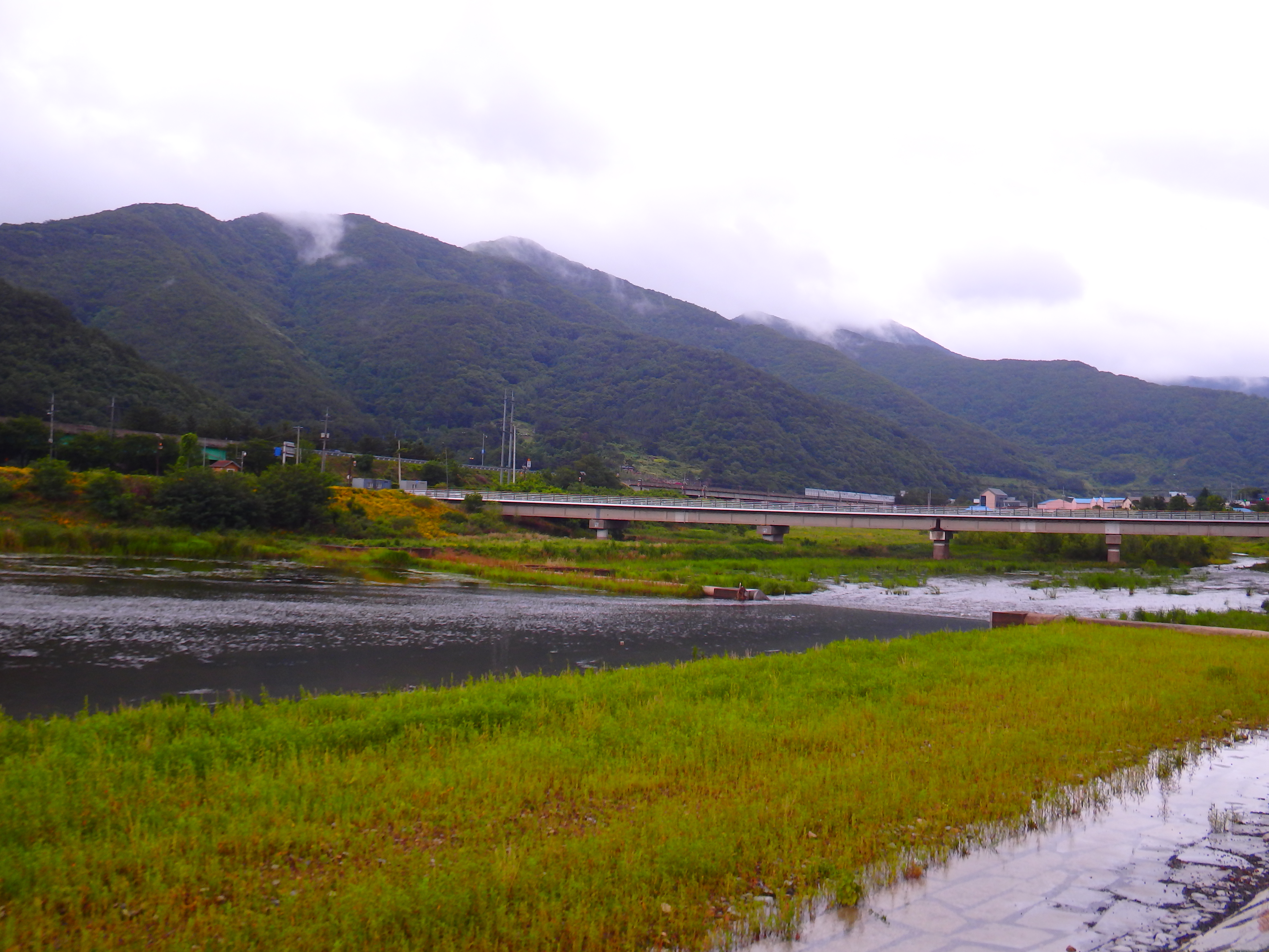 비가 그친 저녁답에 아랫 강가의
