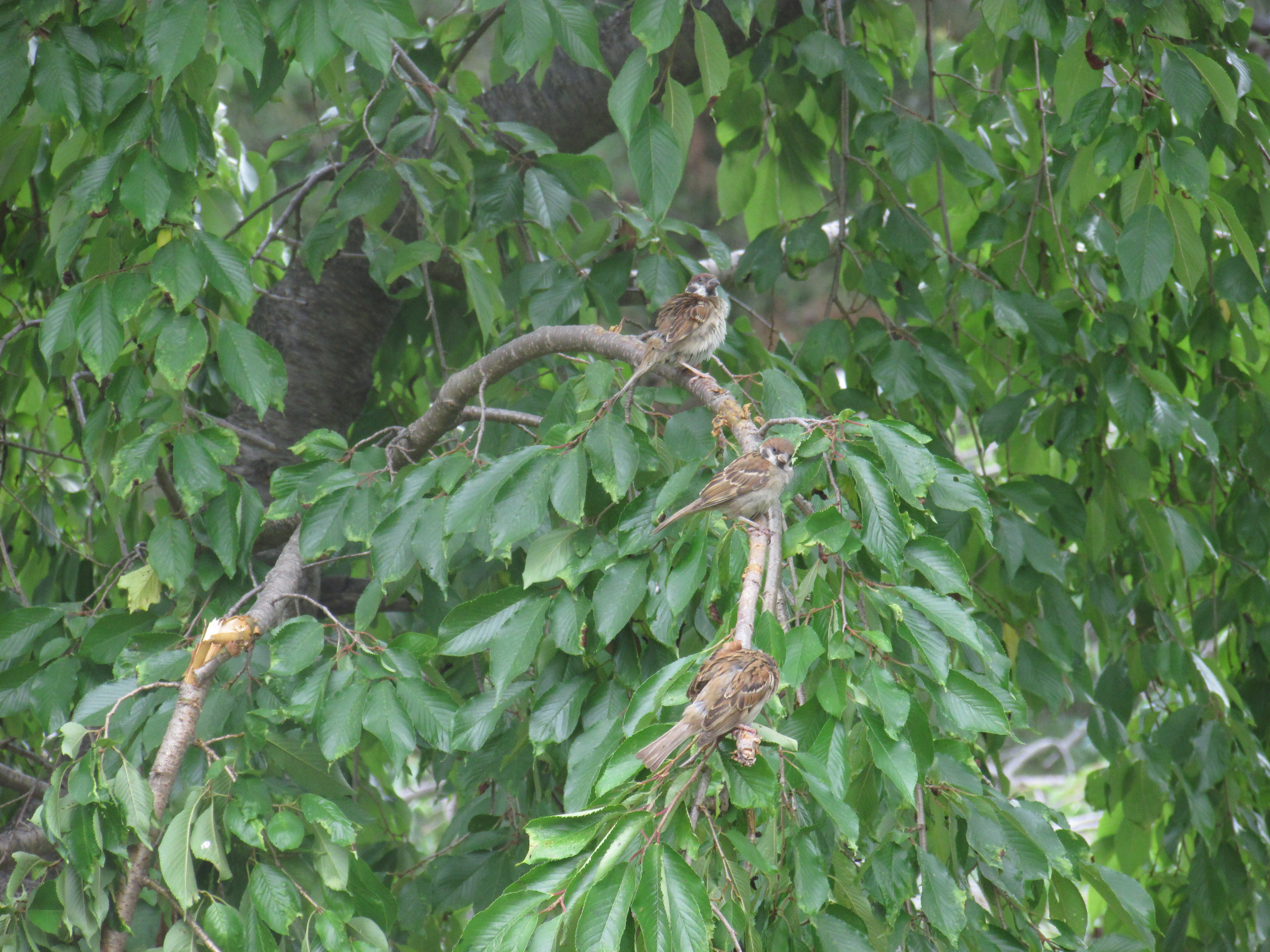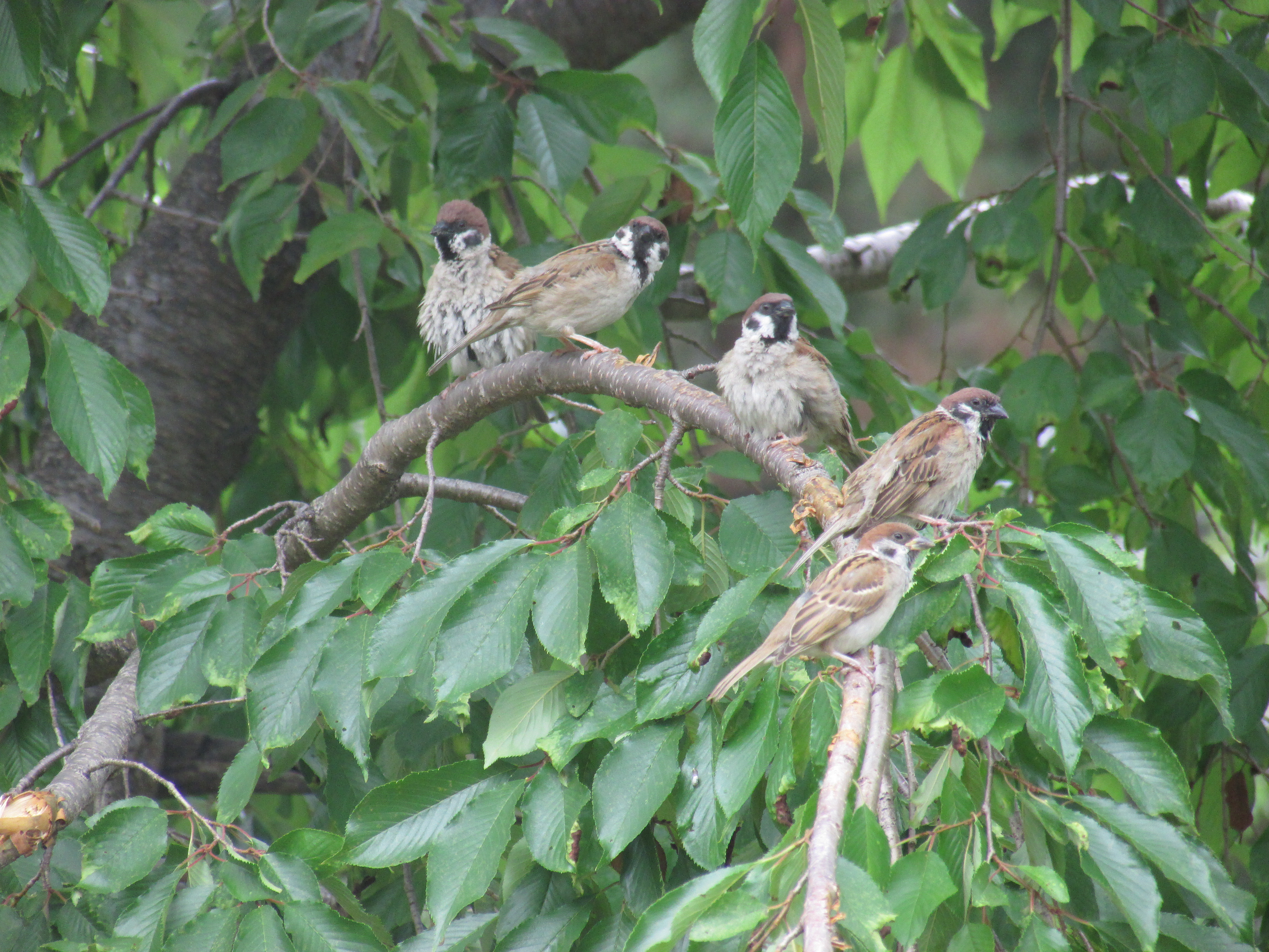 매미는 나무에 매달려 걱정이 많은 참새들과 함께