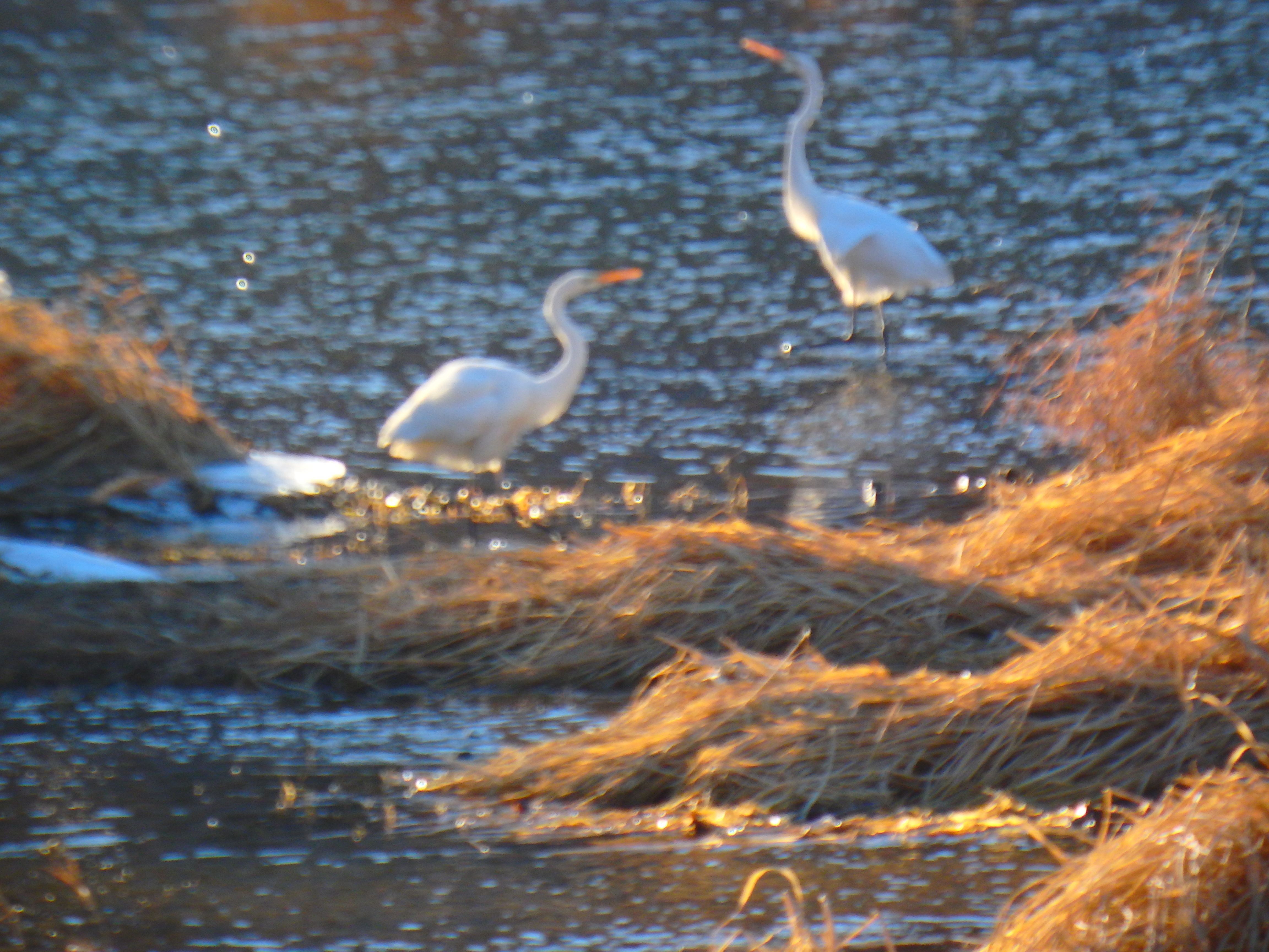 왜가리와 백로가 풀숲에 서있었다.