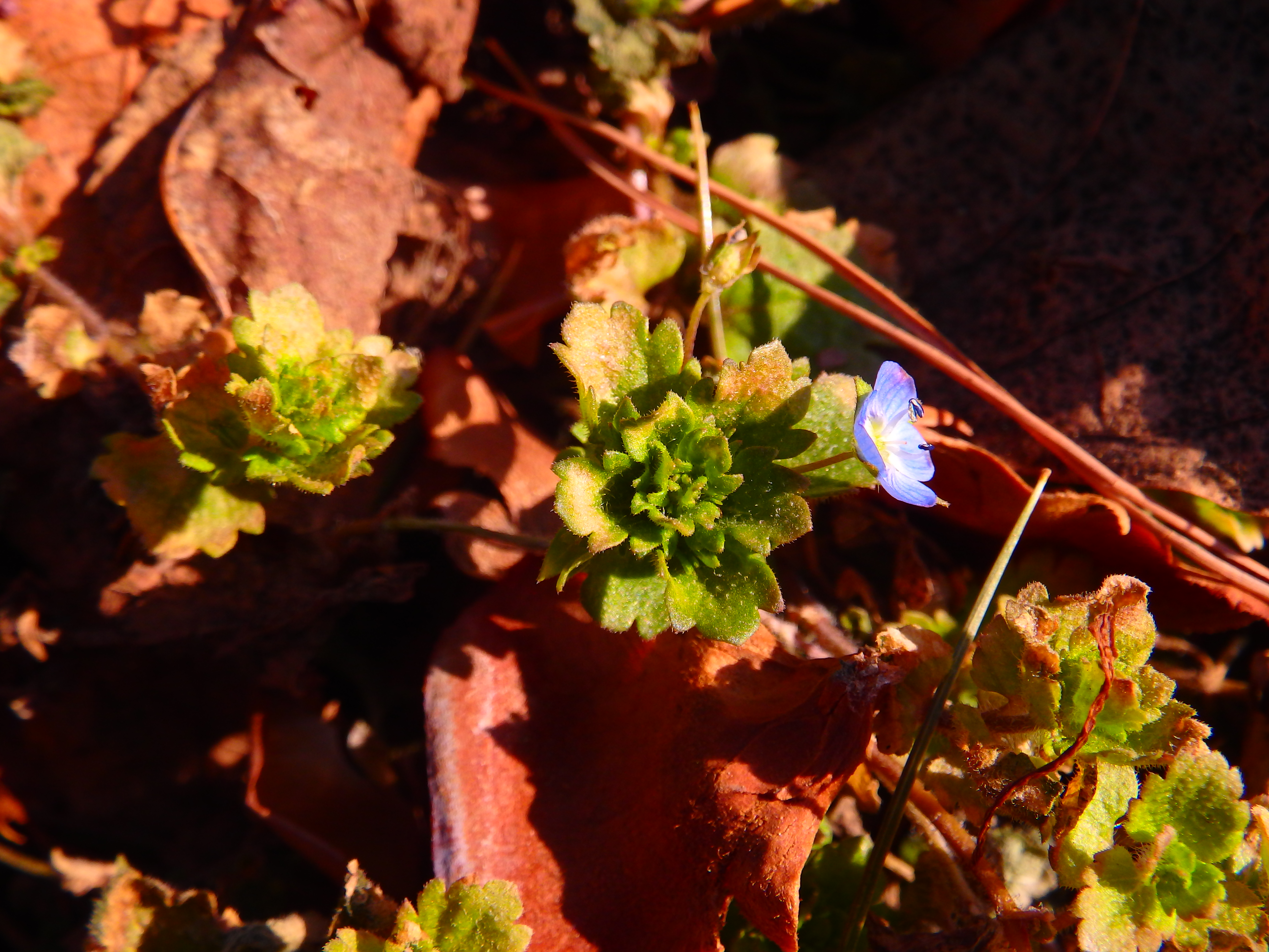 한겨울을 이긴 갈잎 속에 고개를 내민