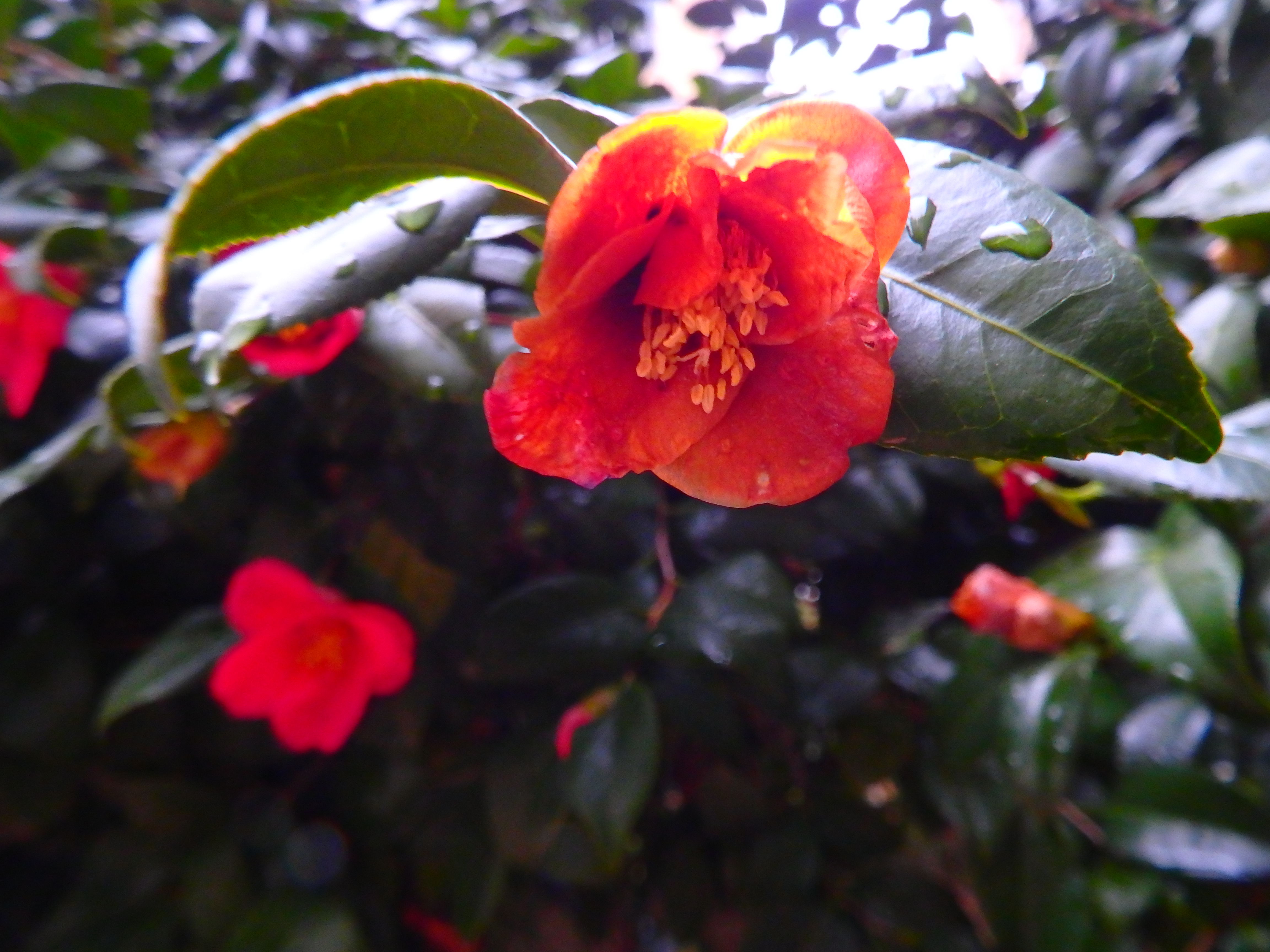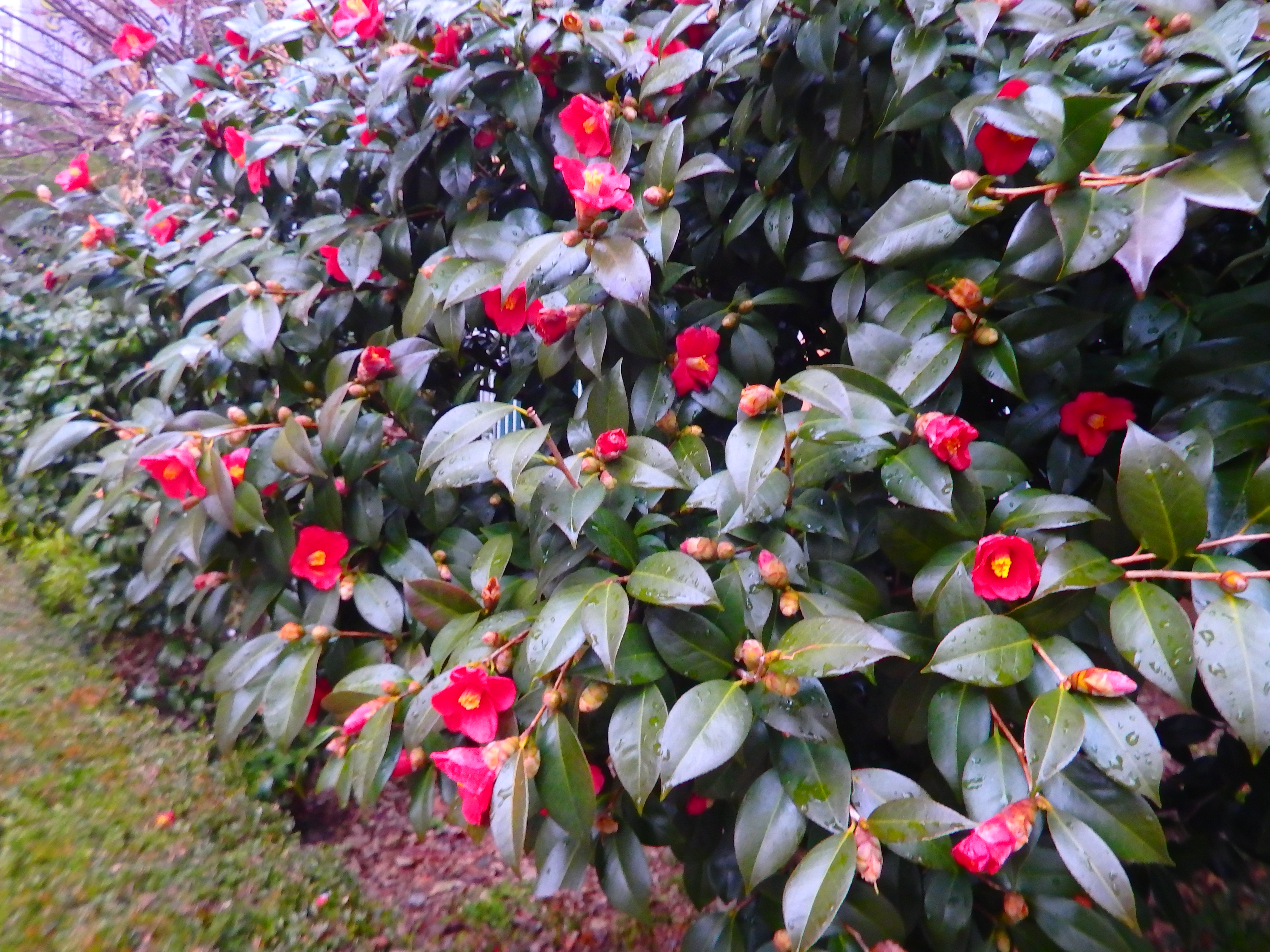 앞뜰에 피어나는 붉은 동백꽃들마다