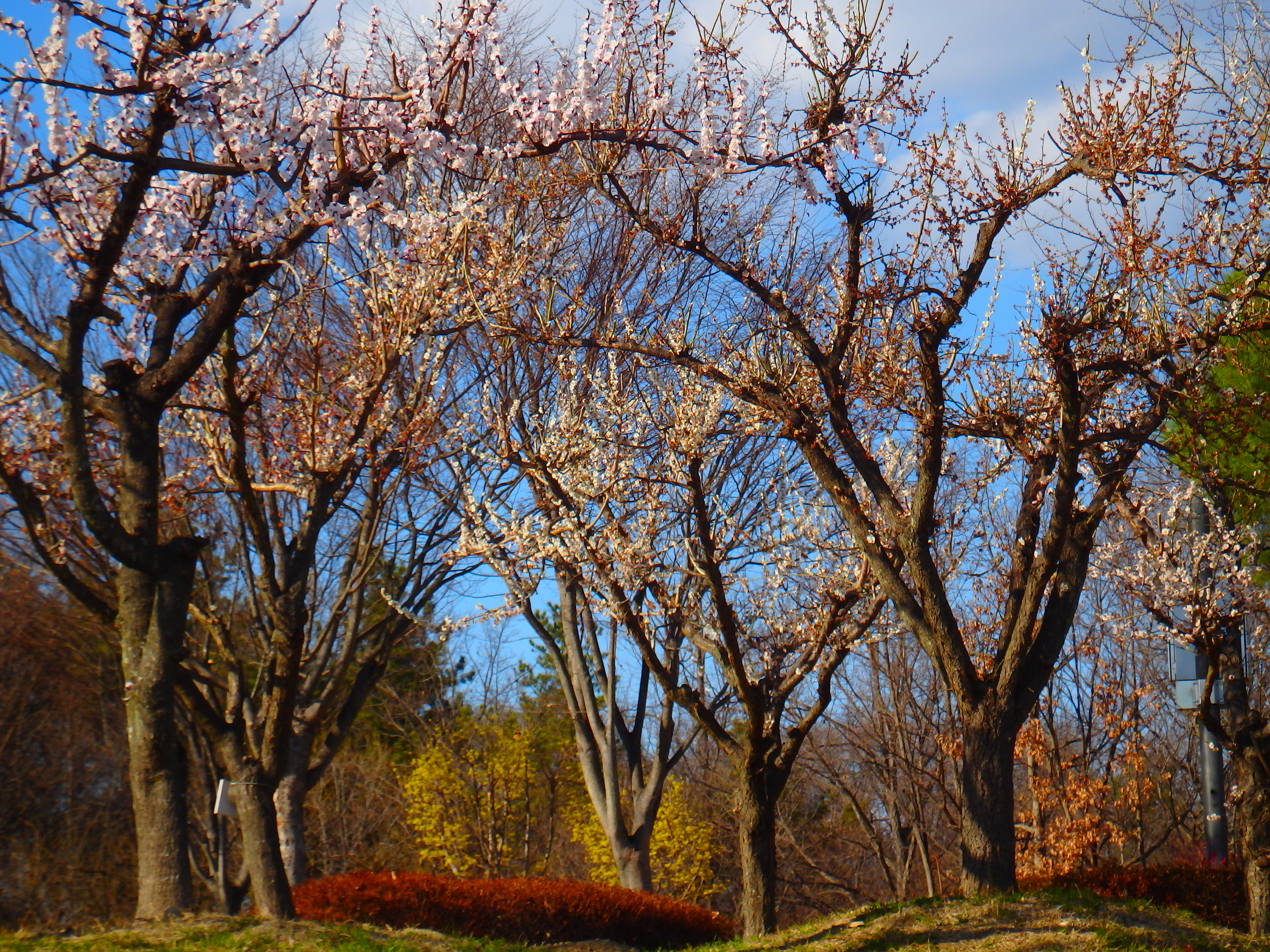 매화꽃들이 만발한 가지마다 꿀벌들이