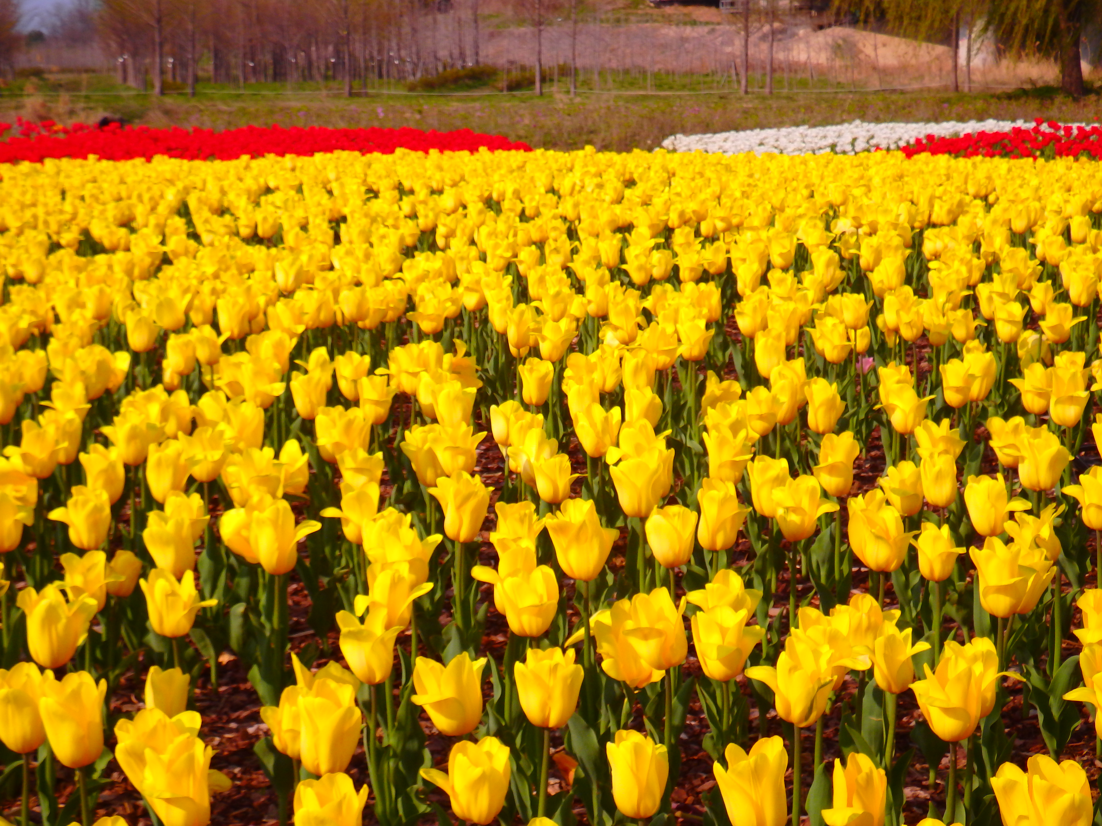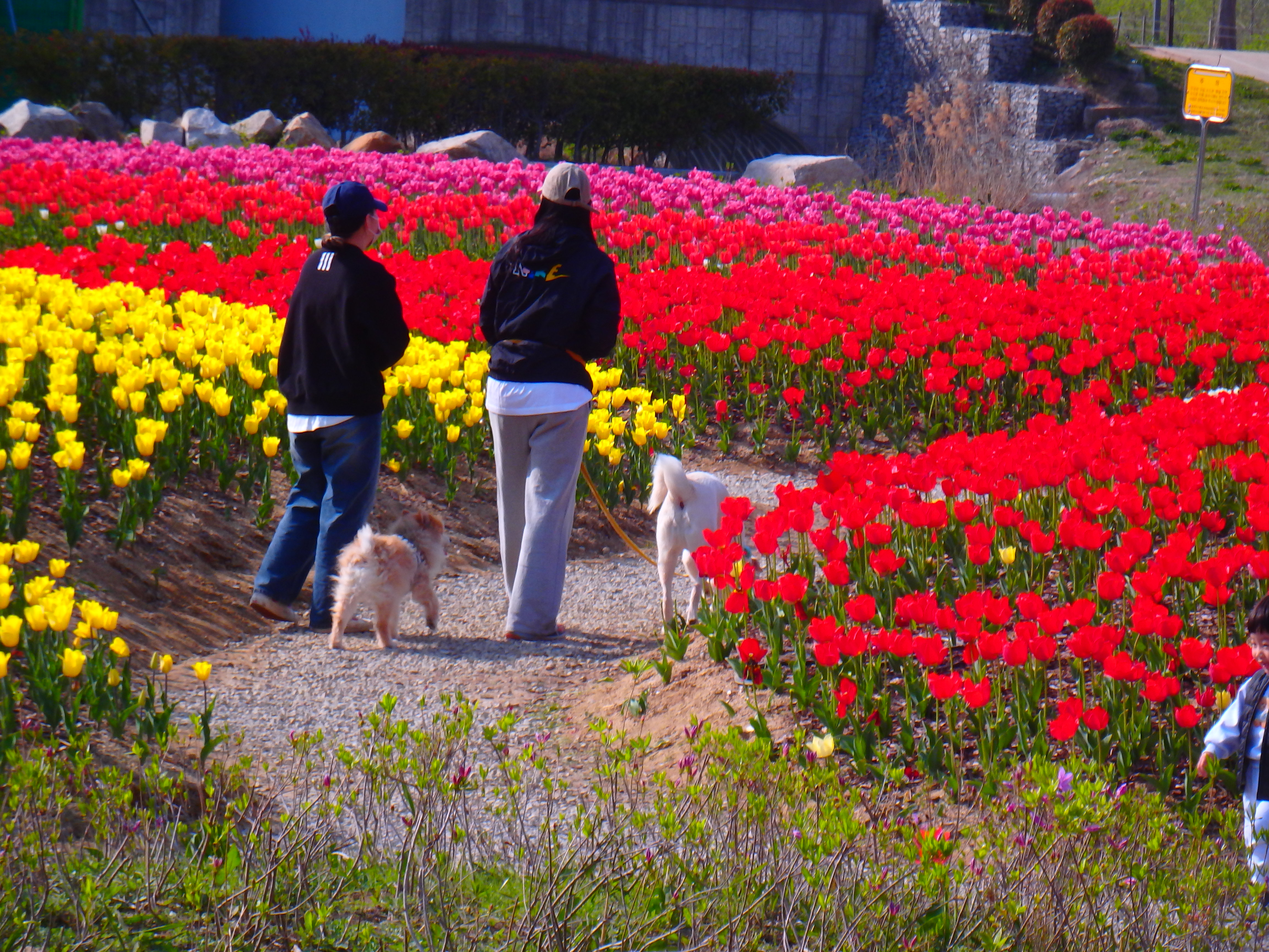 여러 가지 고운 빛깔로 핀 튤립꽃밭을 보았다.