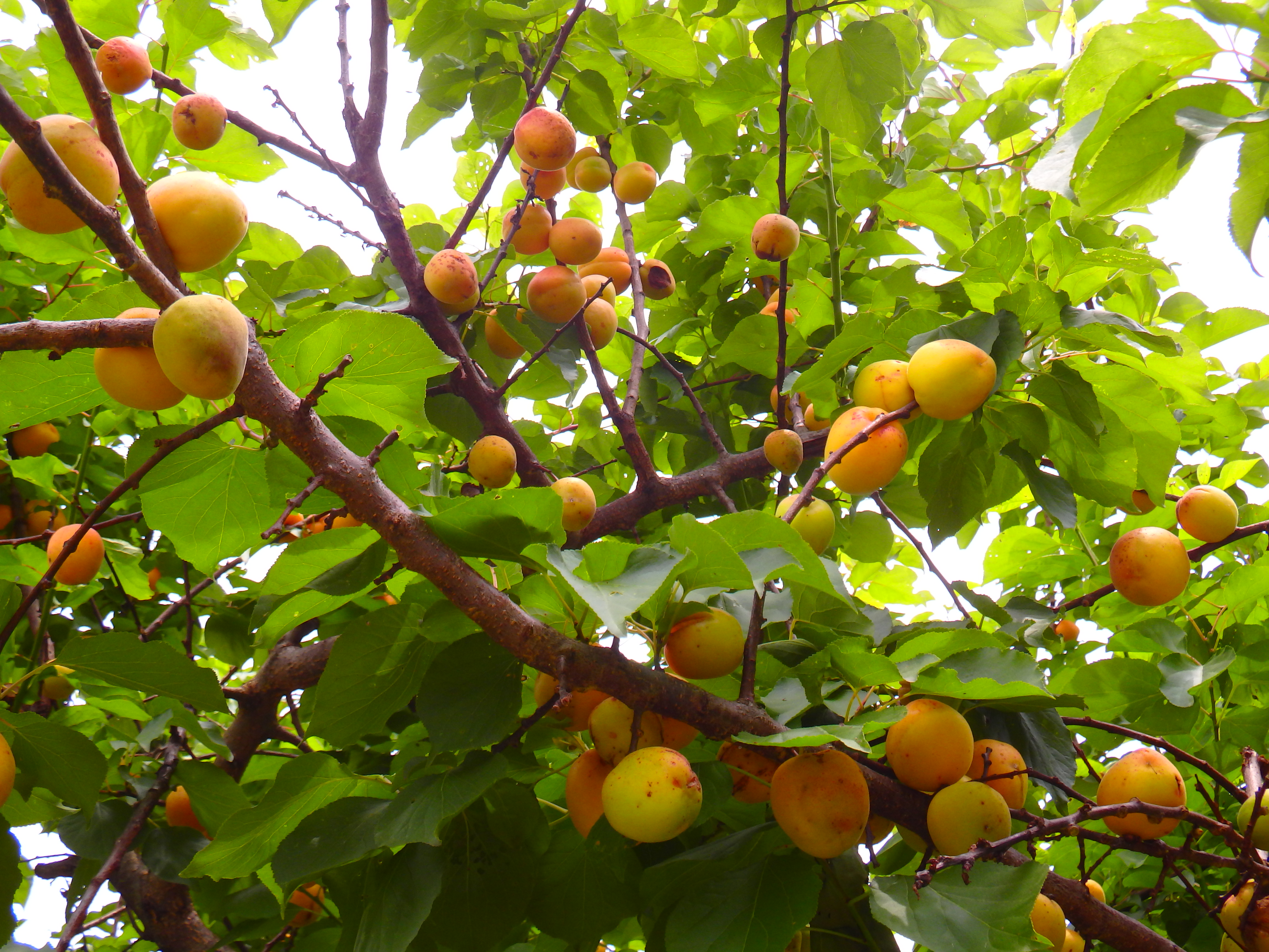 이른 봄에 꽃들이 피었던 살구나무에서